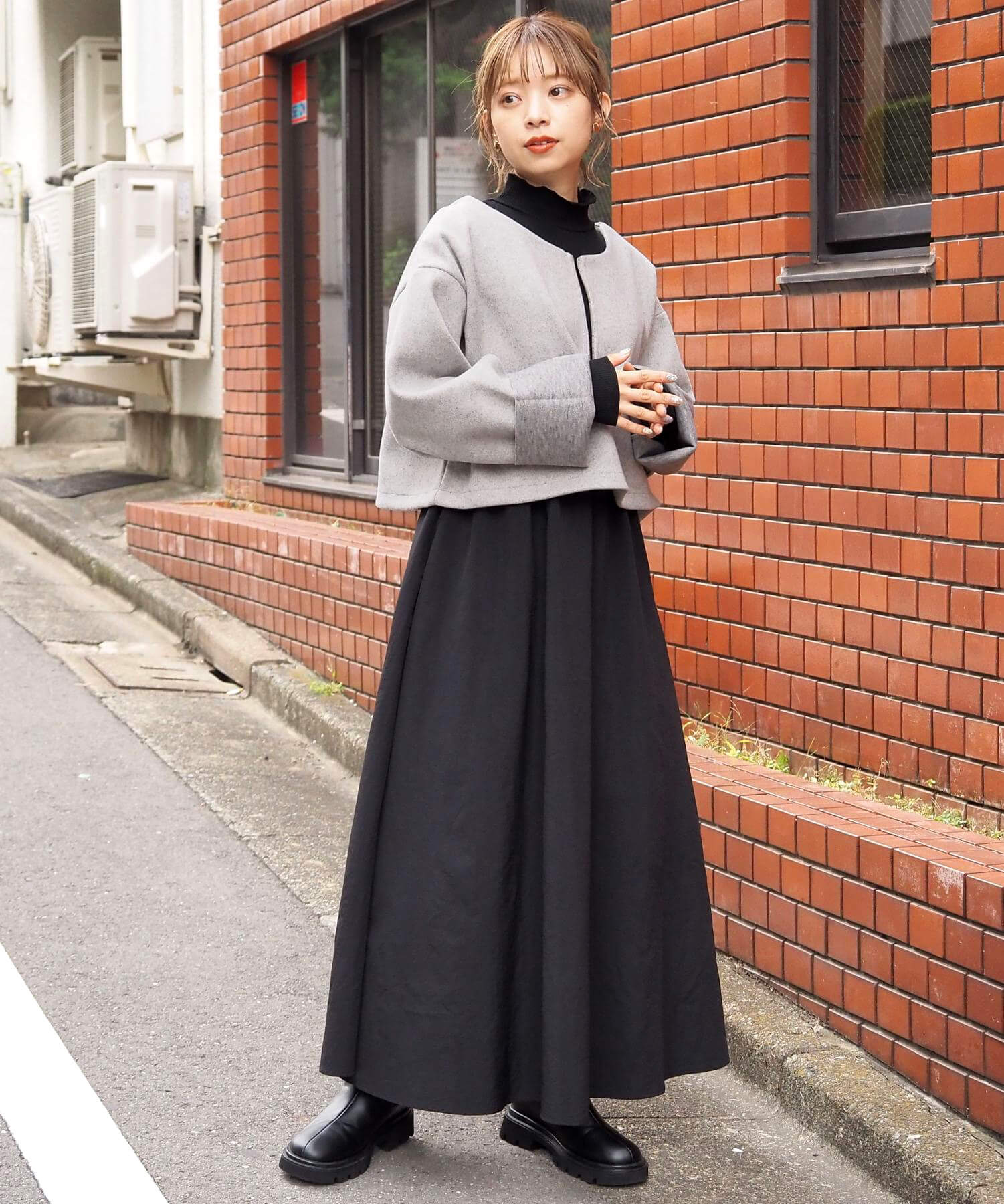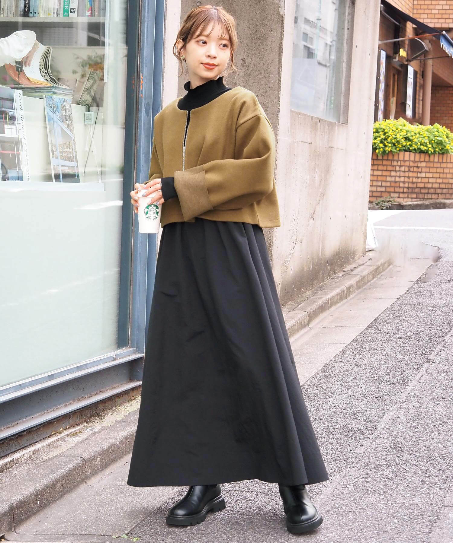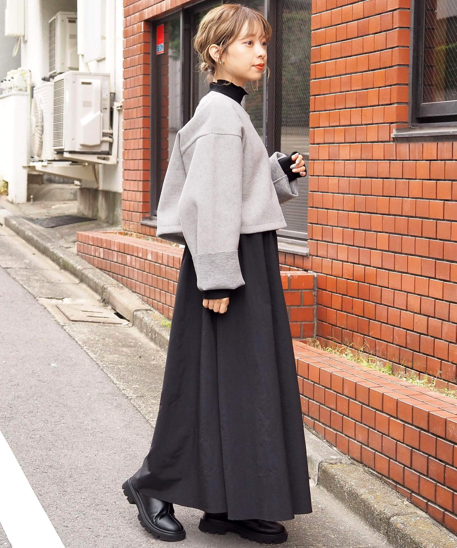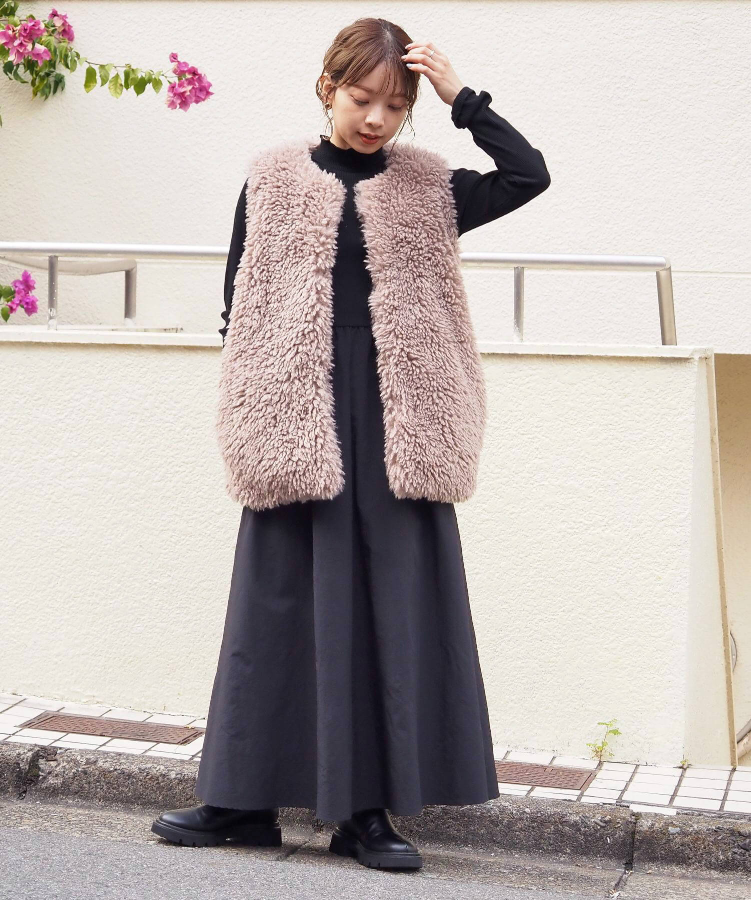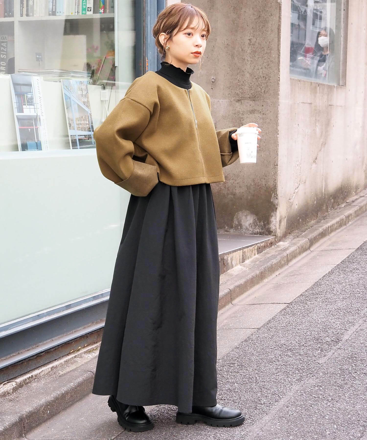 ・レイヤードに最適なハイネックデザインのワンピースは、お手持ちのプルオーバーやカーディガンをはおったり、秋冬ムード抜群のファーベストでドレスアップも◎