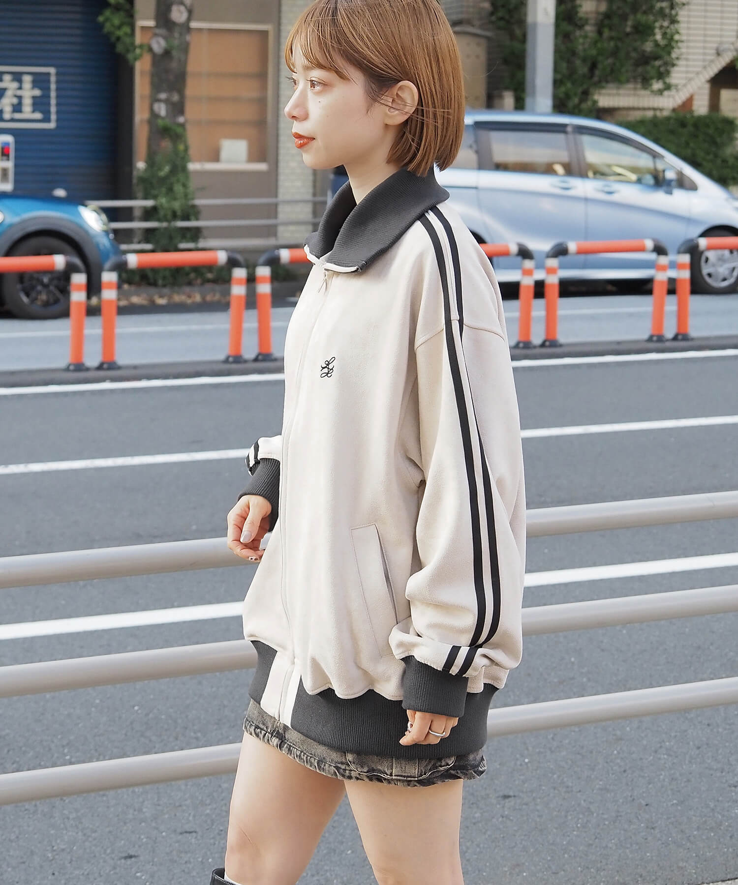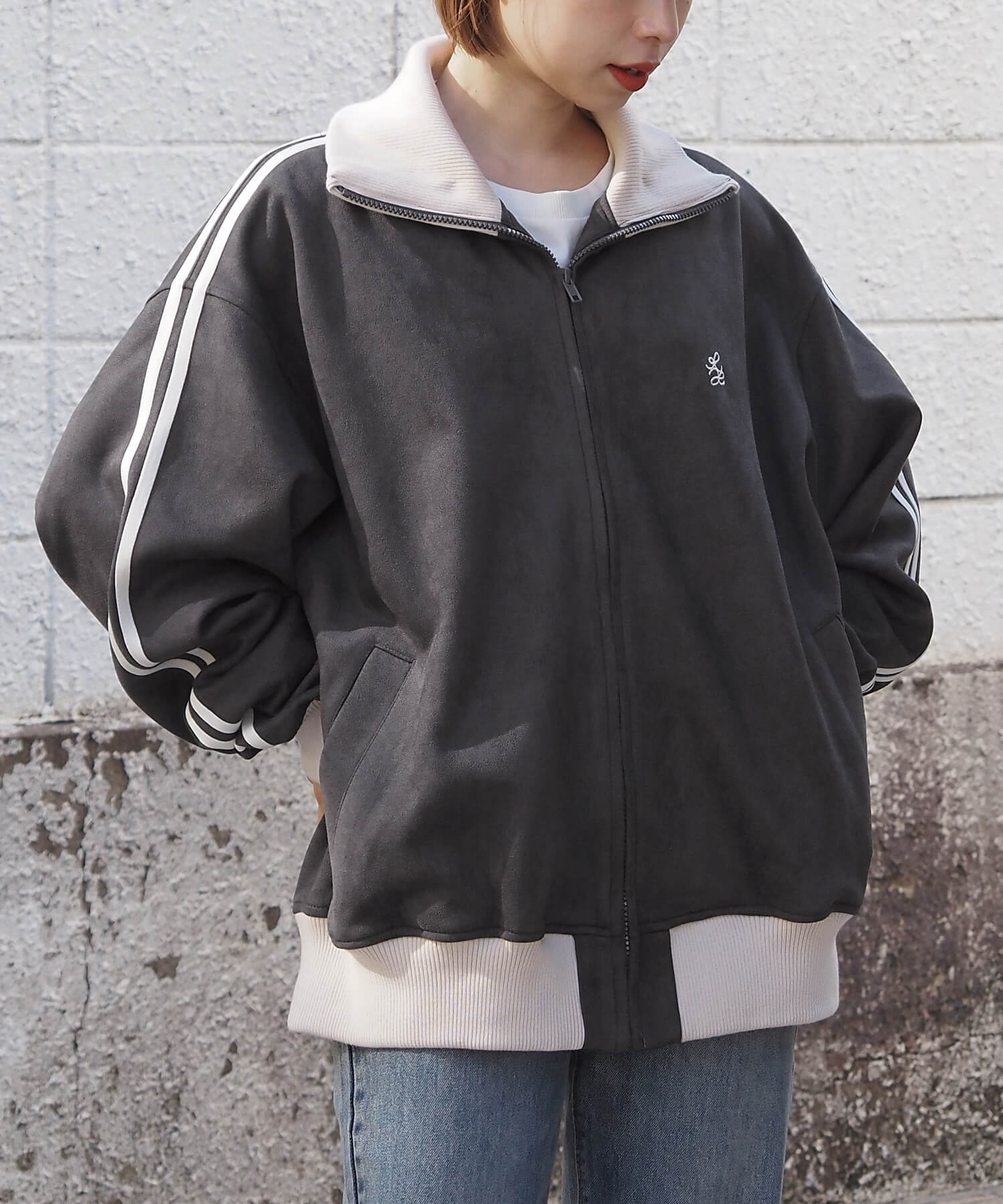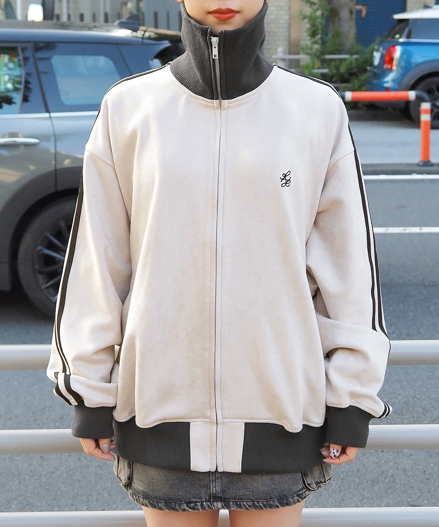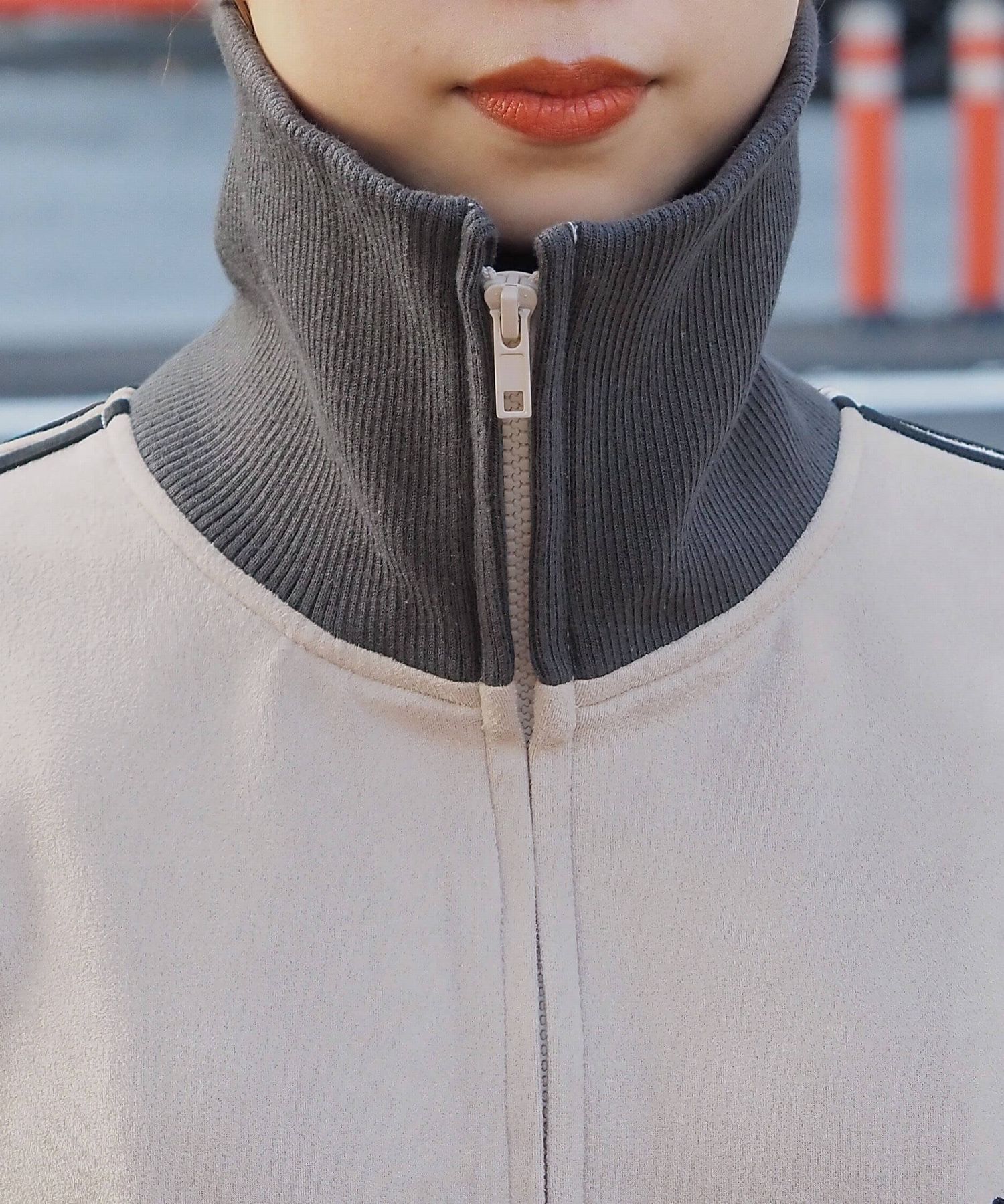 ・なめらかなスエードポンチ素材を使ったトラックジャケットです。