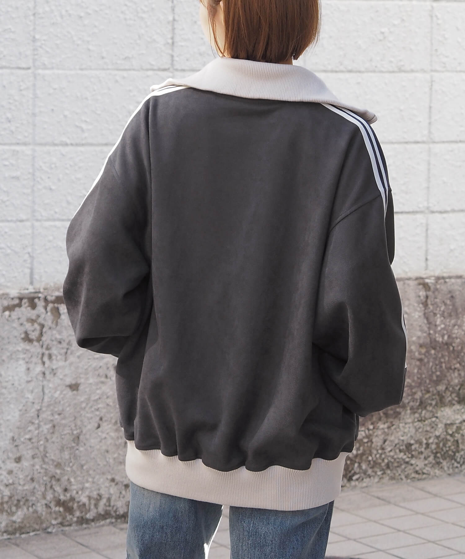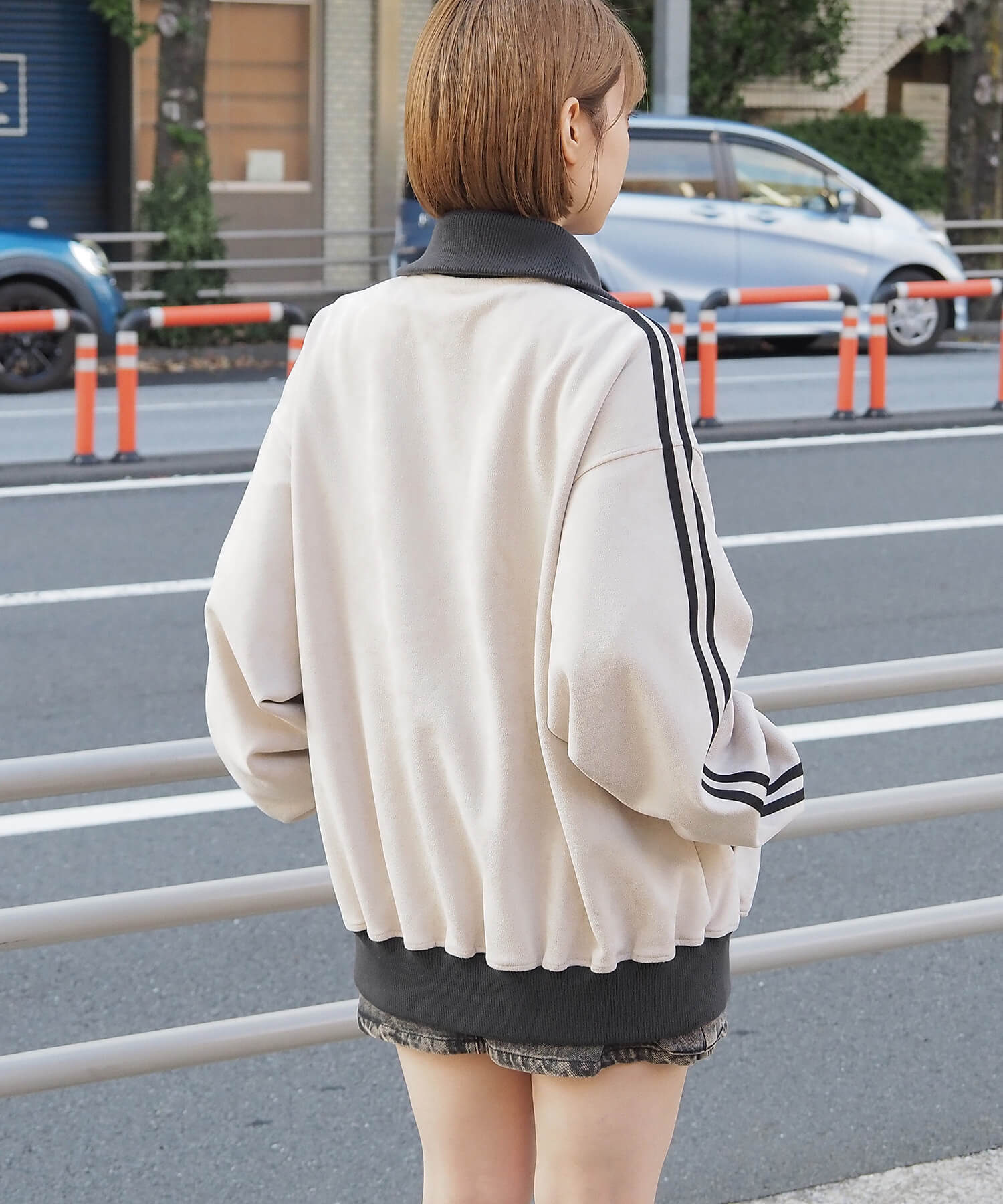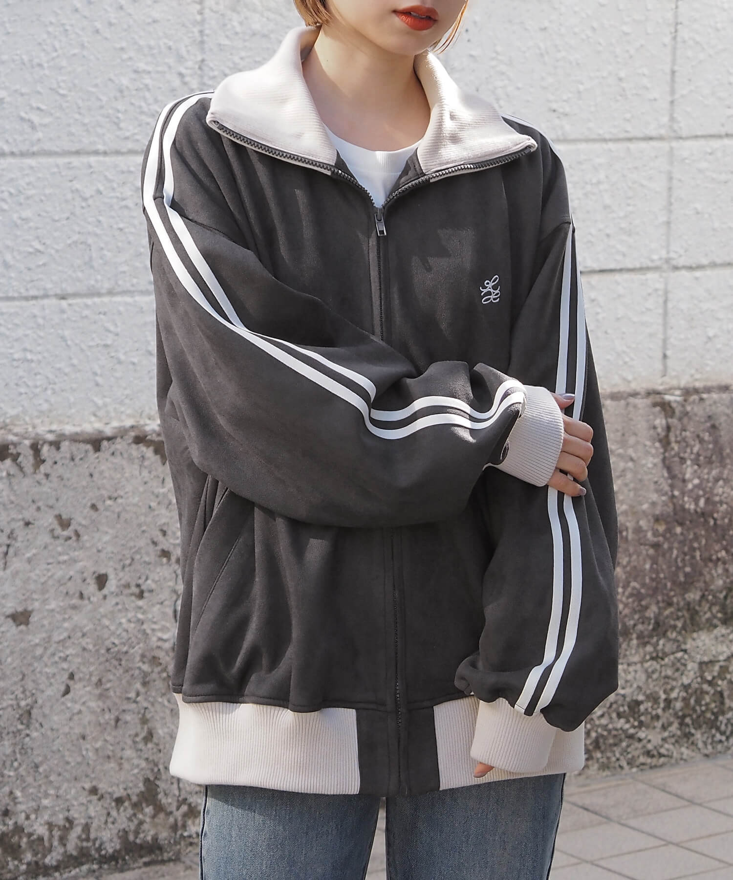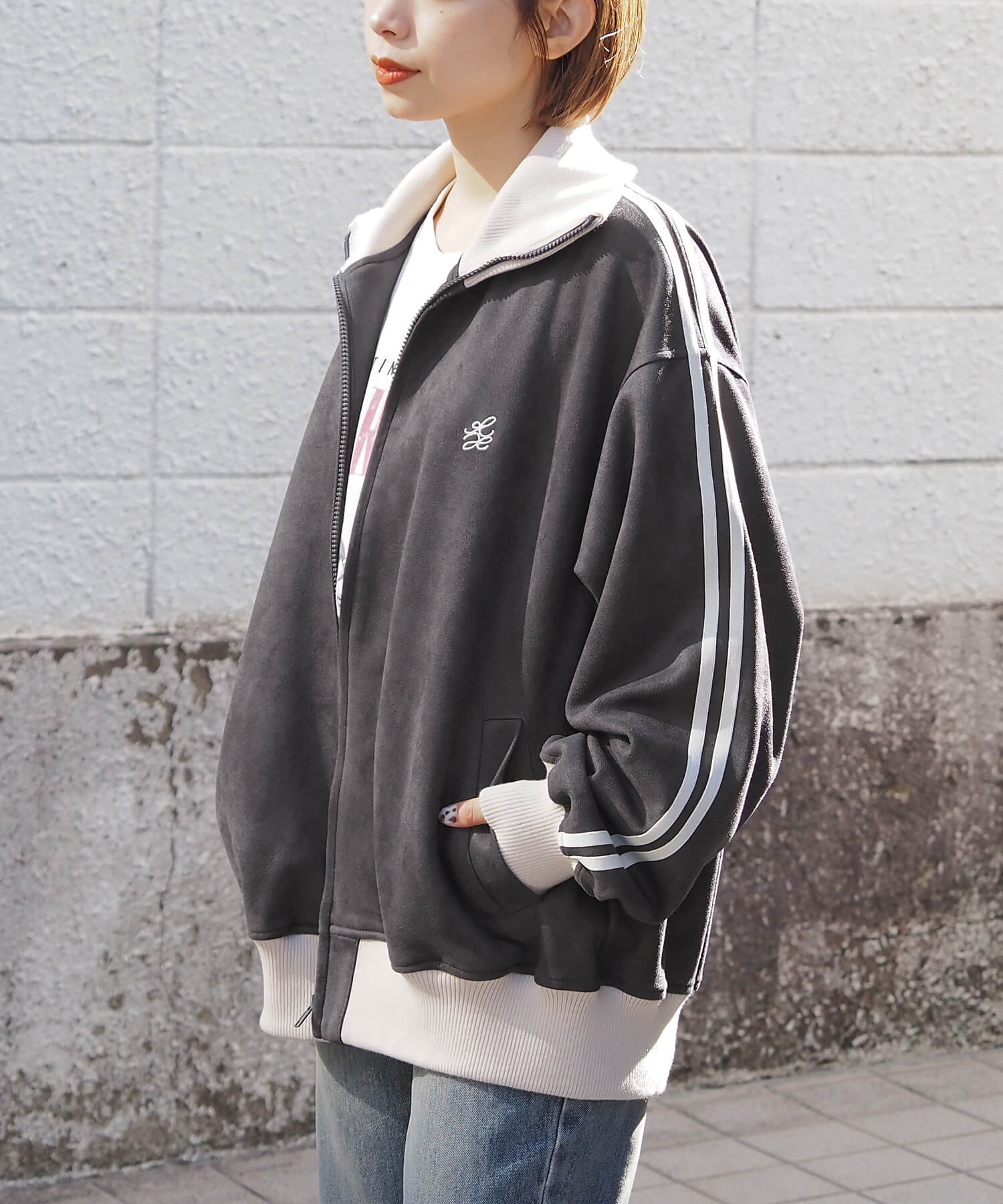 ・なめらかなスエードポンチ素材を使ったトラックジャケットです。