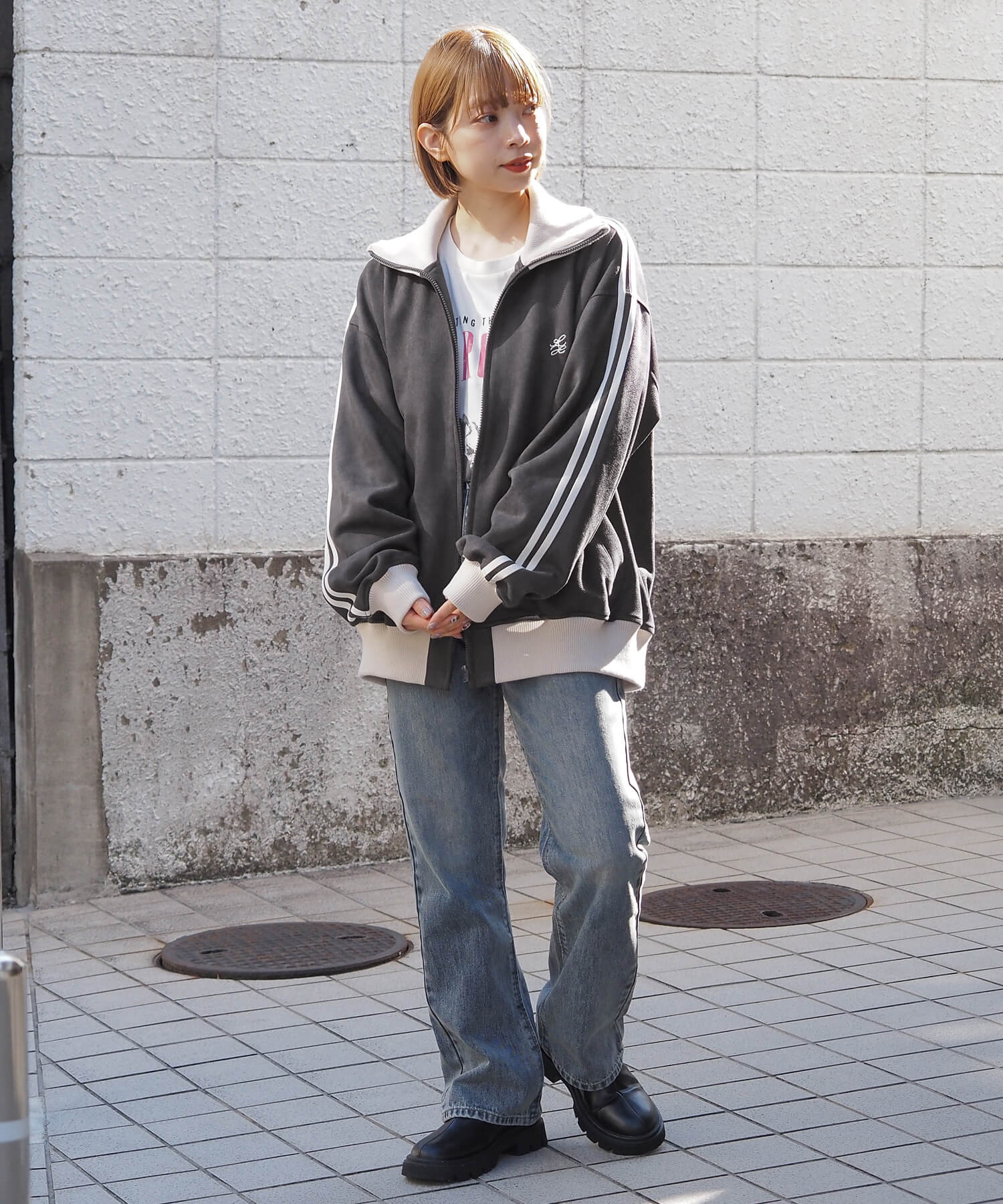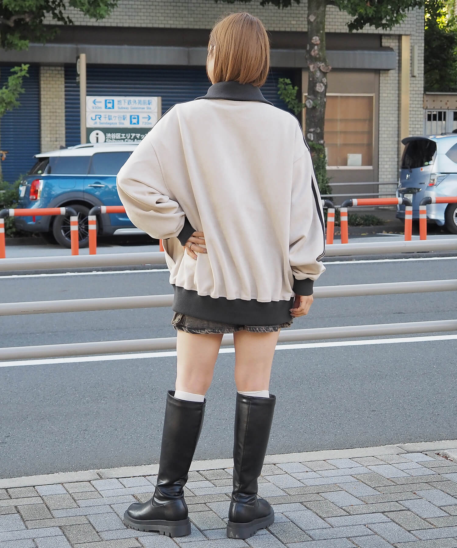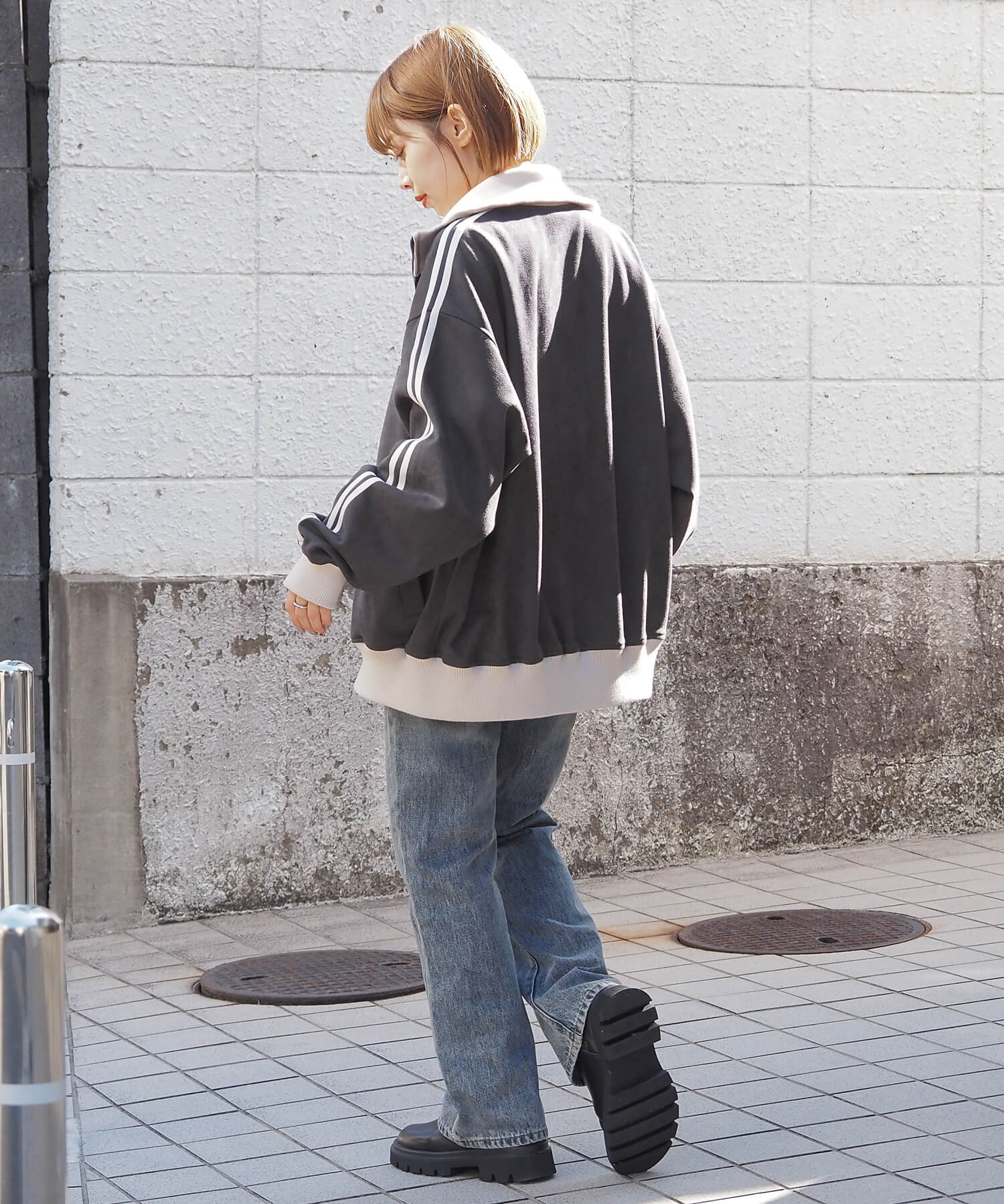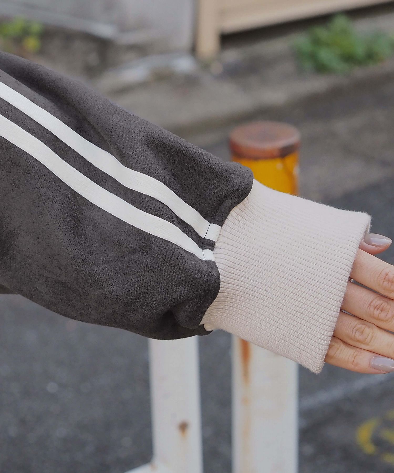 ・なめらかなスエードポンチ素材を使ったトラックジャケットです。