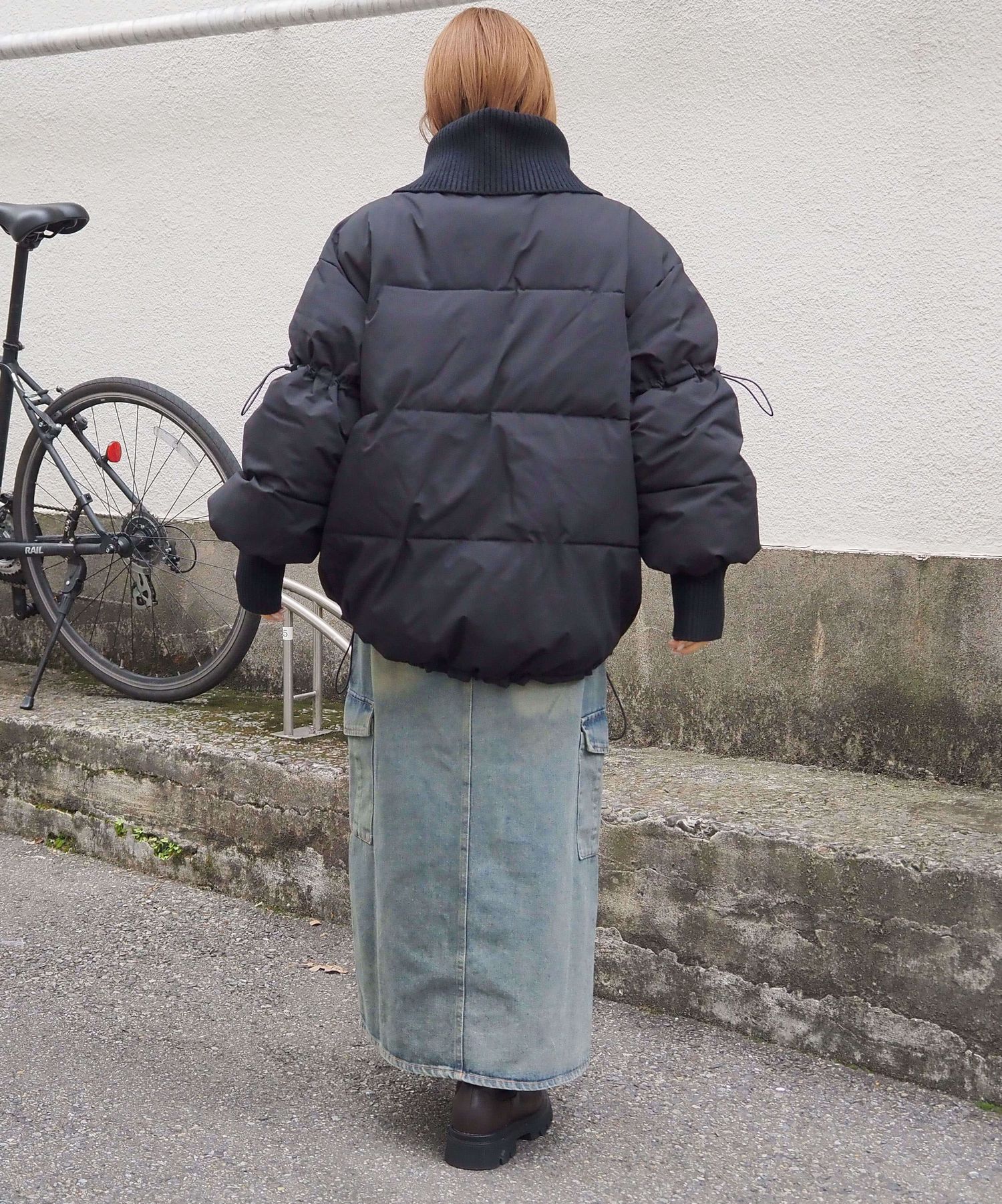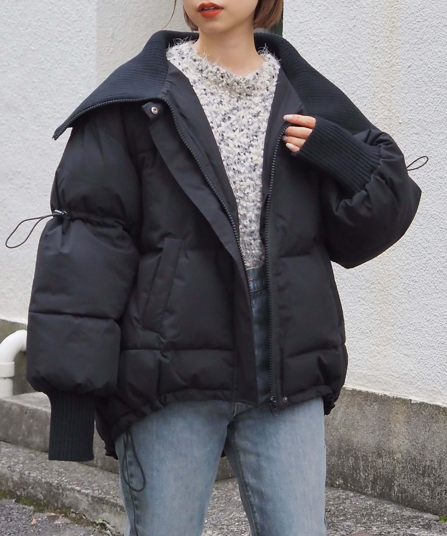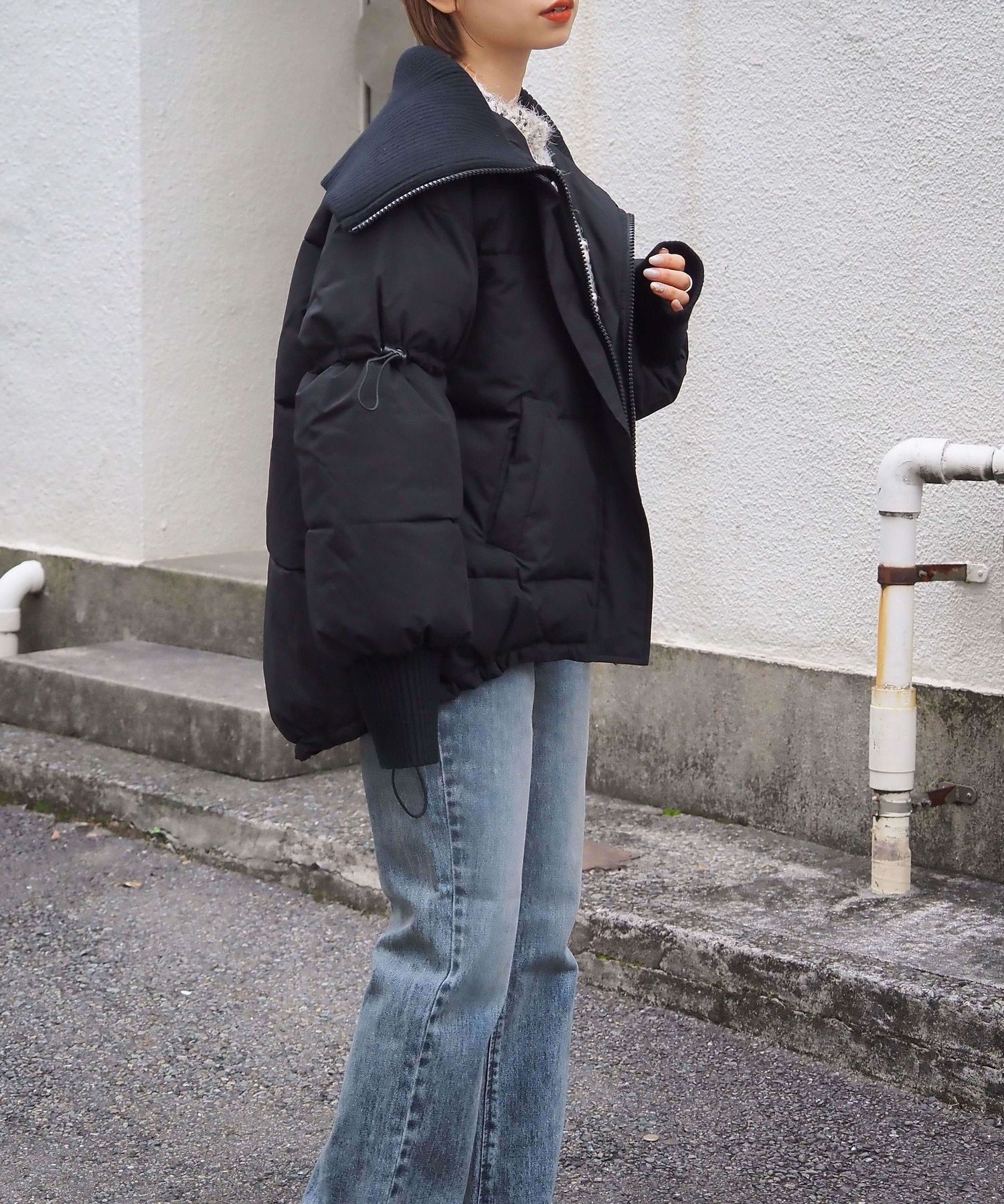 ・裾のドロストを絞っていただくと、丸みのあるシルエットが可愛く、コーディネートにメリハリも出るのでおすすめです。