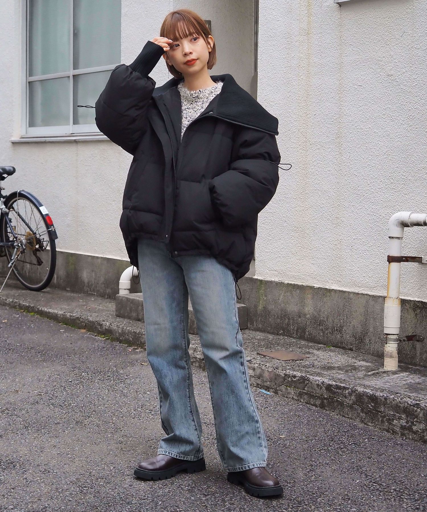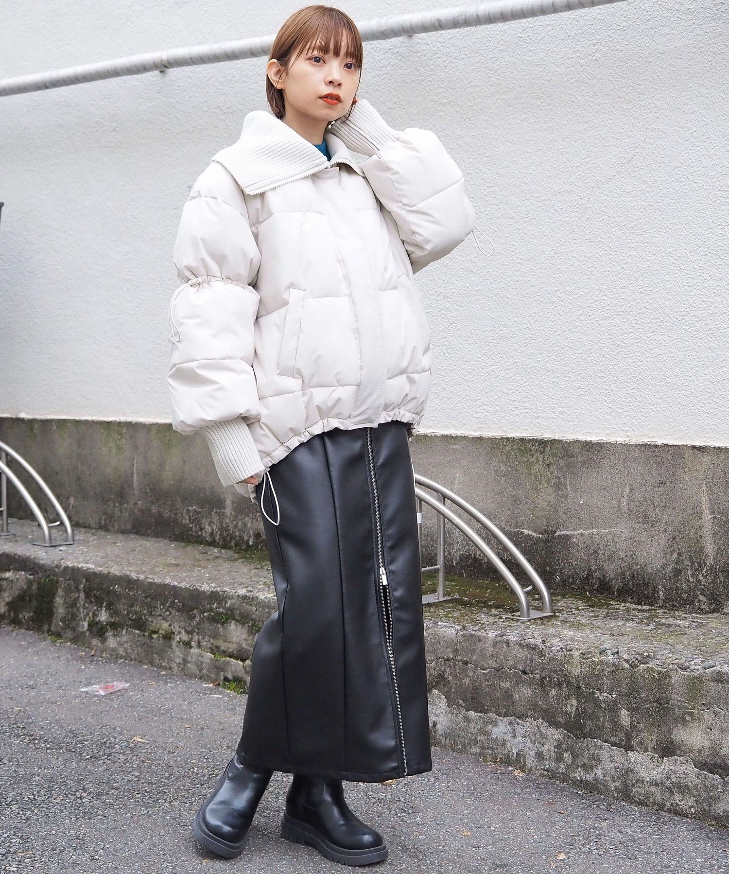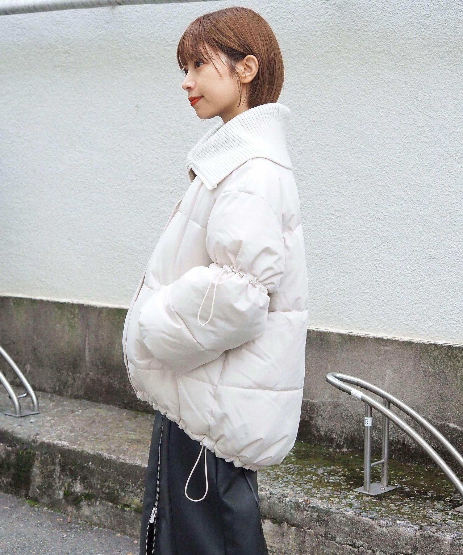 ・裾のドロストを絞っていただくと、丸みのあるシルエットが可愛く、コーディネートにメリハリも出るのでおすすめです。