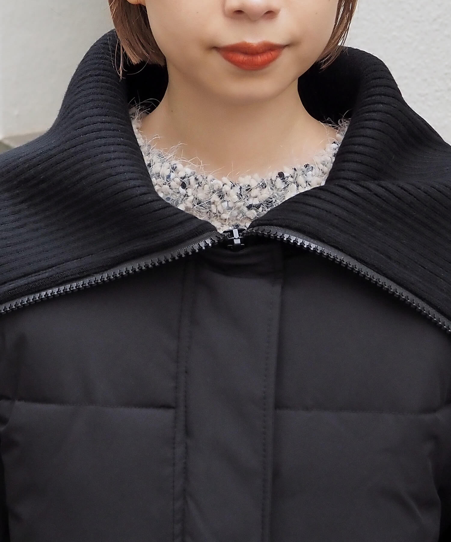 ・リブ編みで切り替えた襟元は、すっきりとハイネックではもちろん、トレンドライクにビッグカラーとしても楽しめるデザイン。