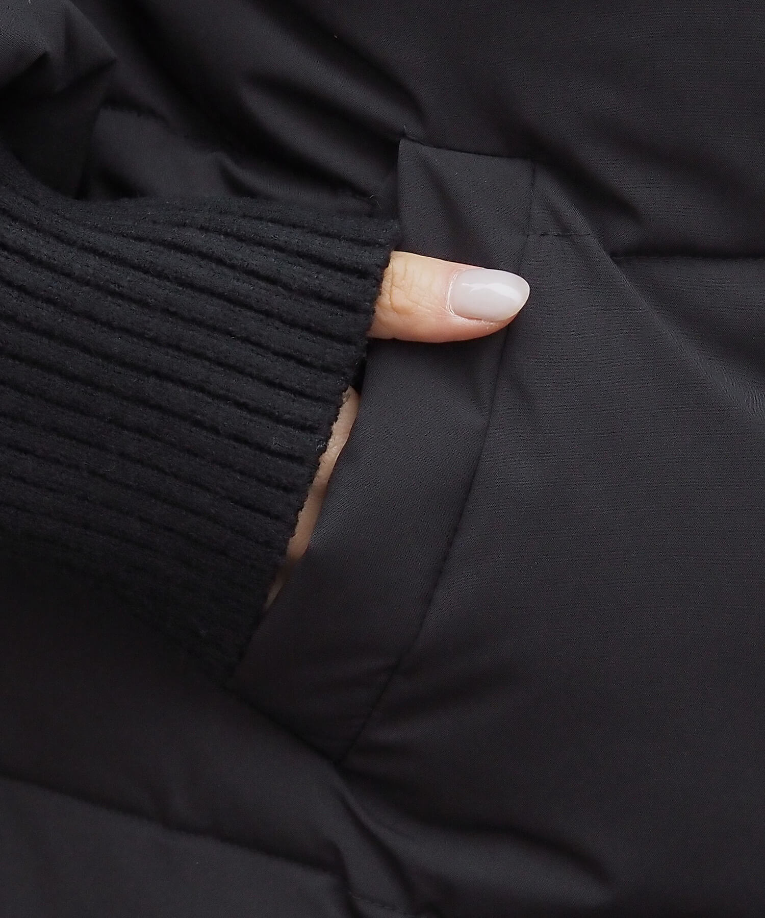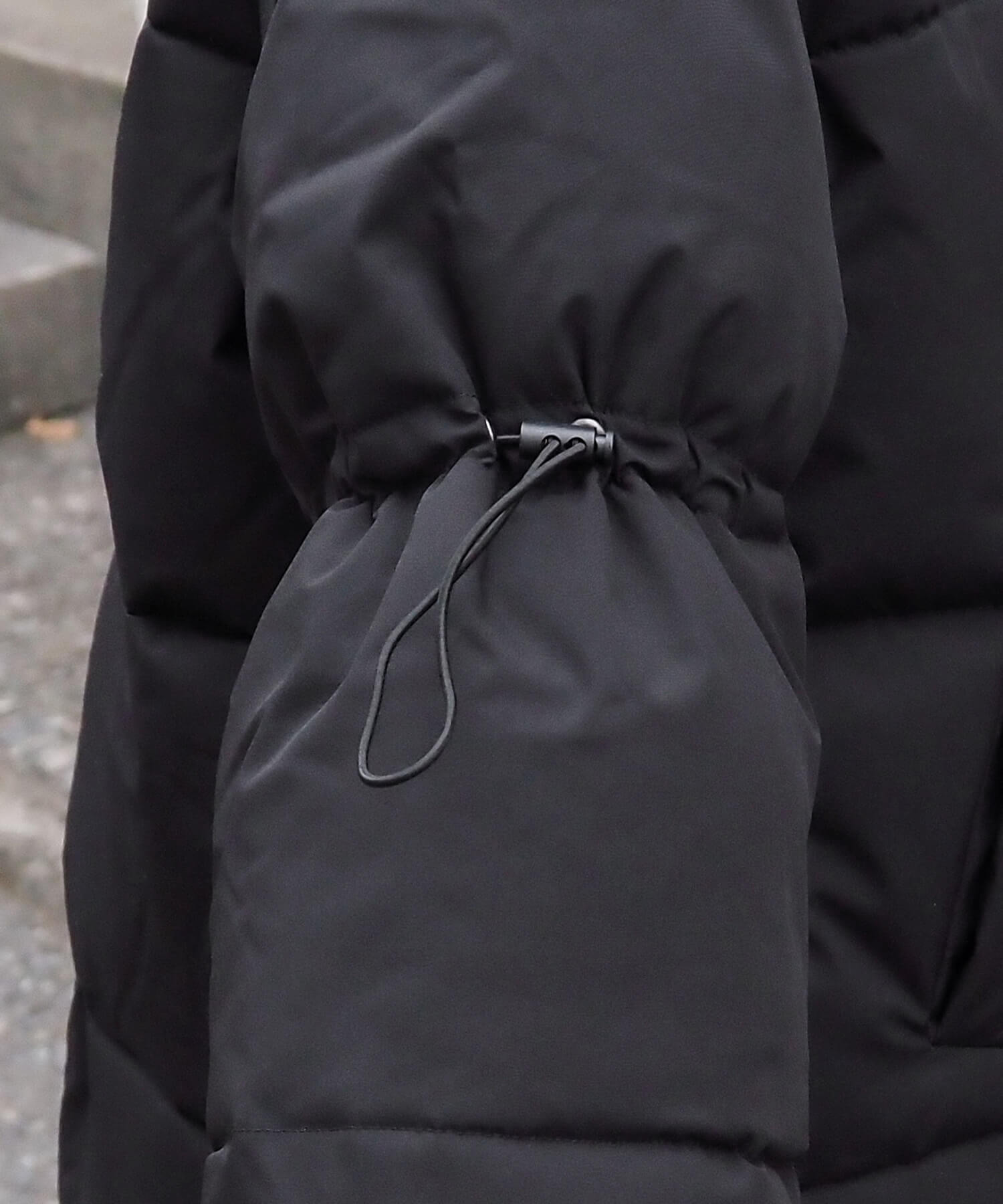 ・袖のドロストコードを絞るとデザインのアクセントになるだけでなく、すっきりとした印象で着用できます。