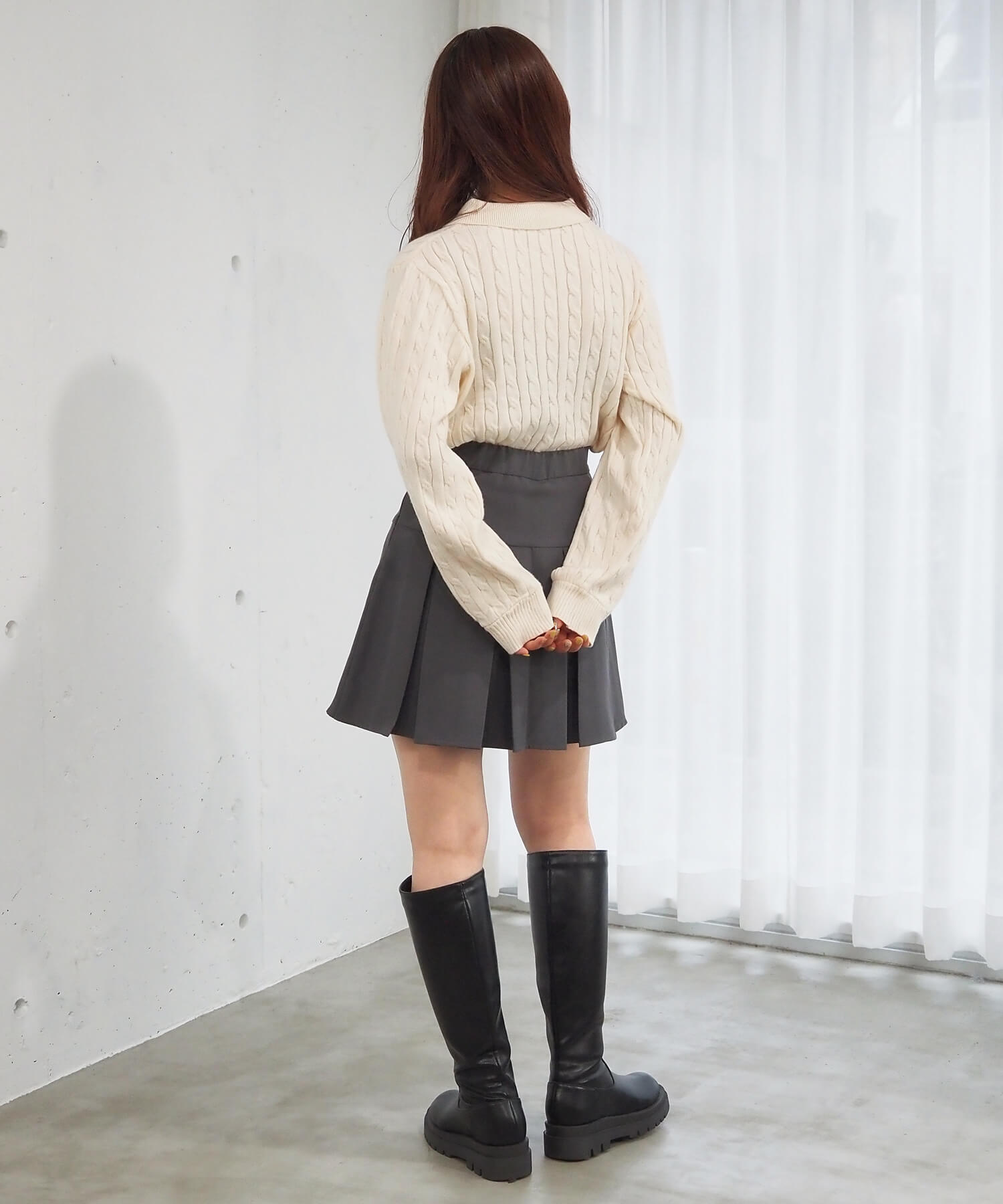 ケーブルニットポロワンピース