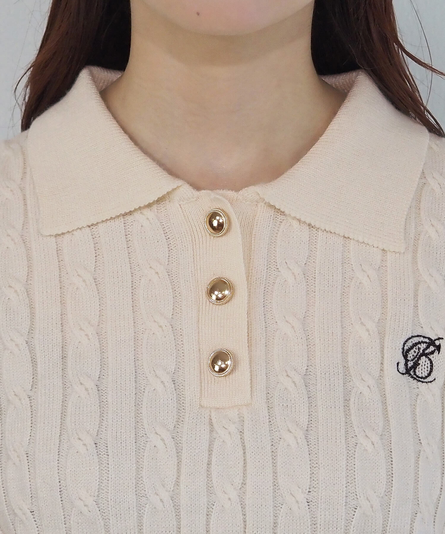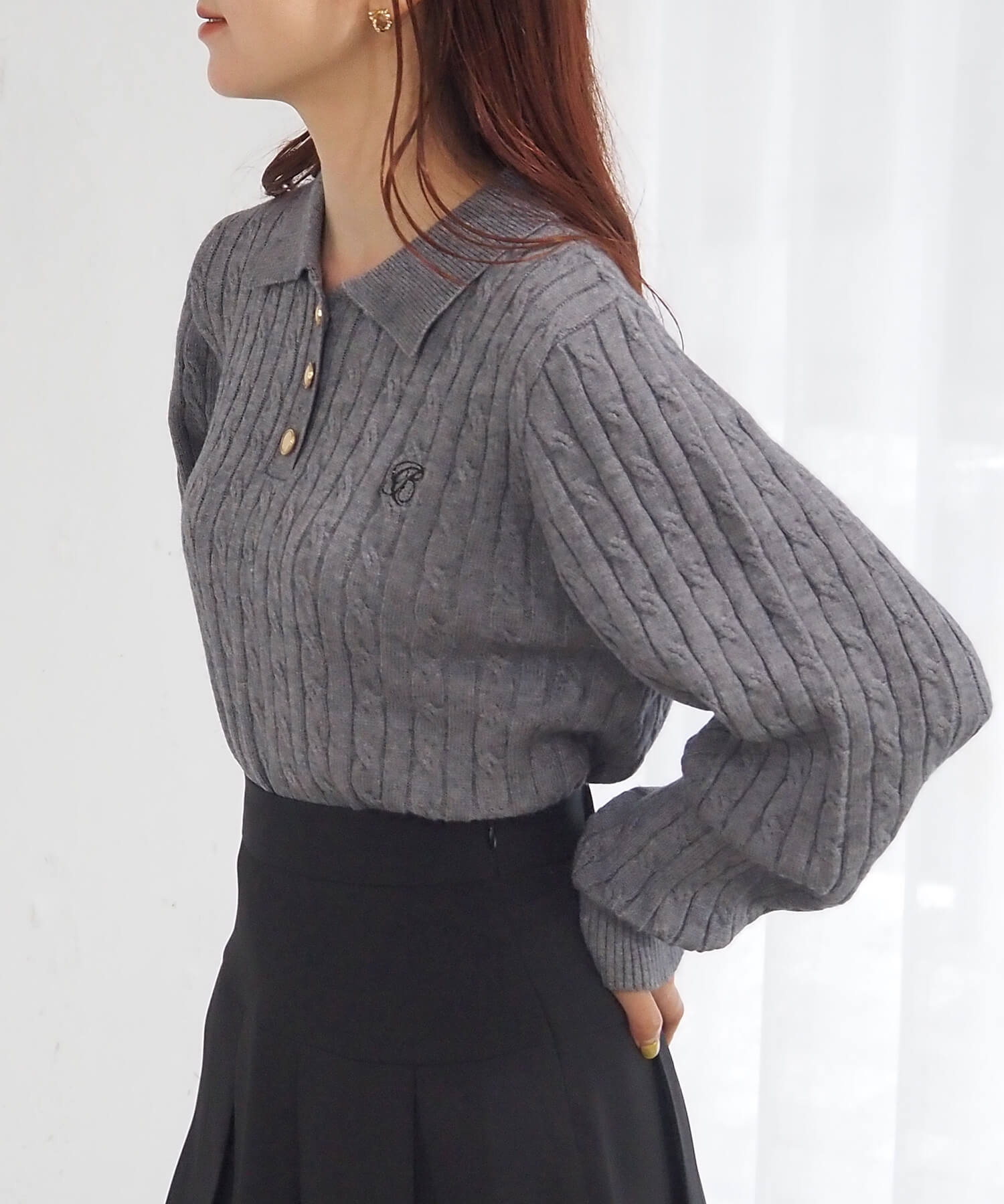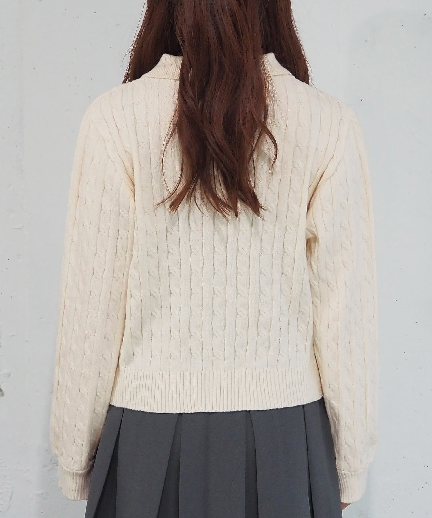 ケーブルニットポロプルオーバー