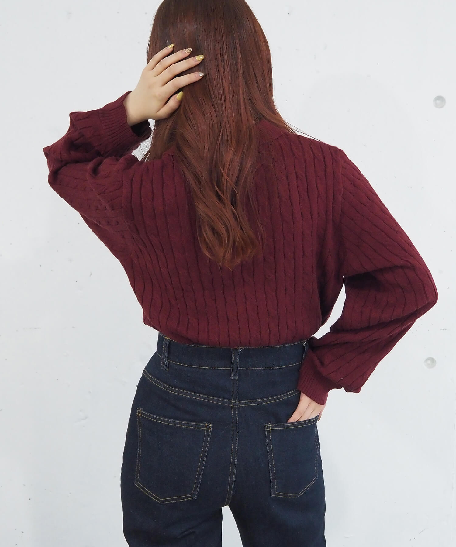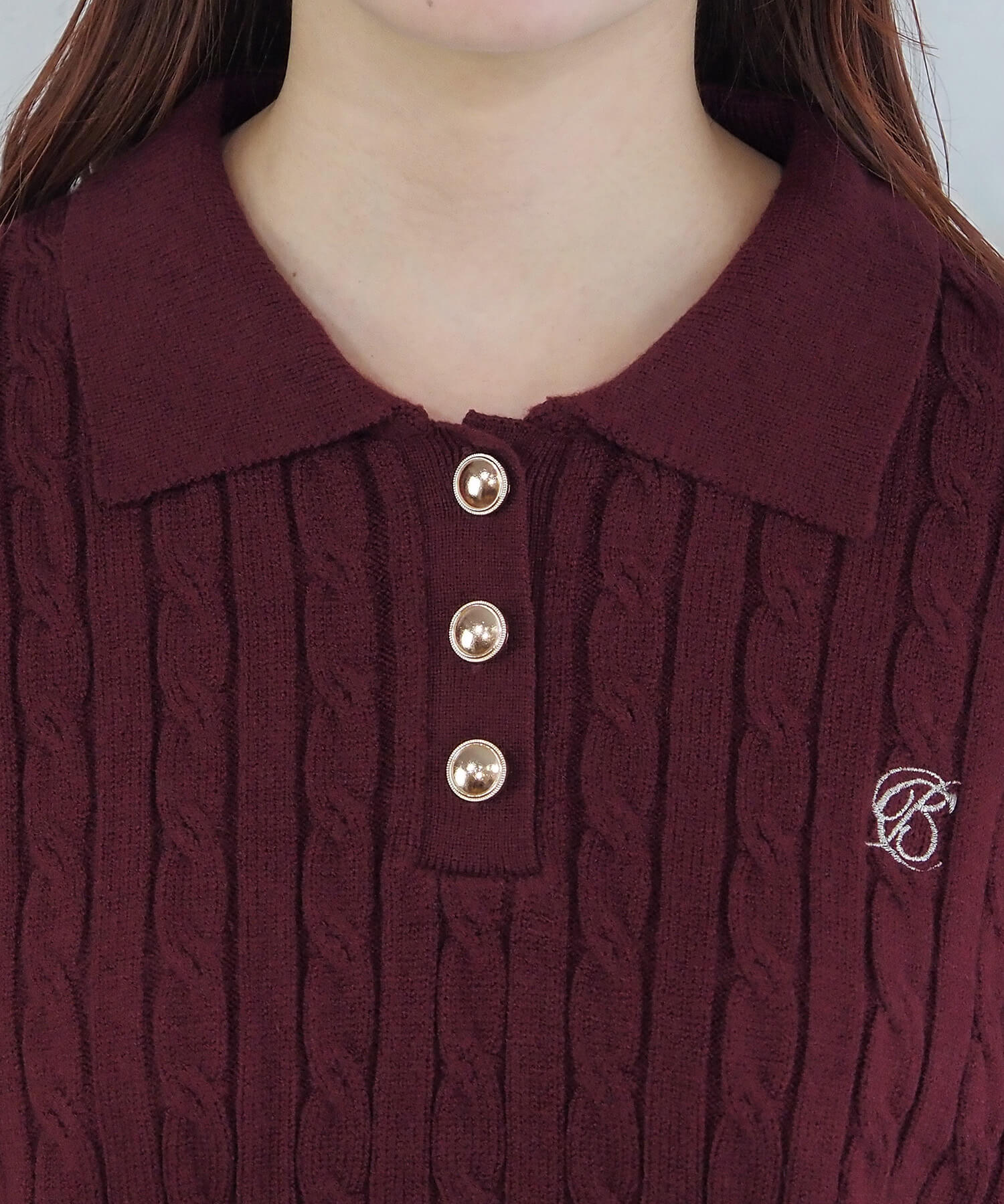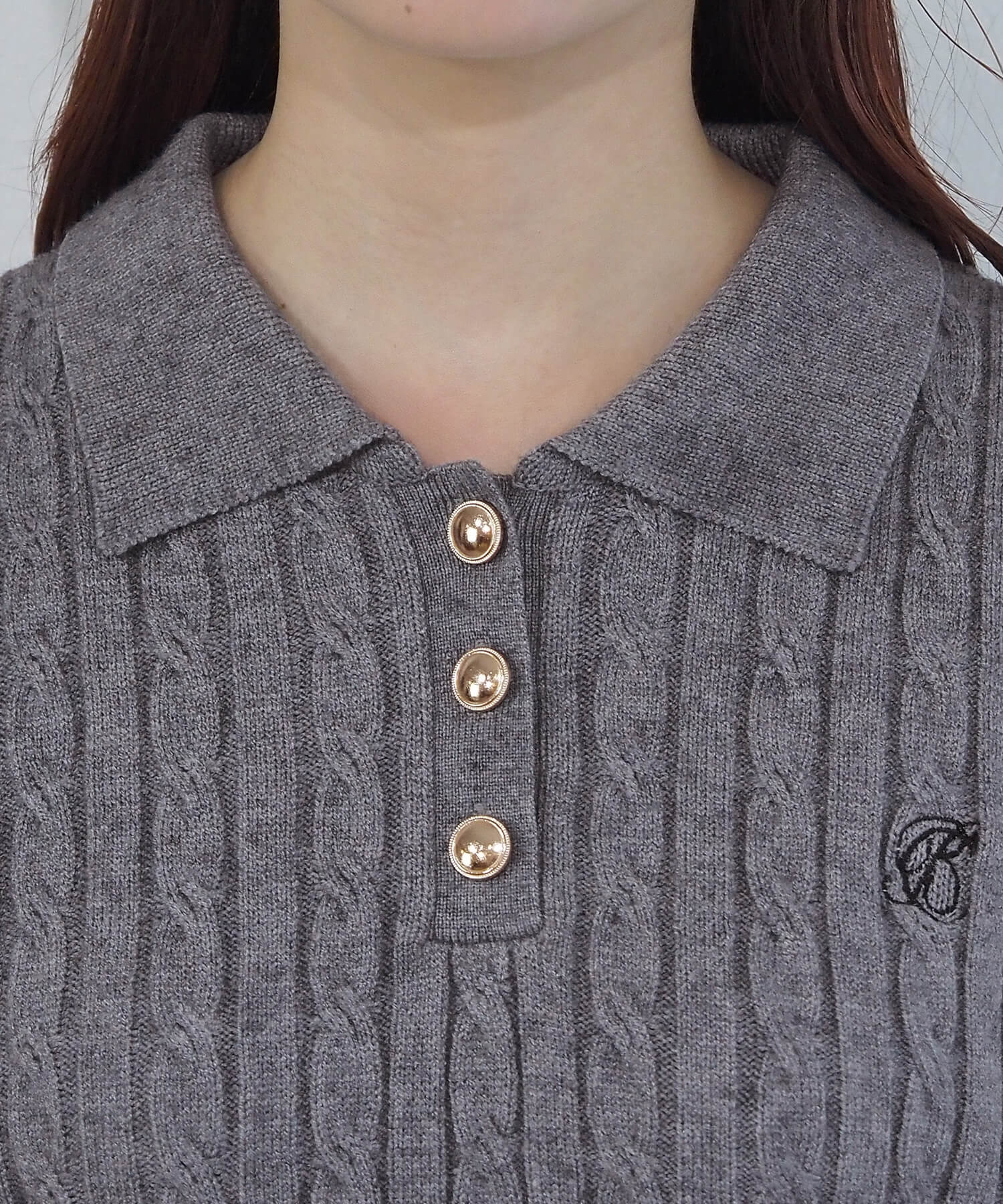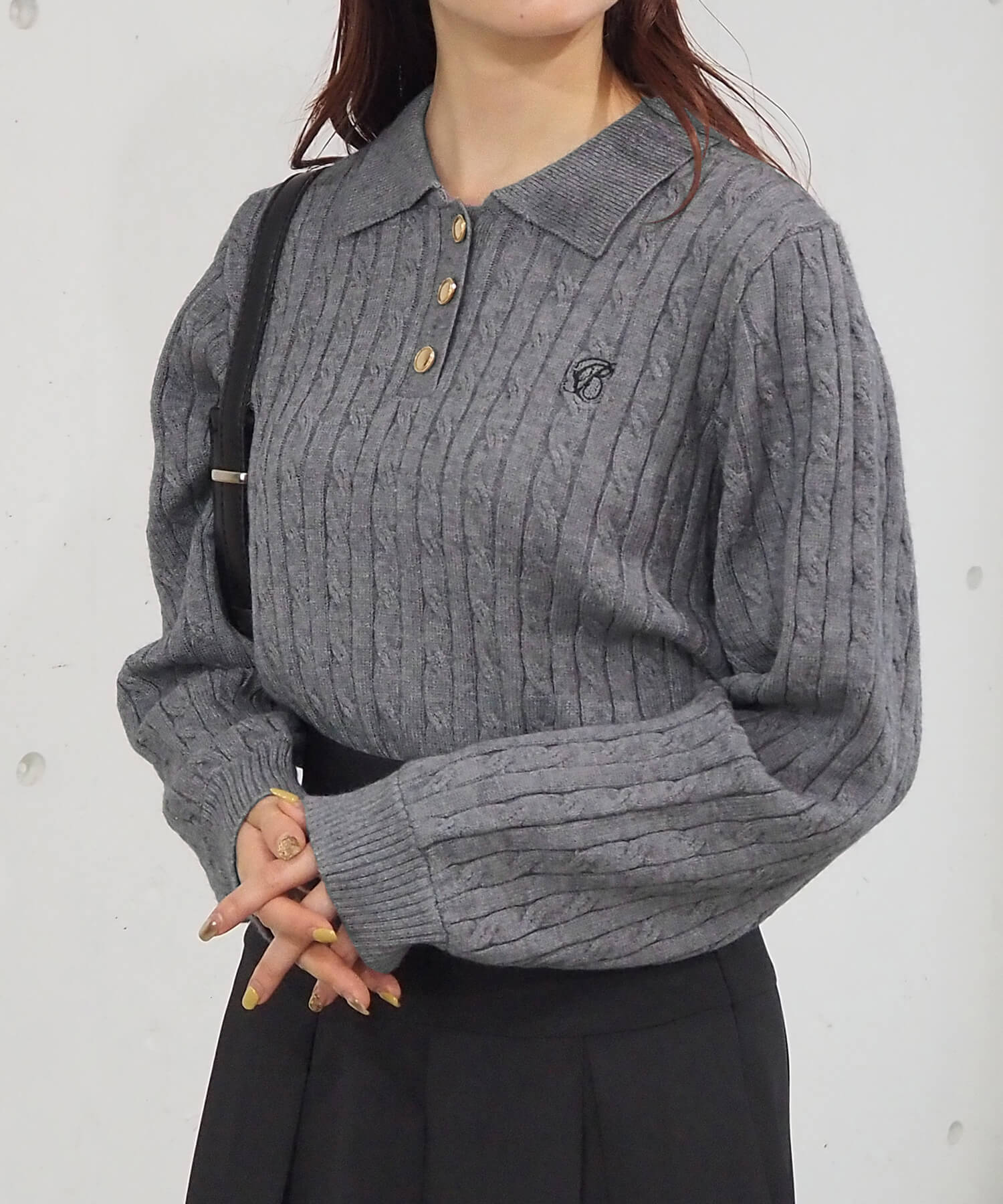 ケーブルニットポロプルオーバー
