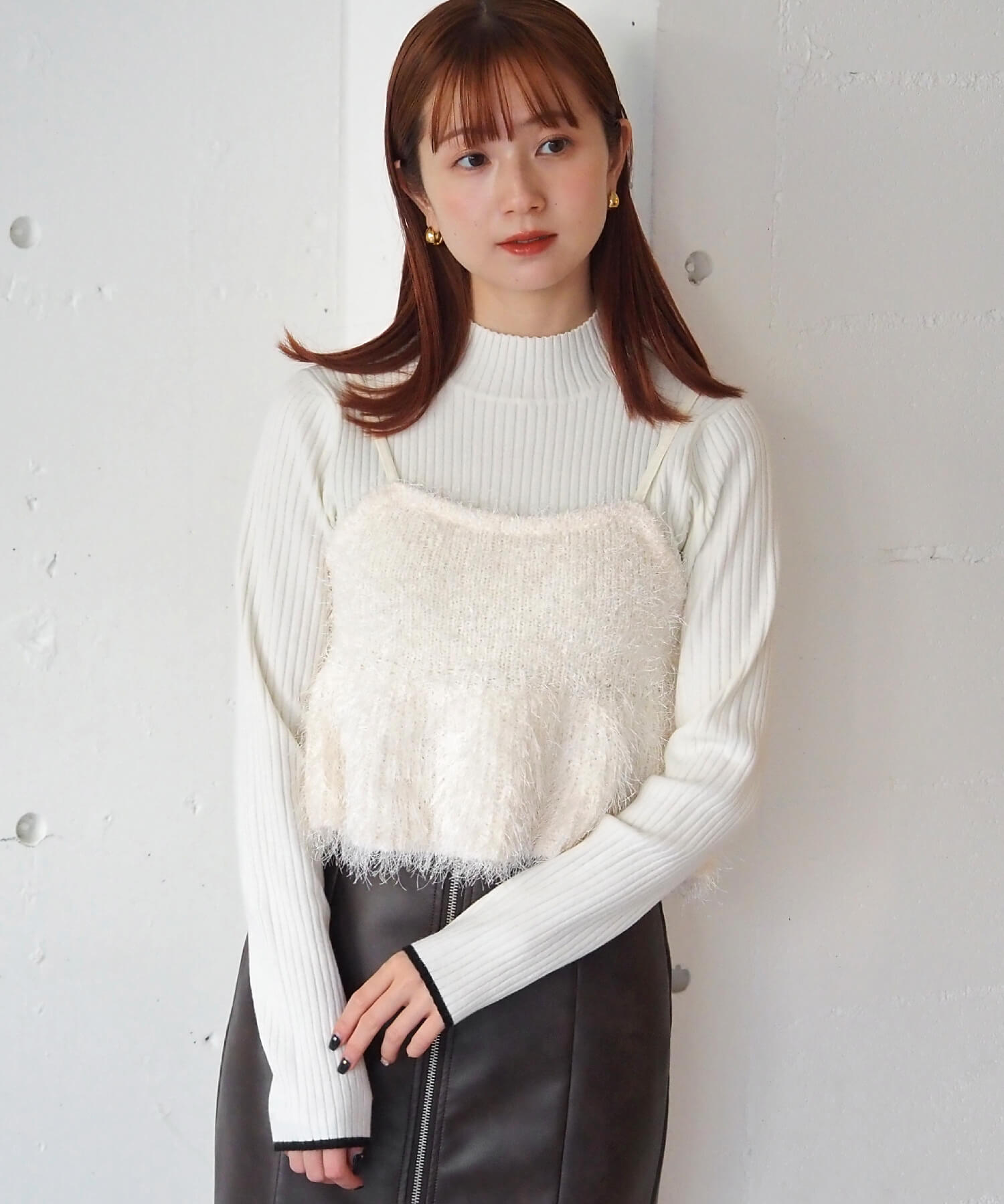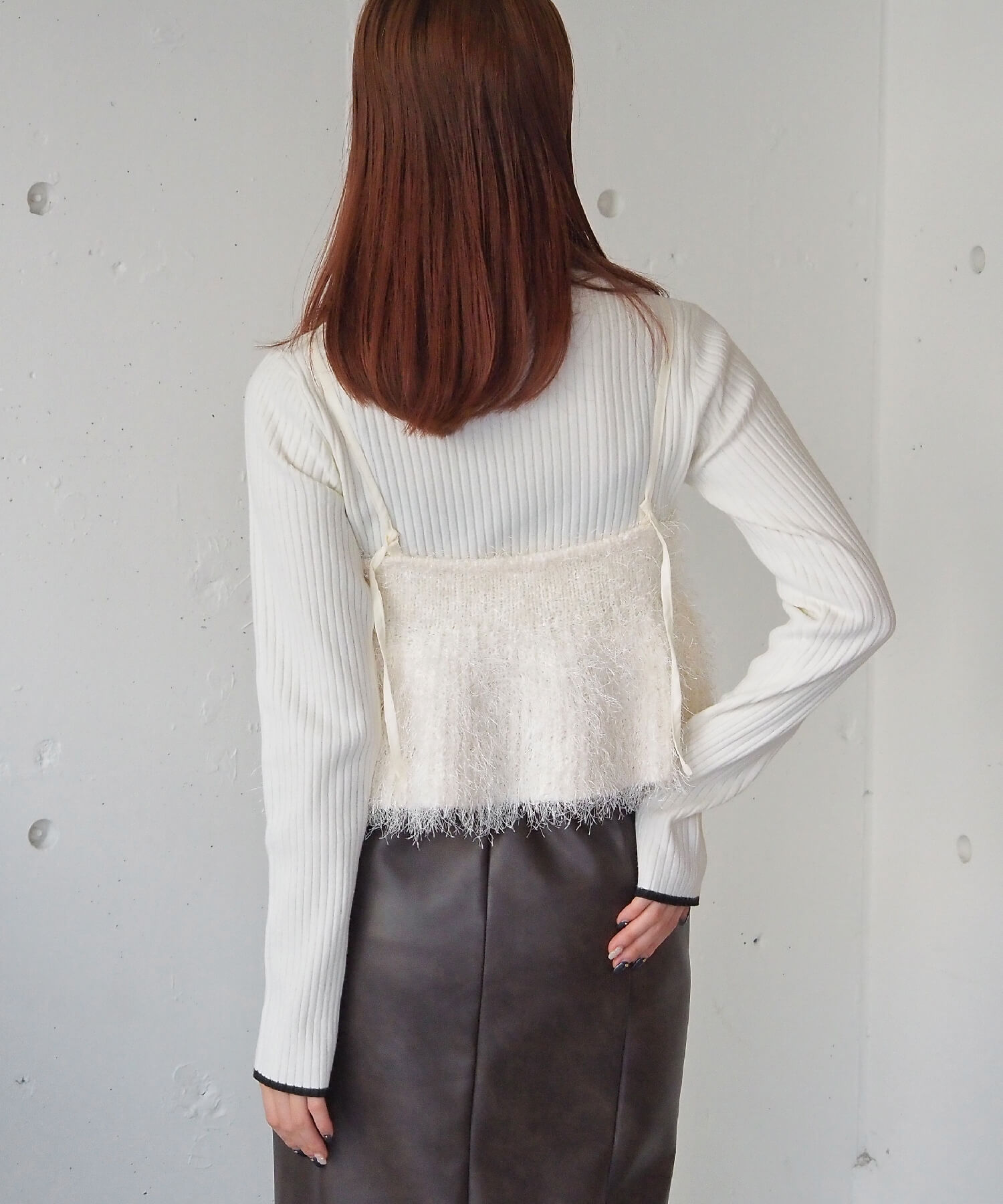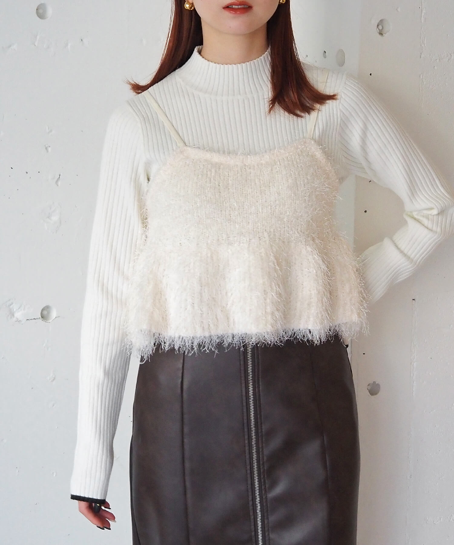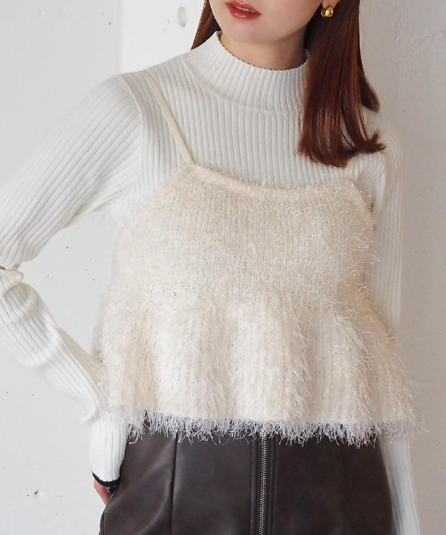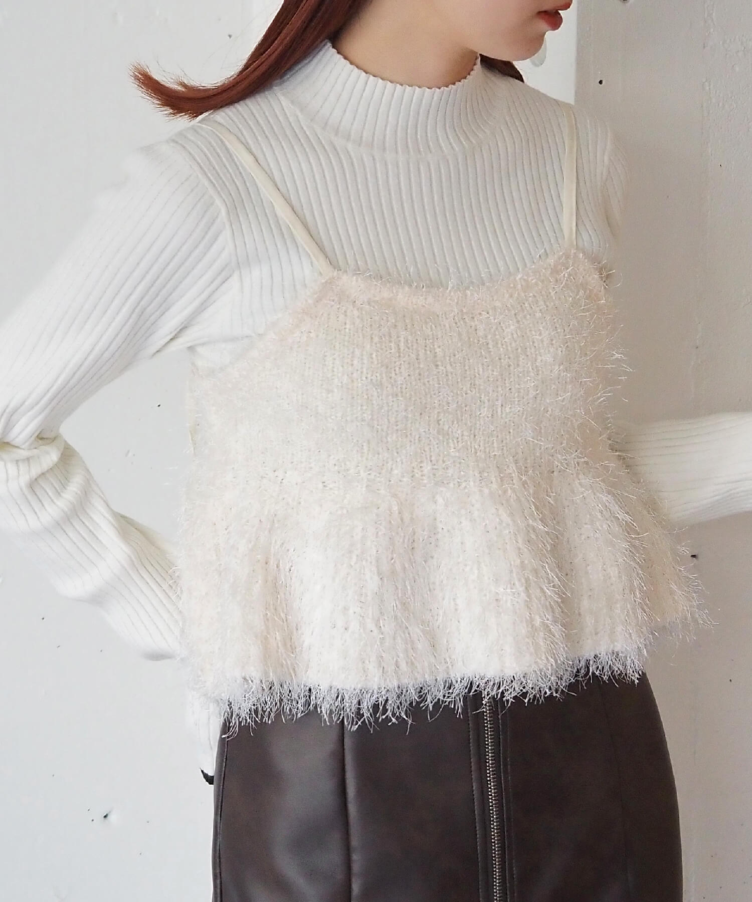 ・ふんわりとしたフェザーヤーンが華やかなキャミソールビスチェです。