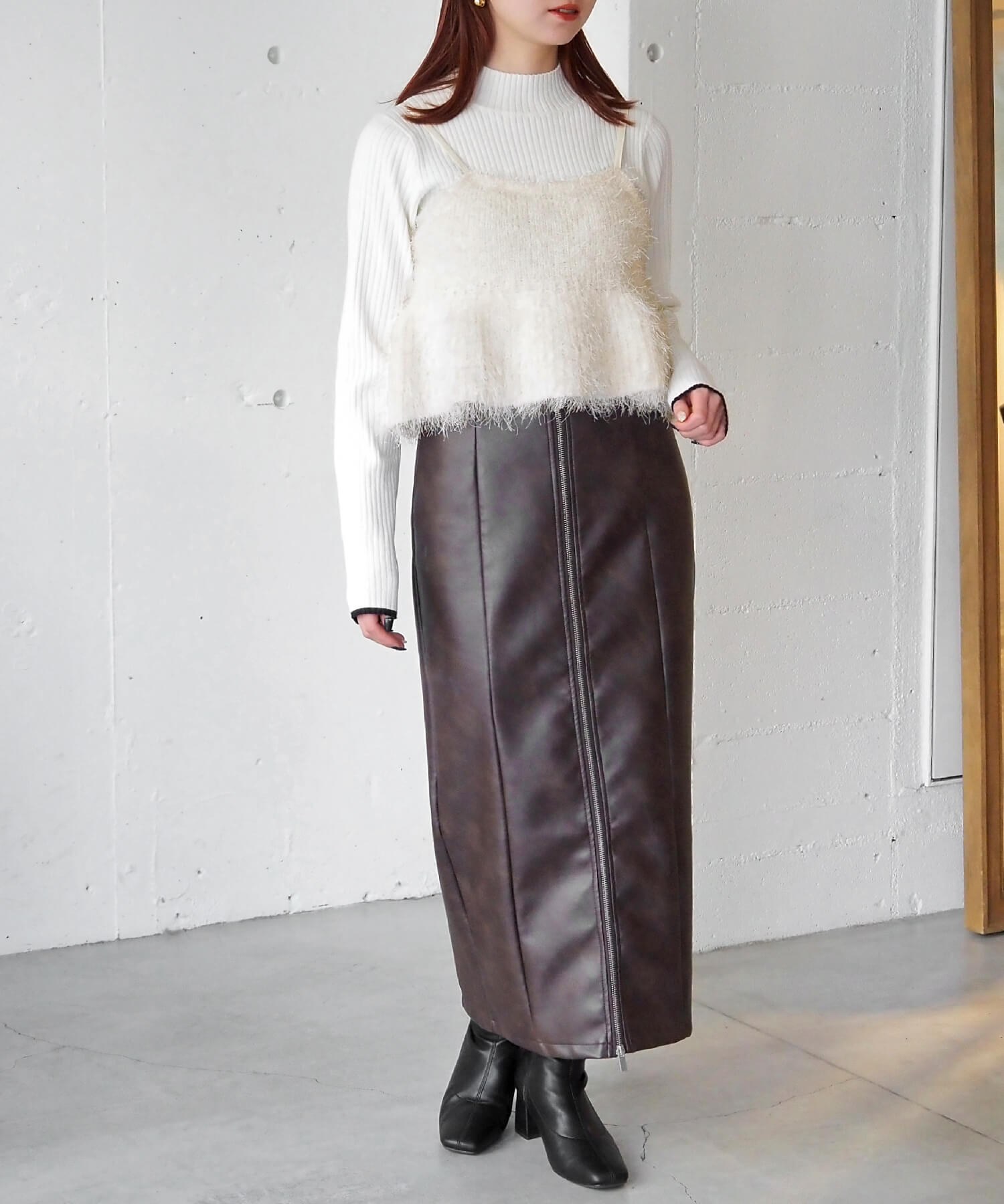 ・ビスチェのペプラムシルエットが際立つので、トップスはインして着るのがおすすめです。