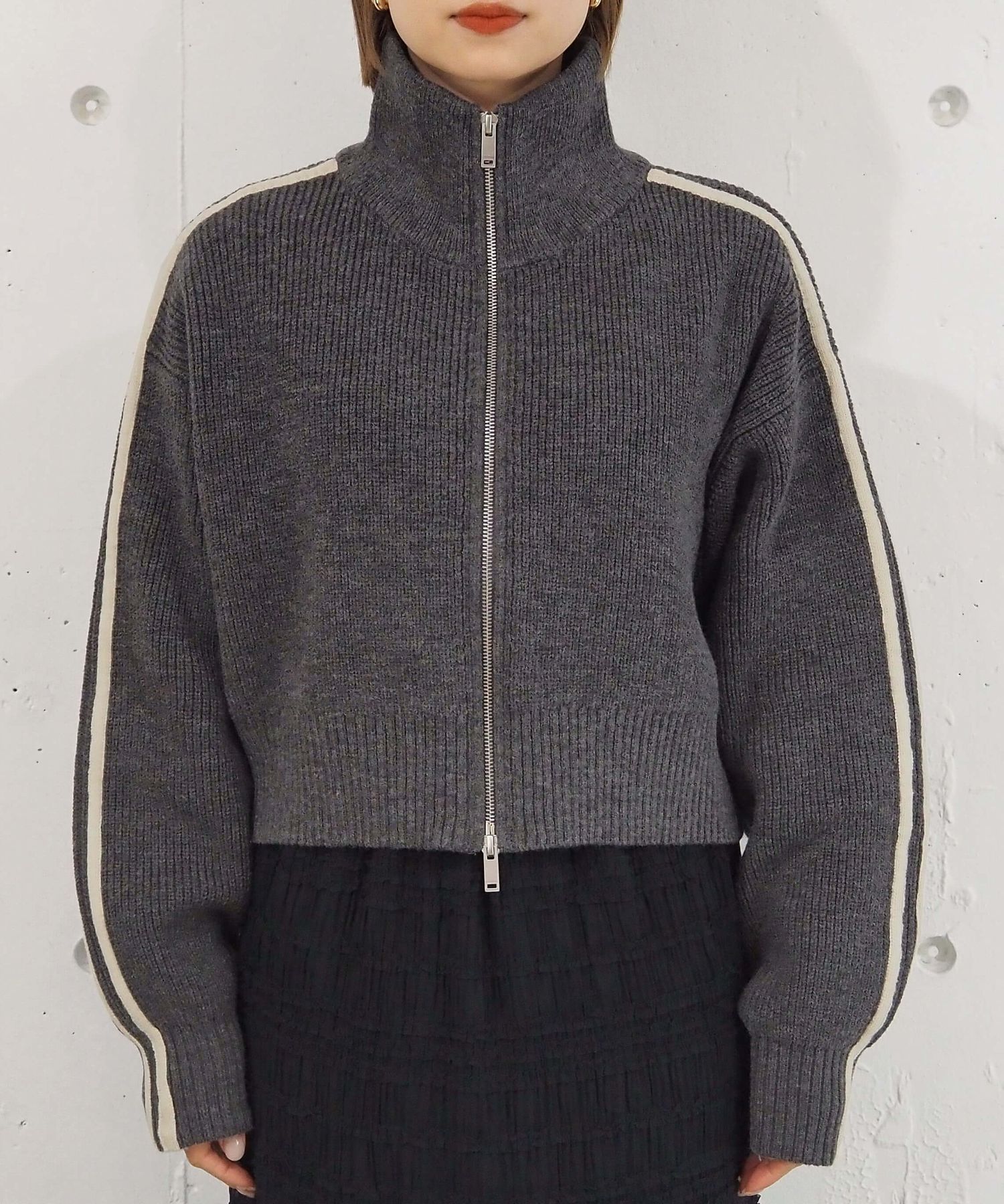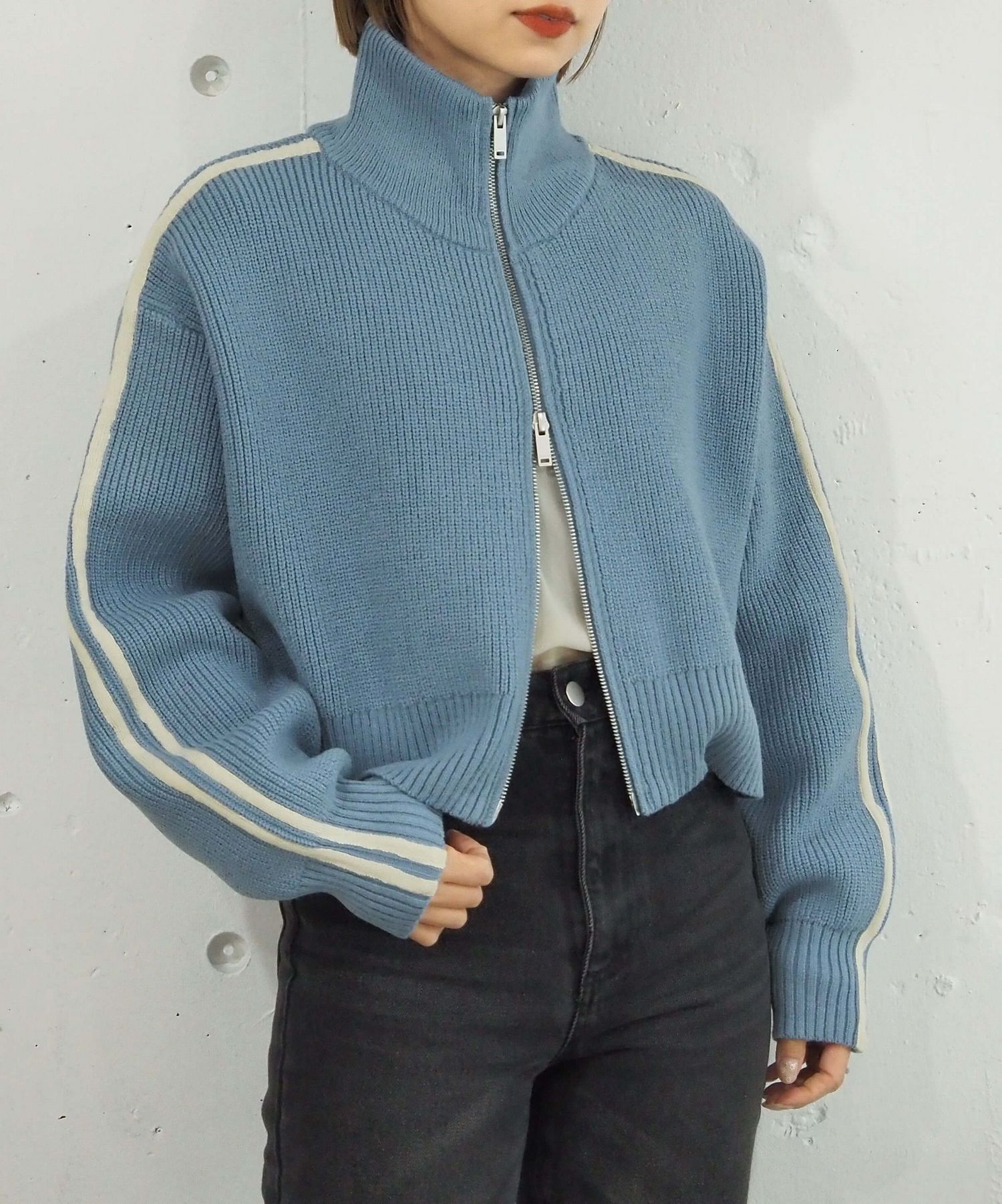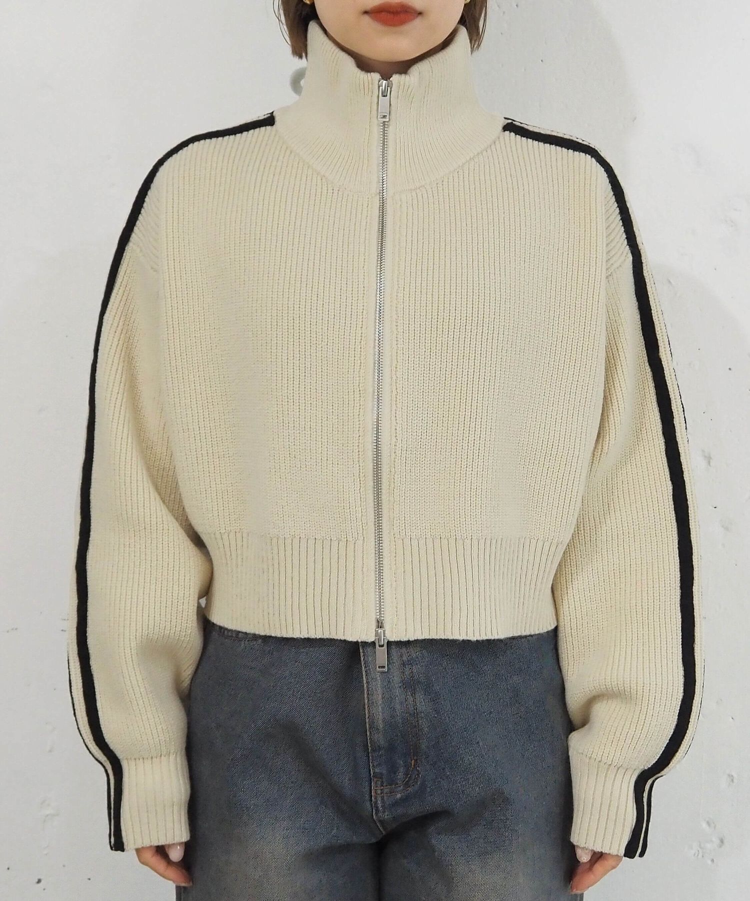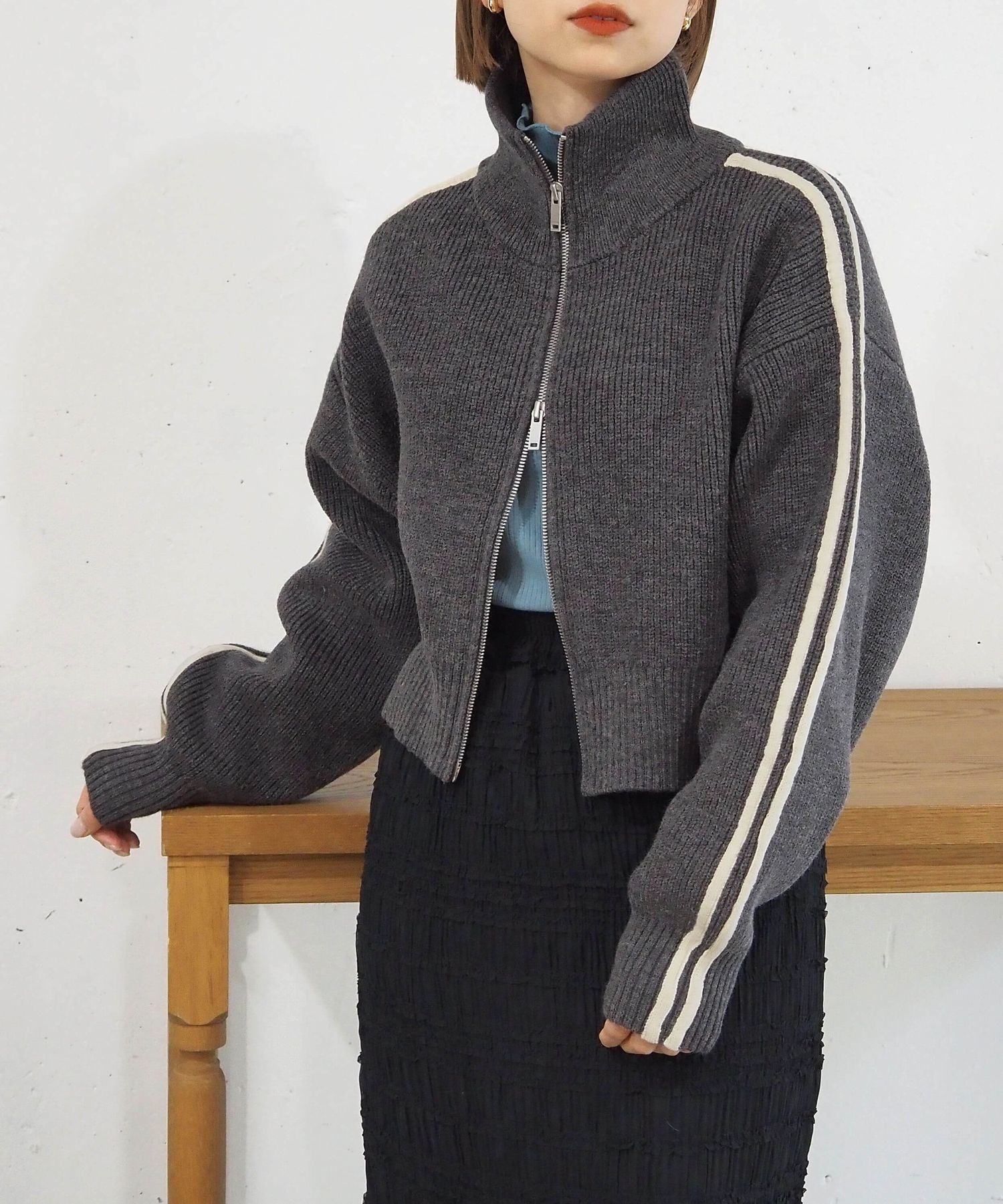 ・ダブルジップとラインデザインがポイントのショート丈ニットです。