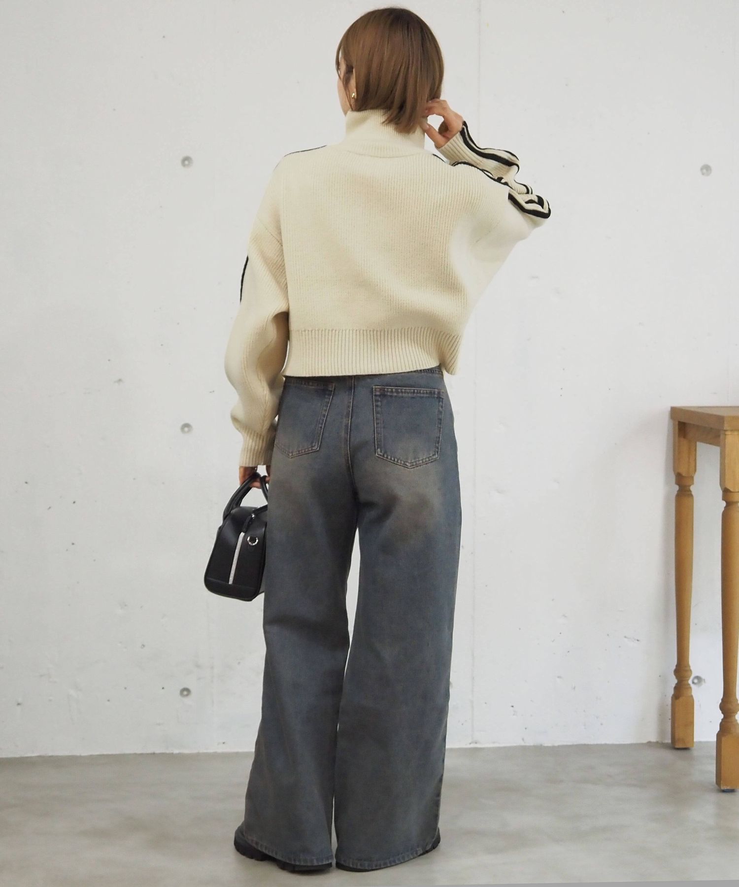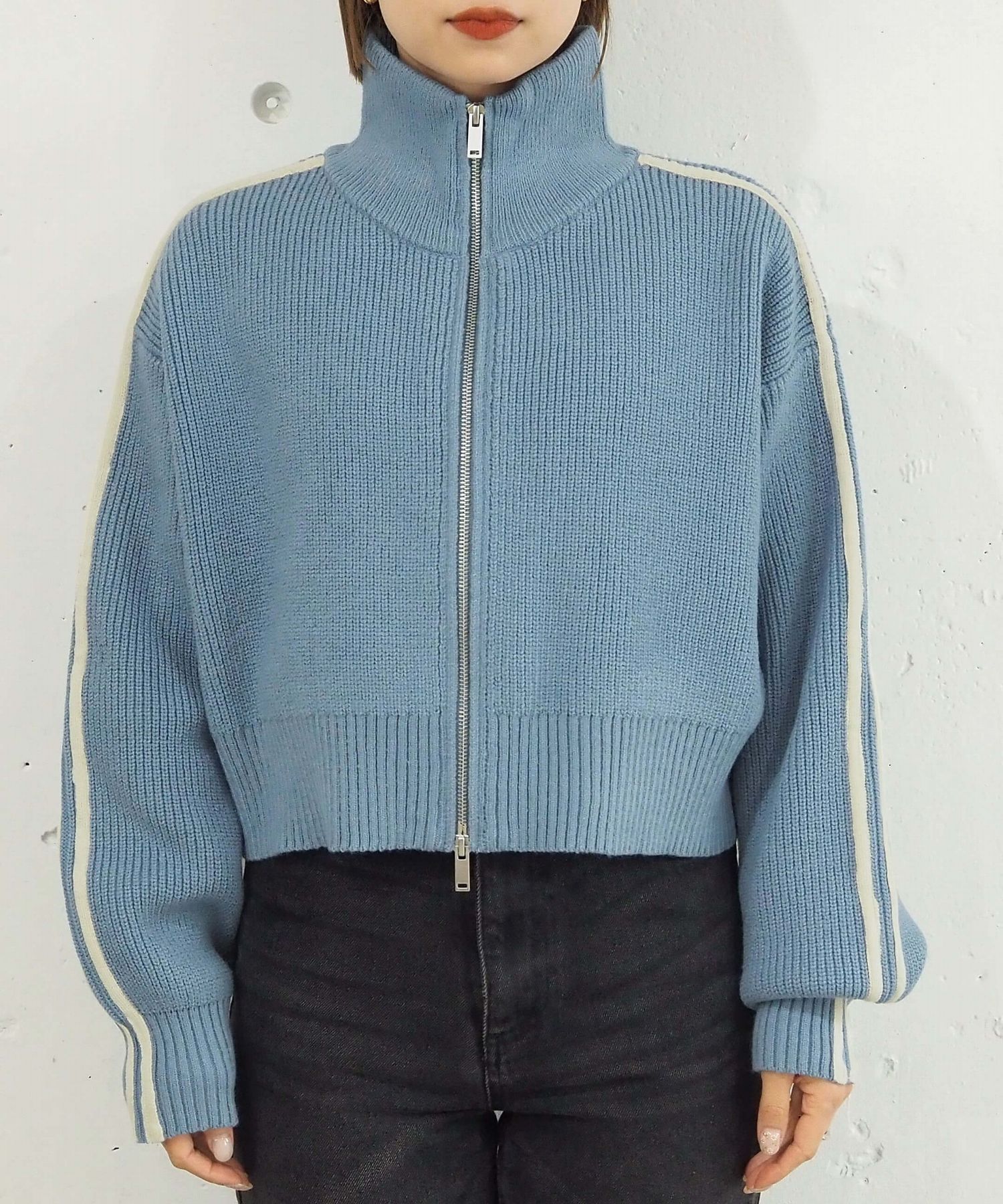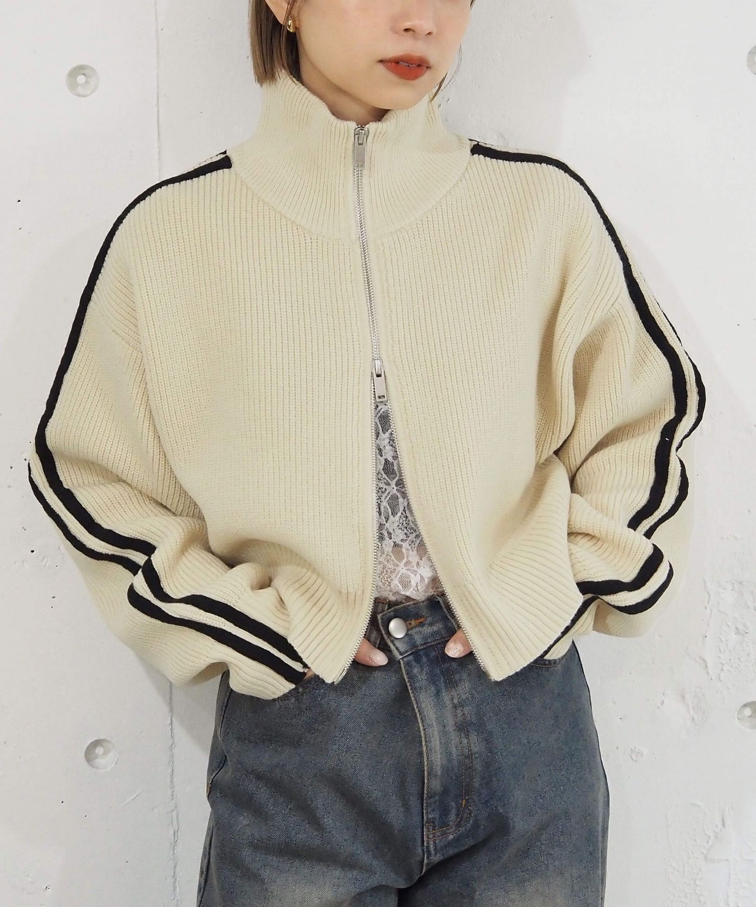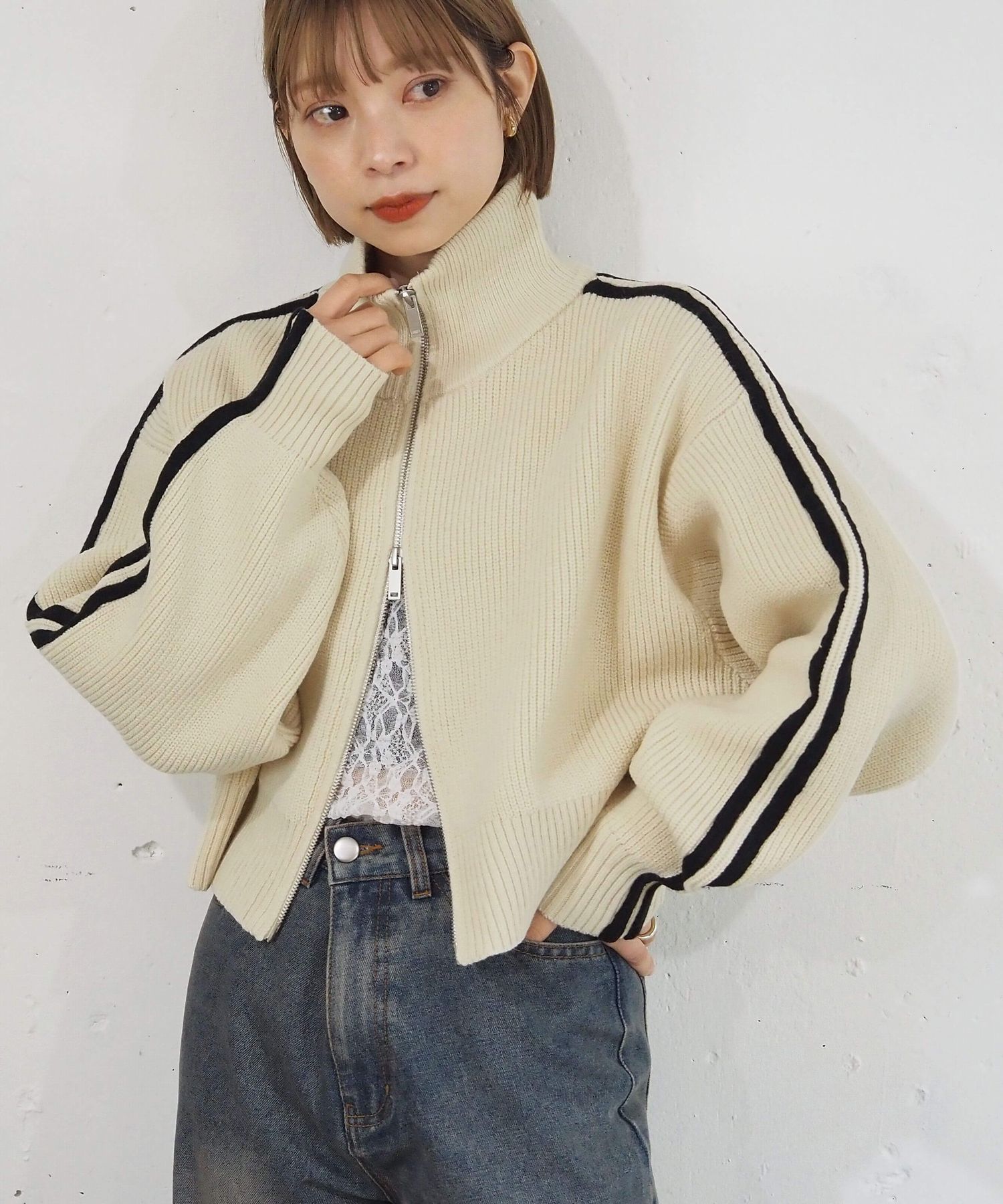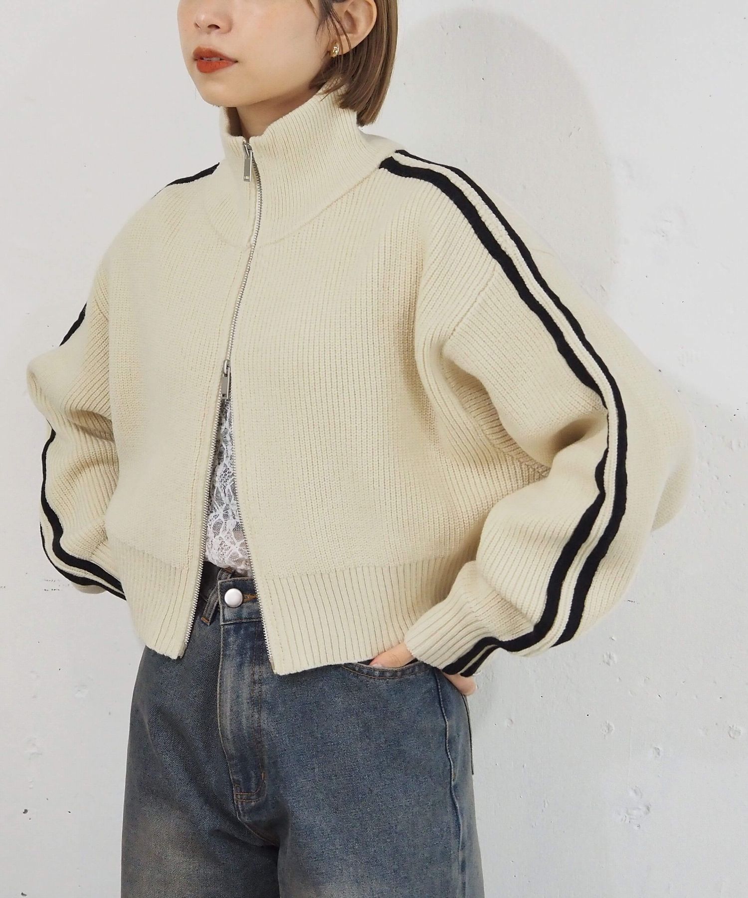 ・ダブルジップとラインデザインがポイントのショート丈ニットです。