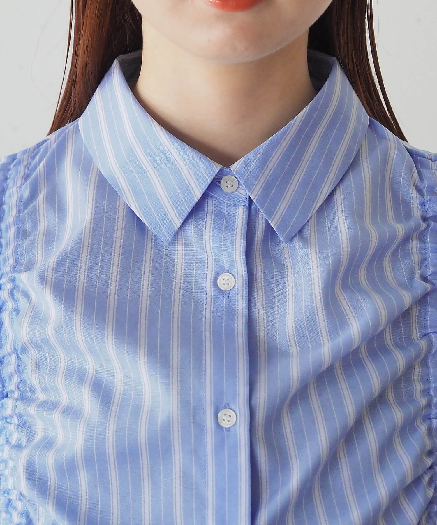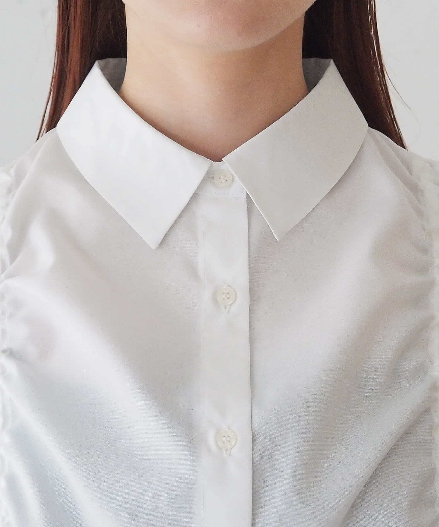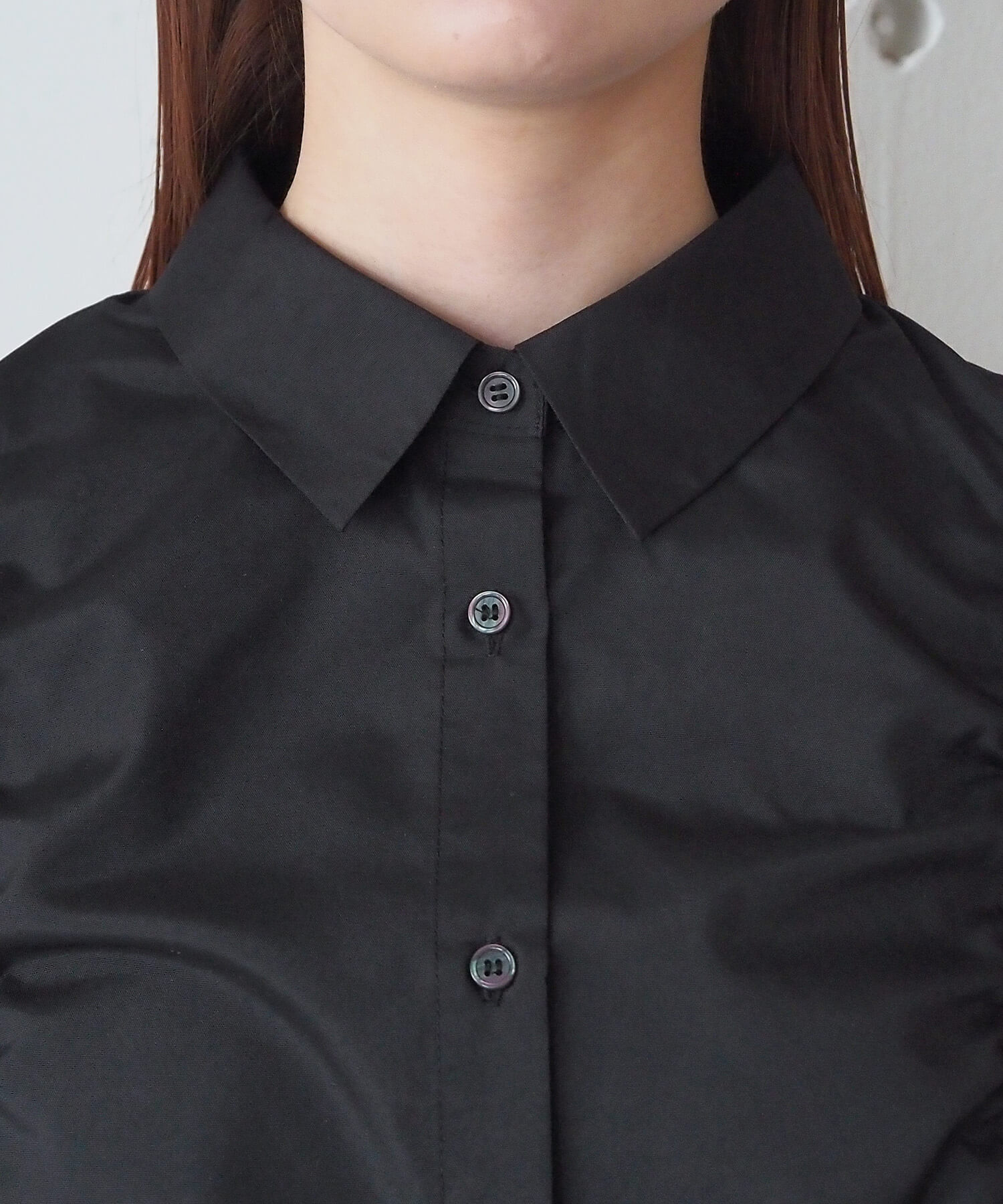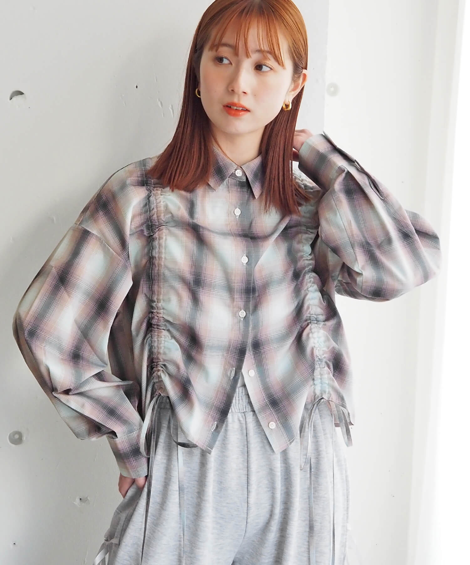 ・フロントのドロストデザインが目を惹くショート丈シャツです。