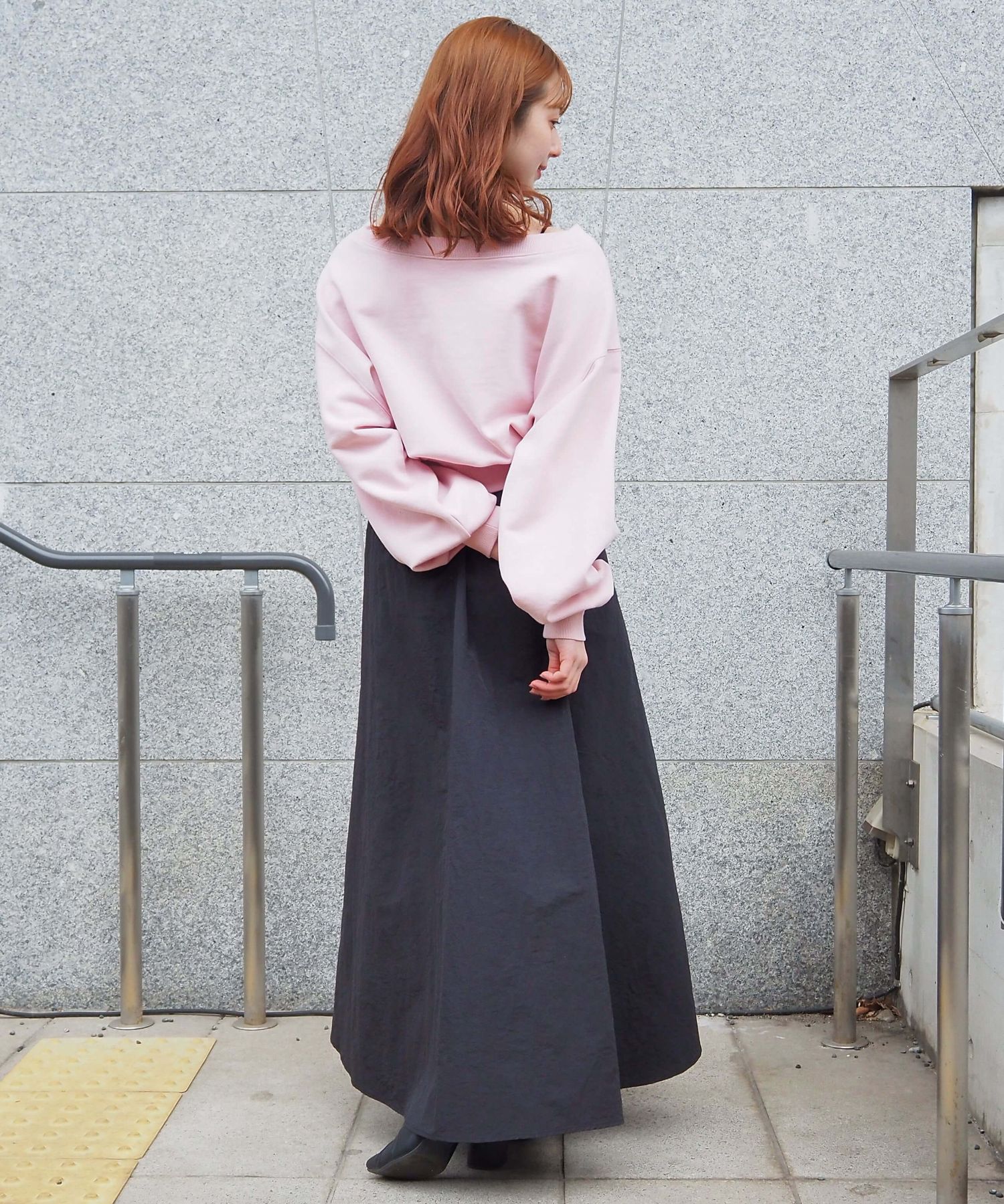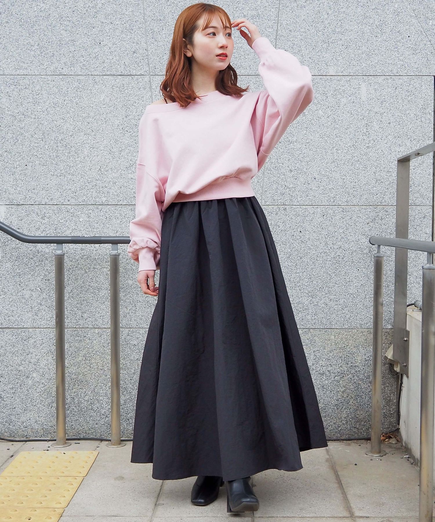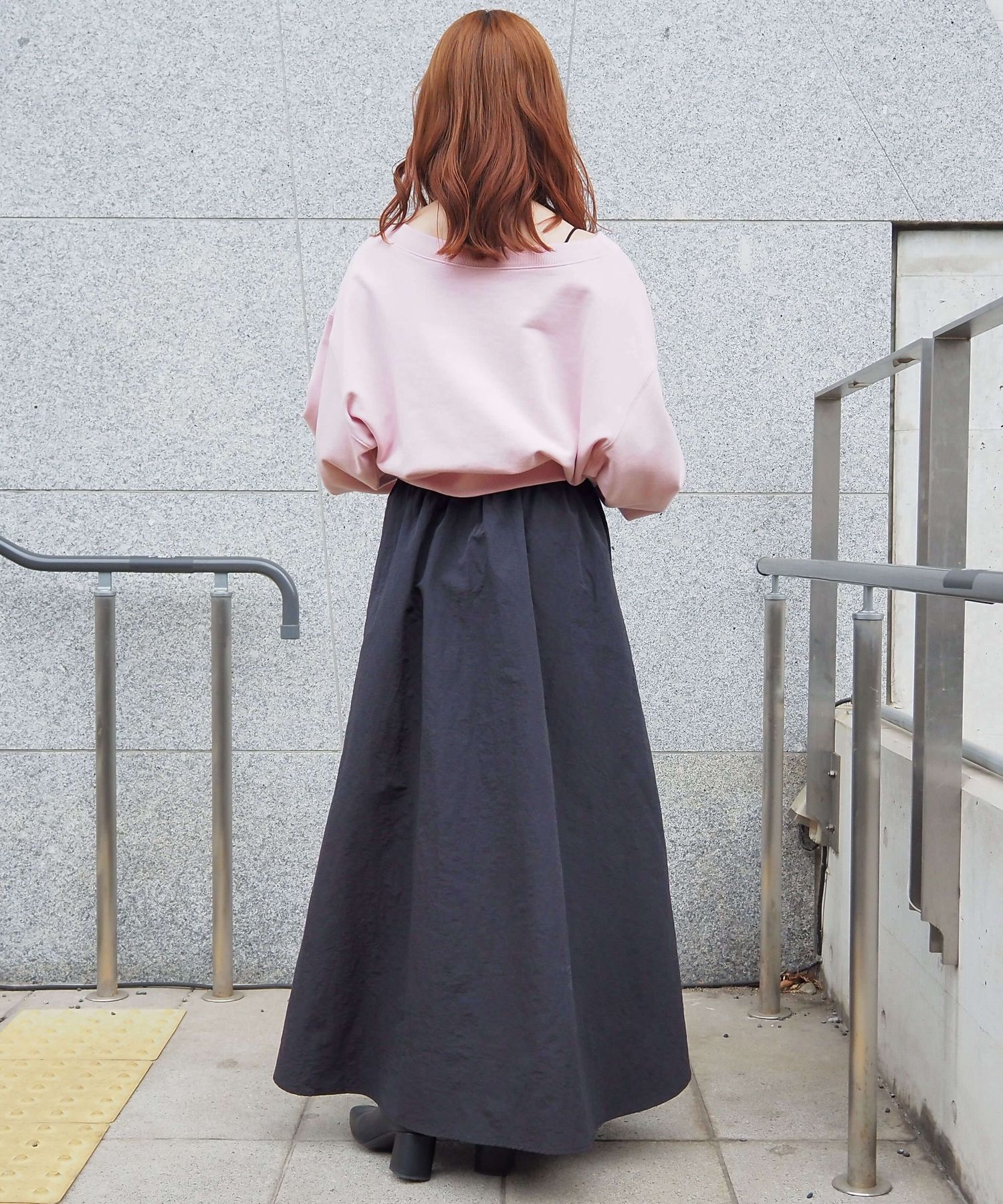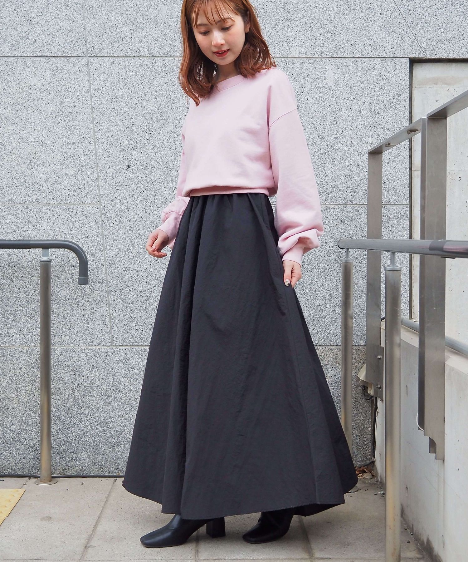 ・スカート部分は程よくカジュアル感も出る素材なので、幅広いシューズに馴染みます。ヒールやサンダルはもちろん、スニーカーでトレンドのスポーツミックスもおすすめです。