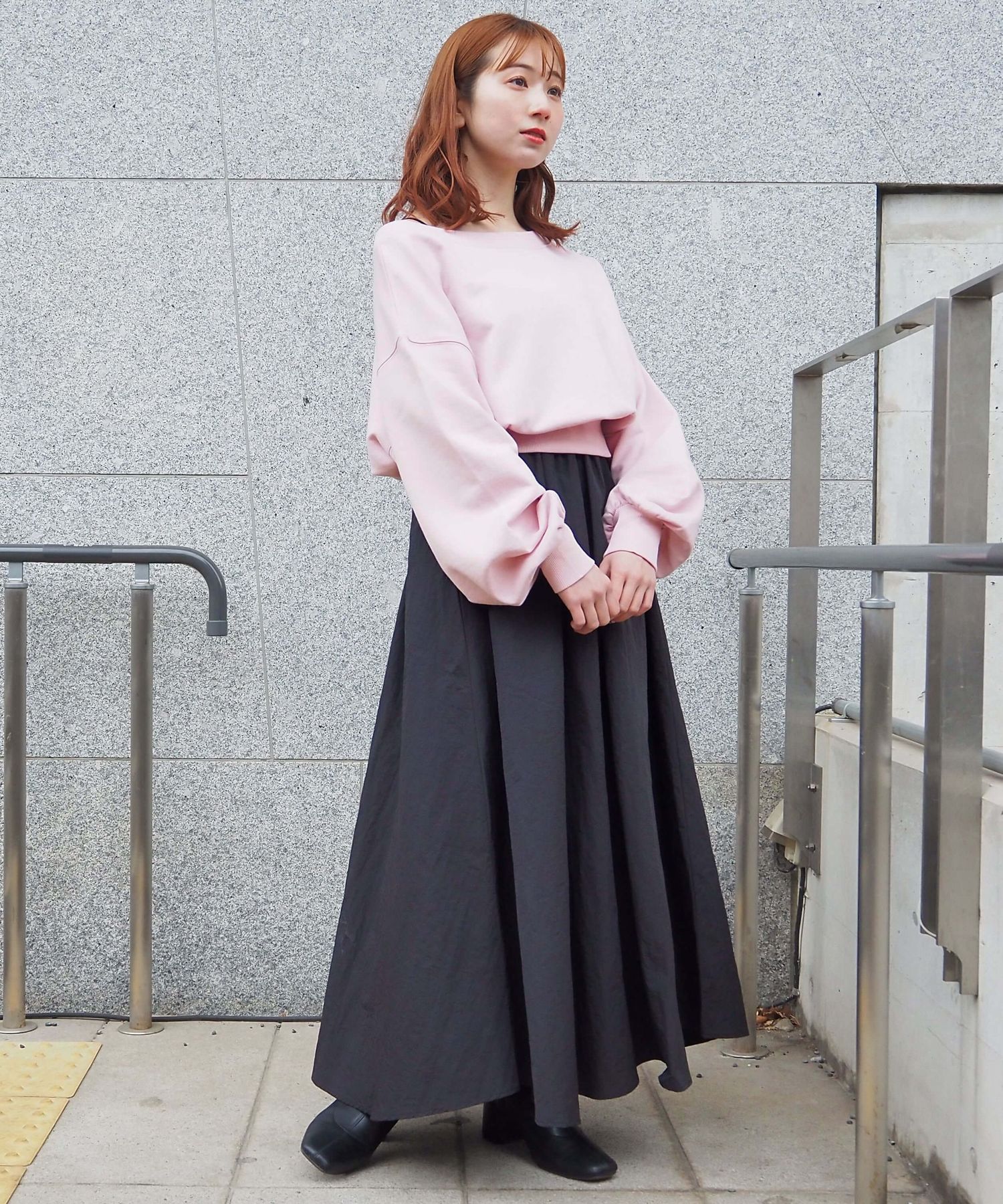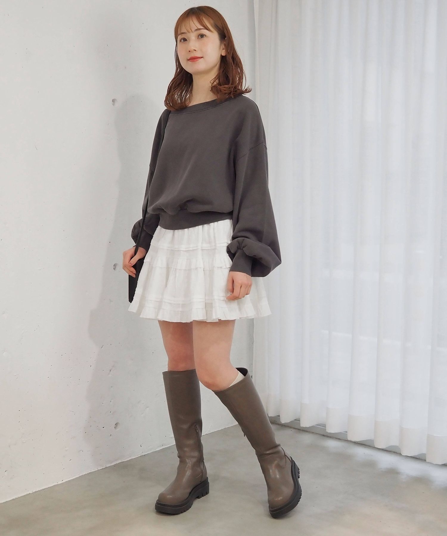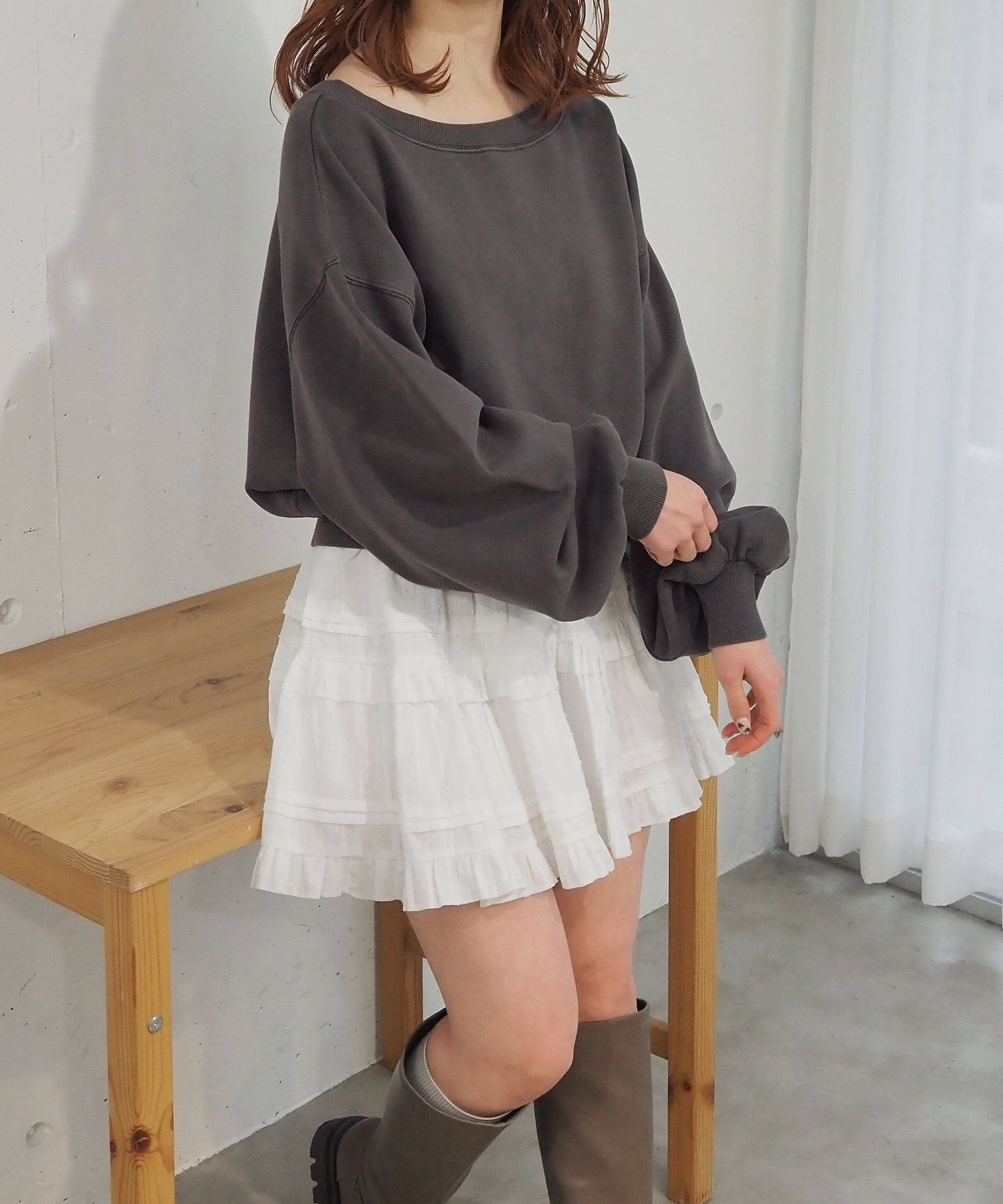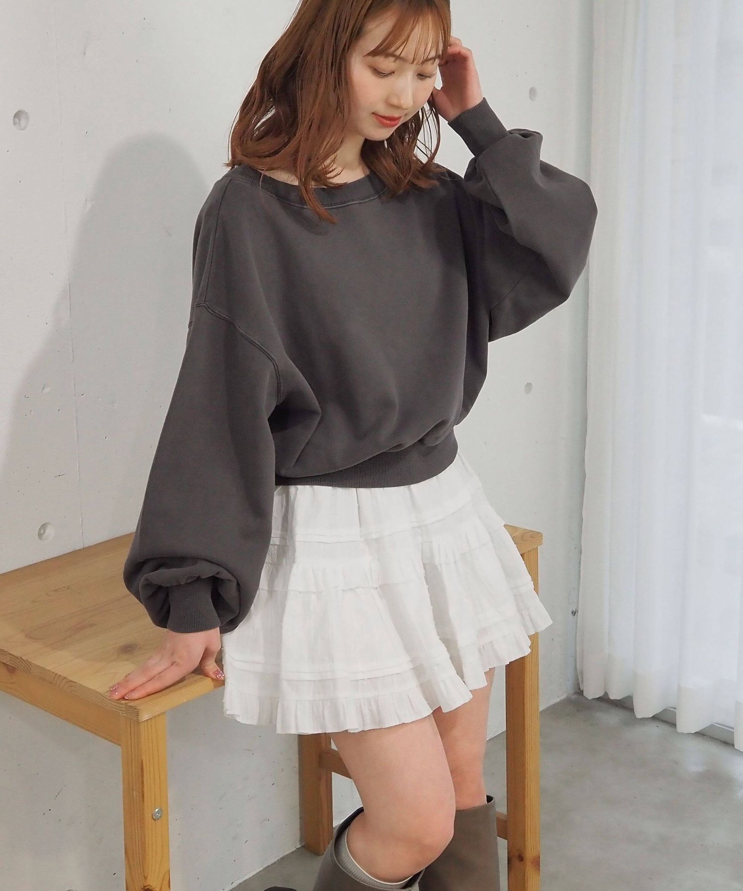 ・プルオーバーは程よいボリューム感と合わせやすいショート丈なので、ワイドパンツやティアードスカートなどボリュームのあるボトムと好相性です。