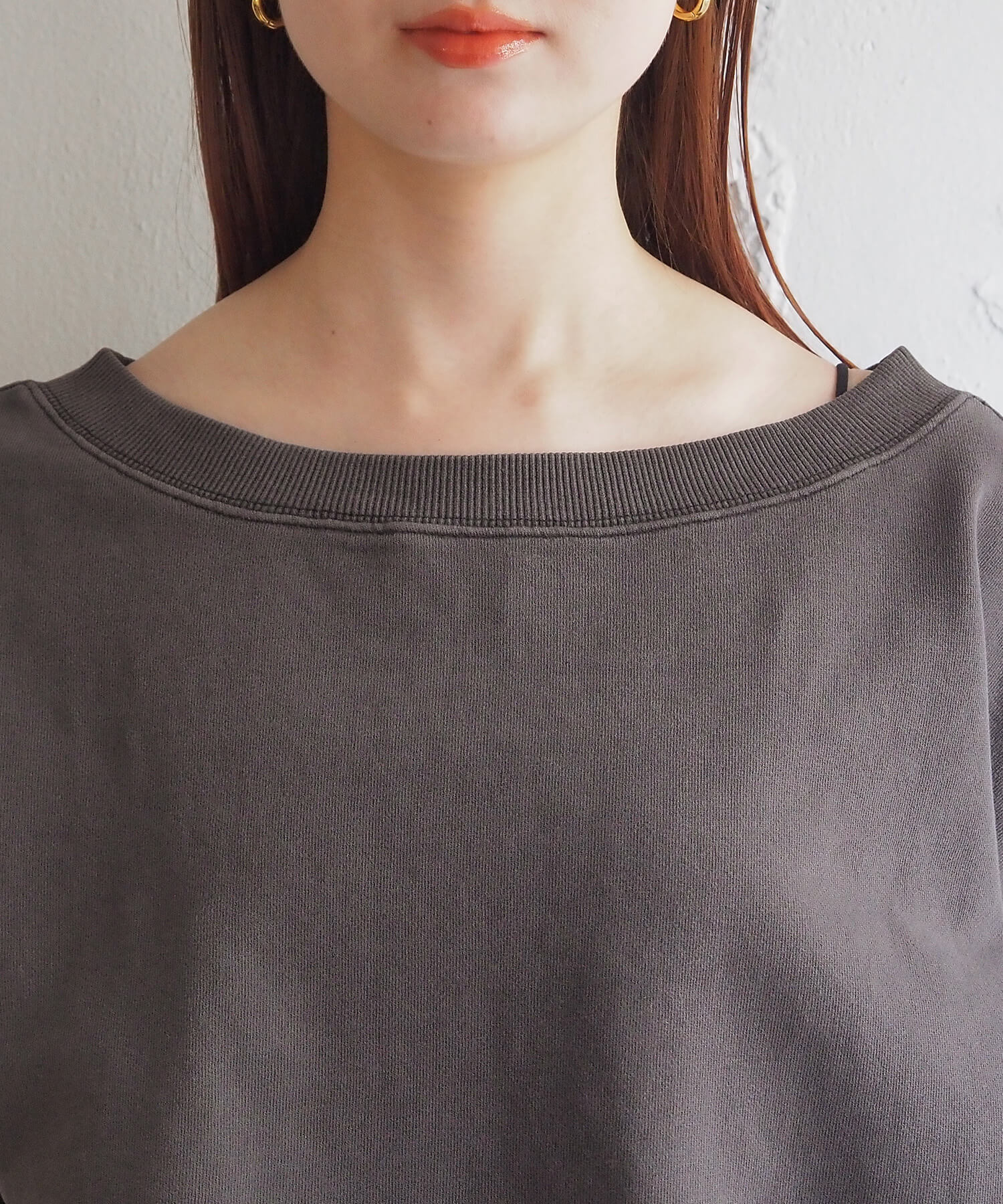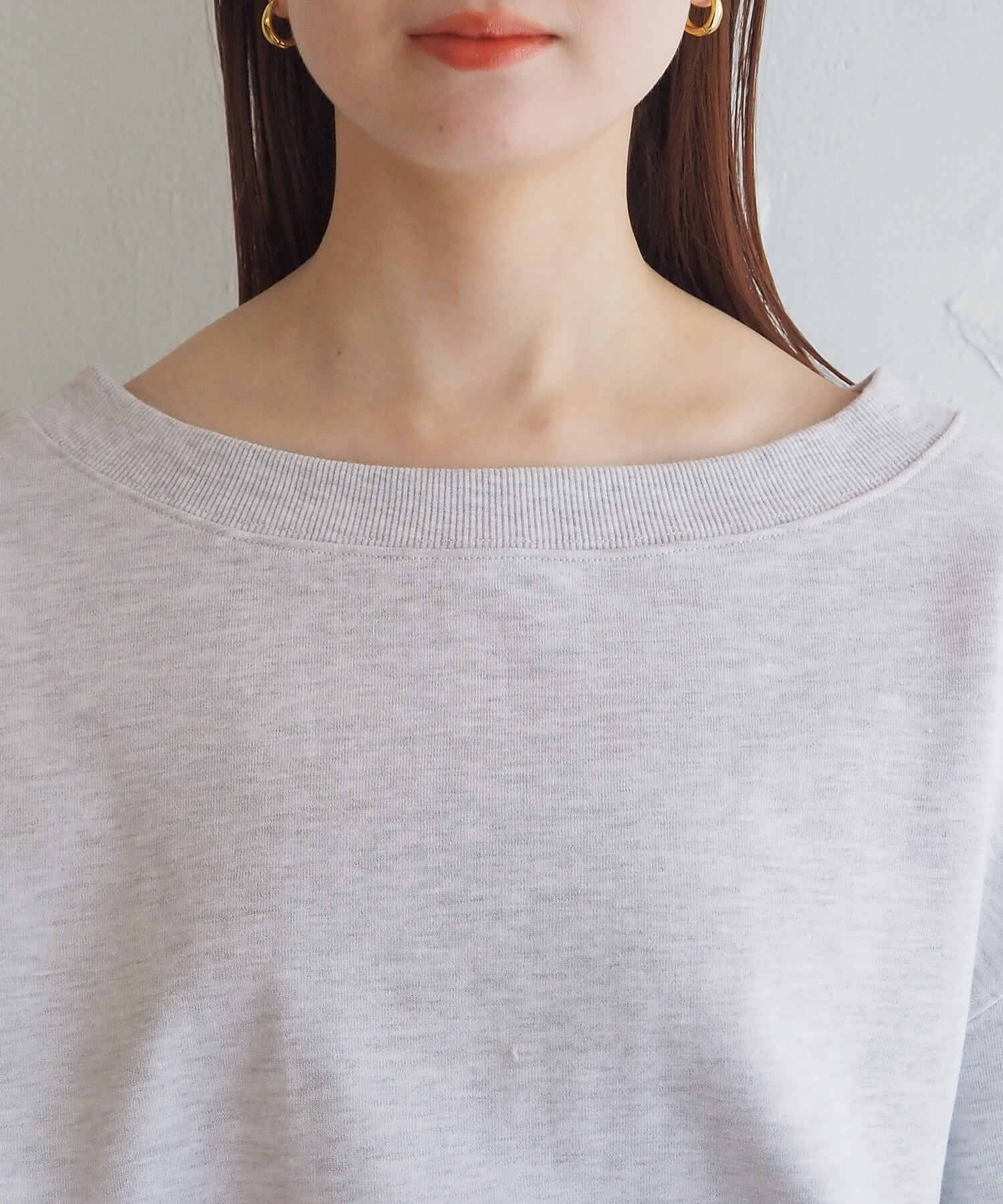 ・プルオーバーは肩を落とさずに着用しても、ゆったりとした襟ぐりが顔周りをすっきりと見せてくれます。