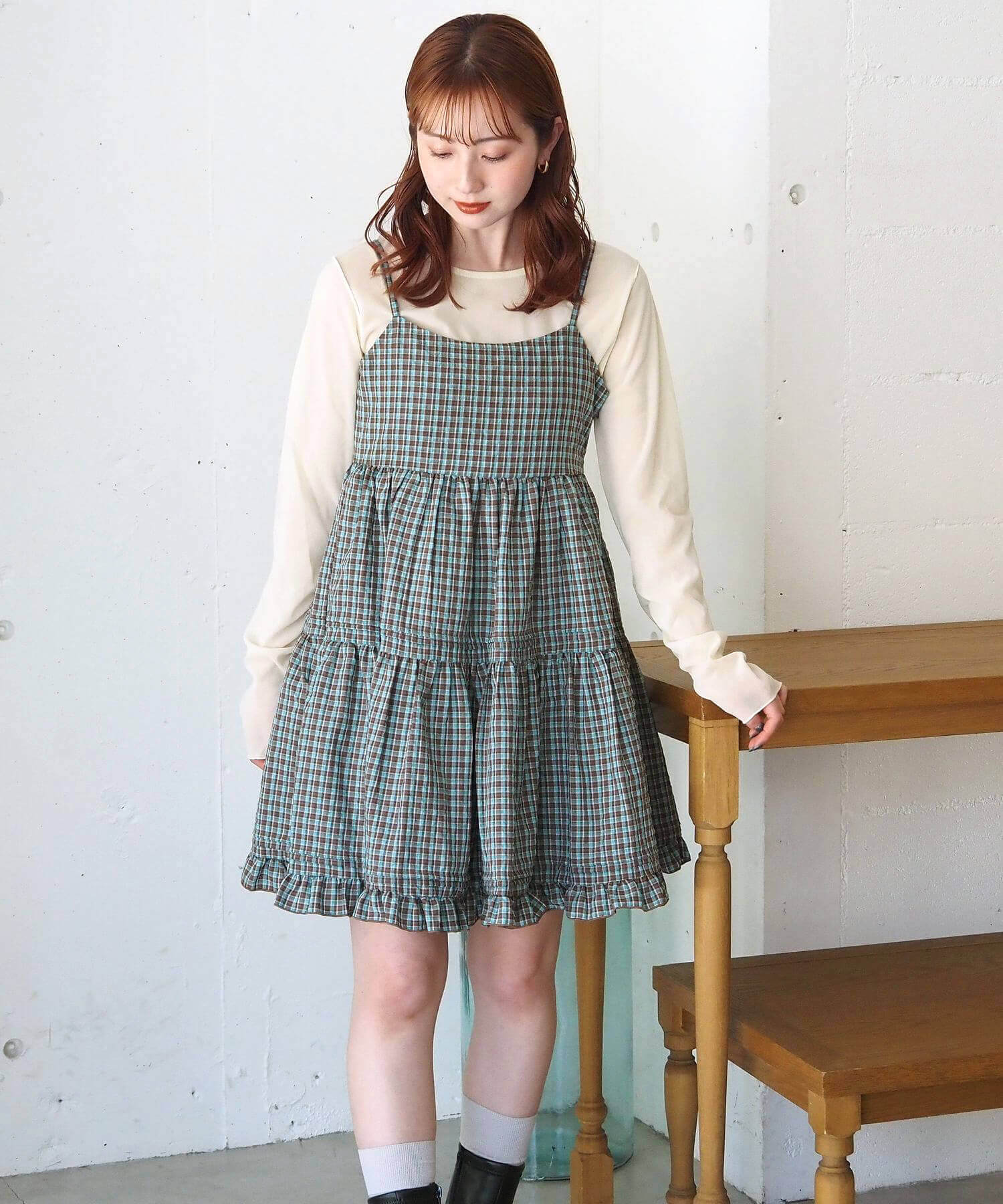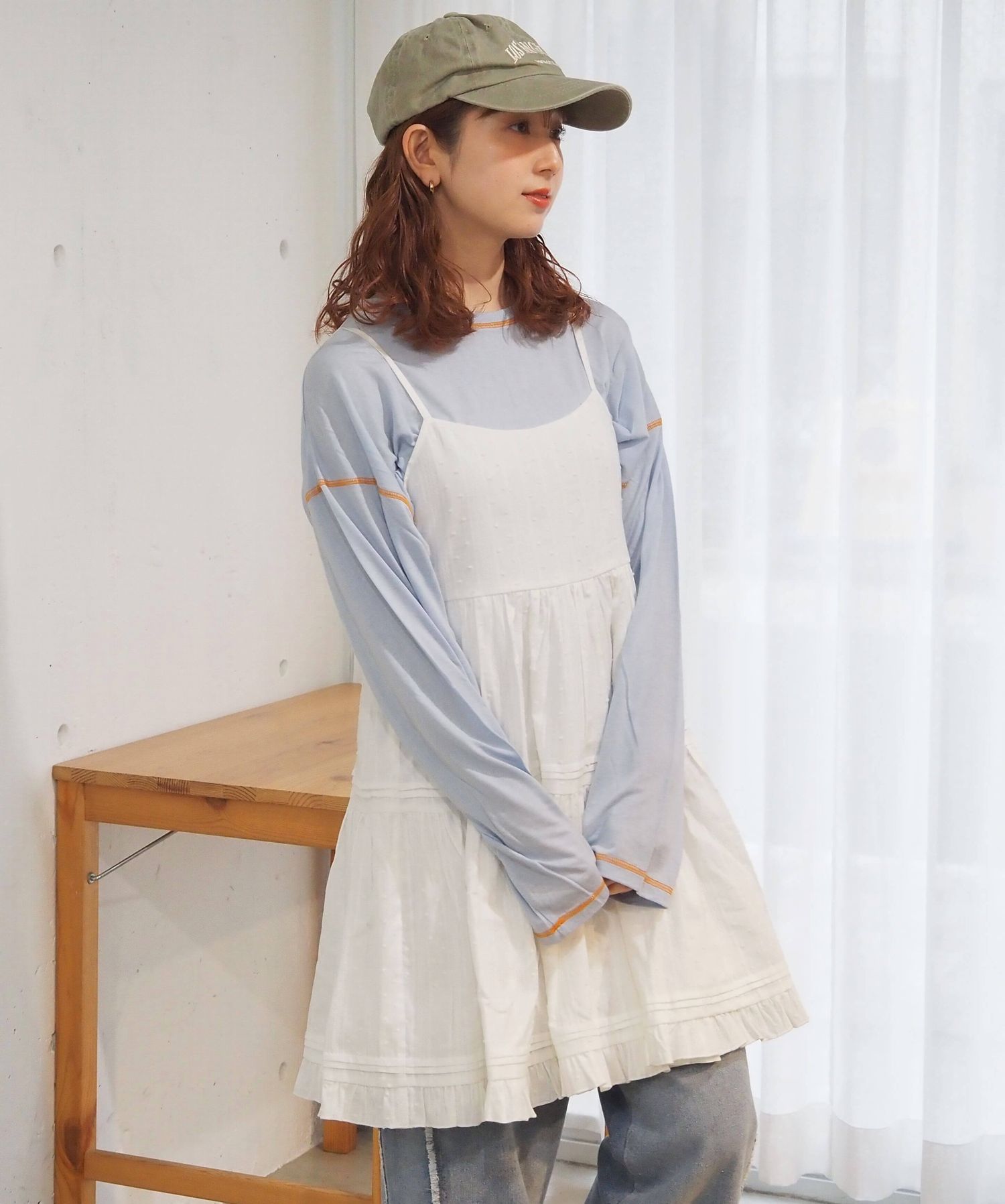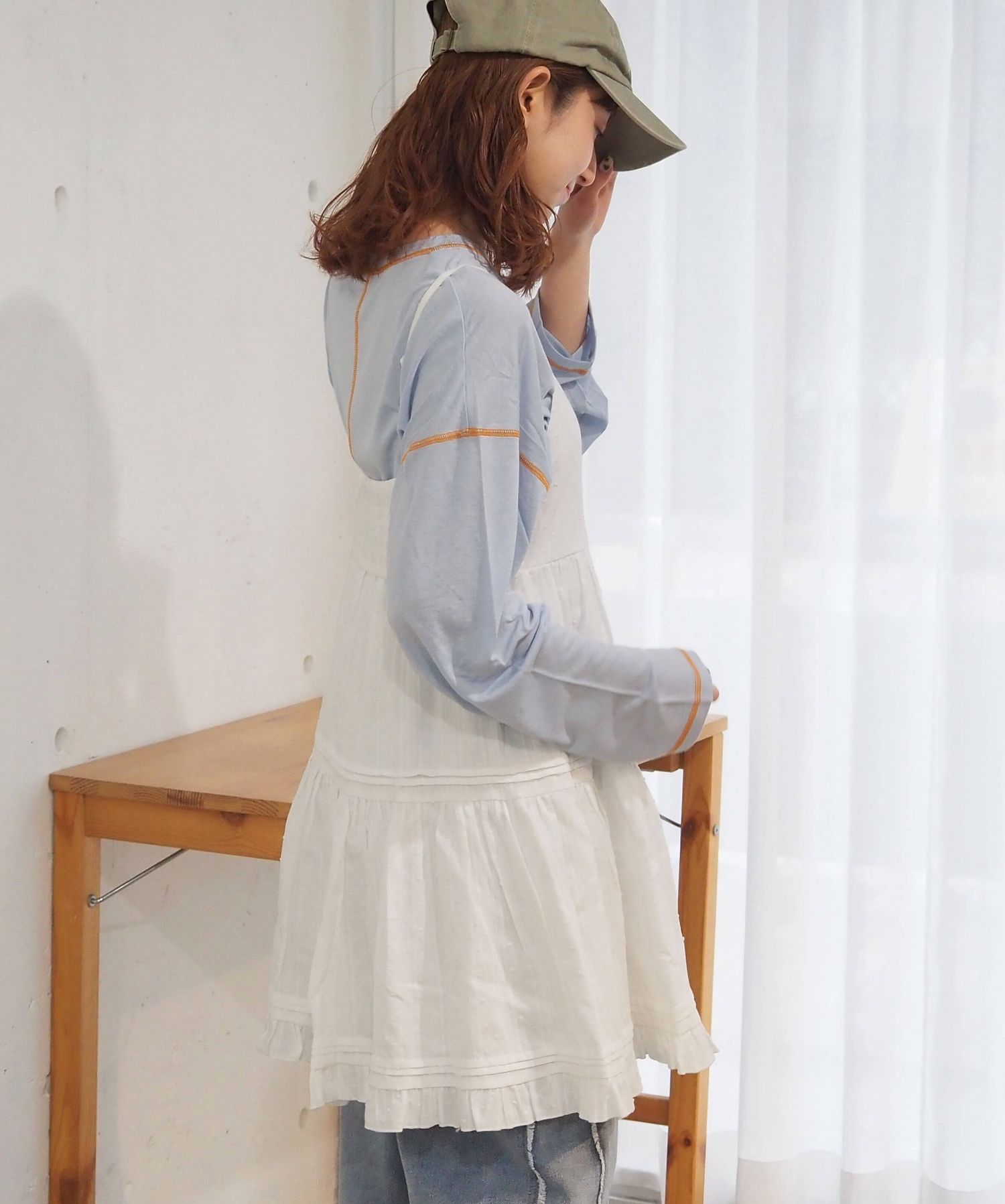 ・スウェットやニットプルオーバーの下に着て、スカートとしての着こなしもおすすめです。
