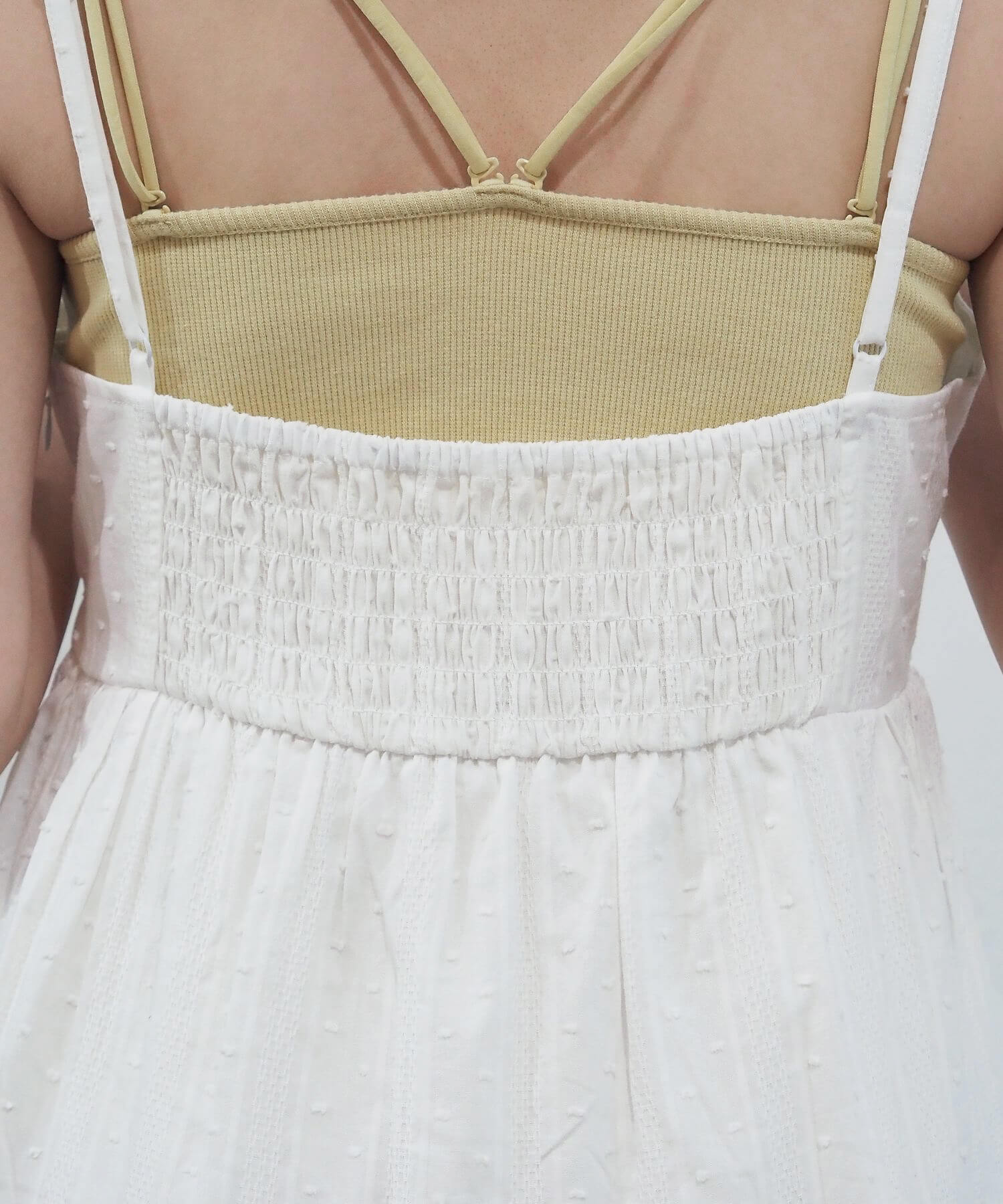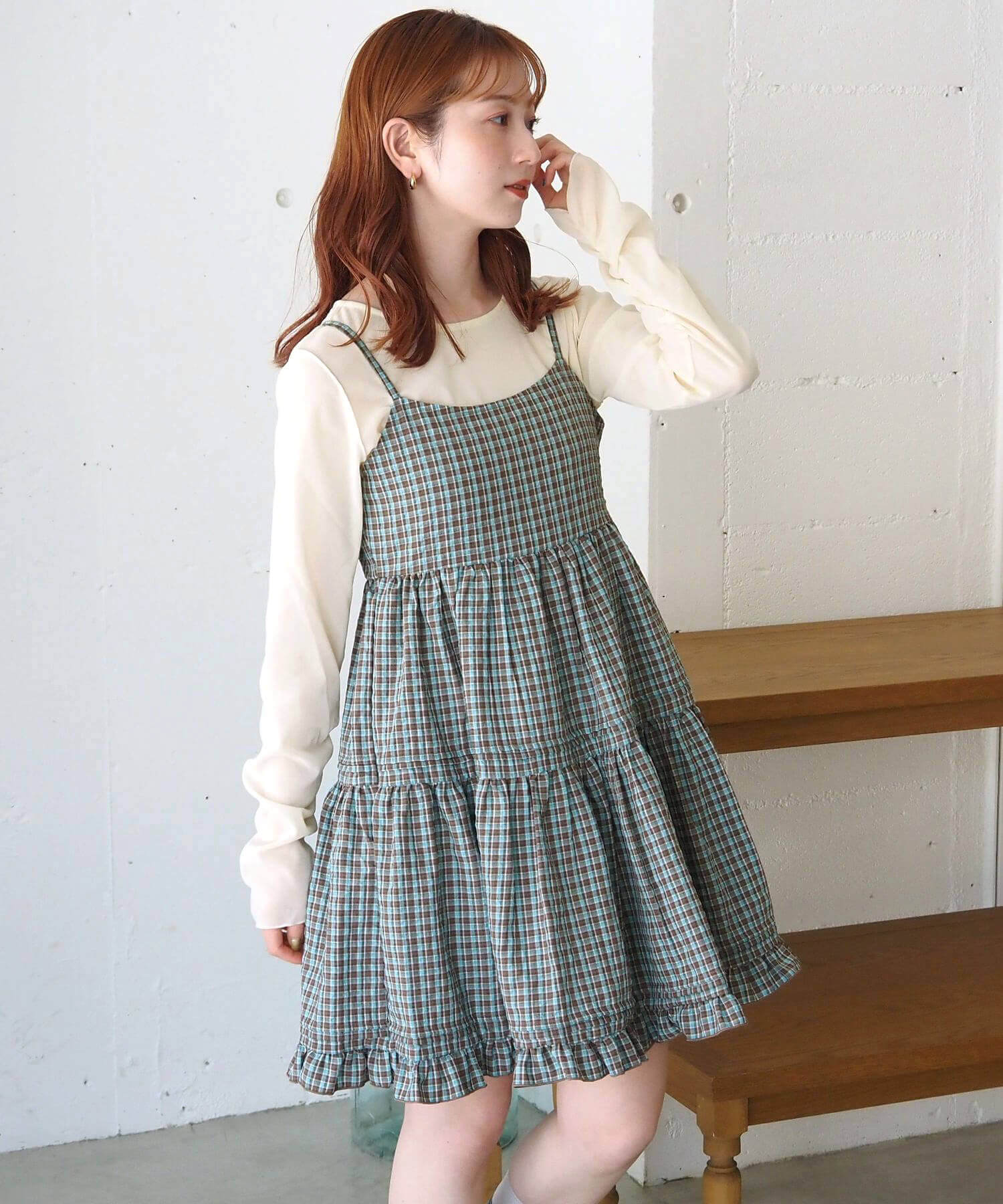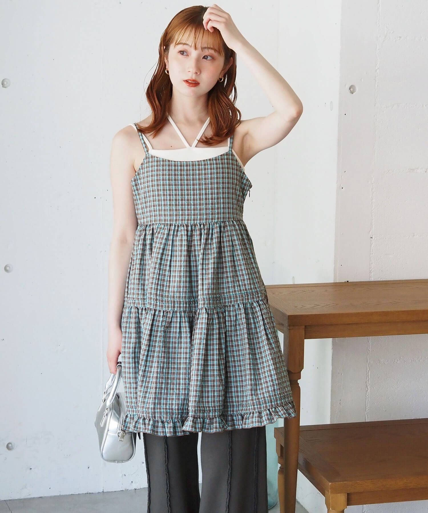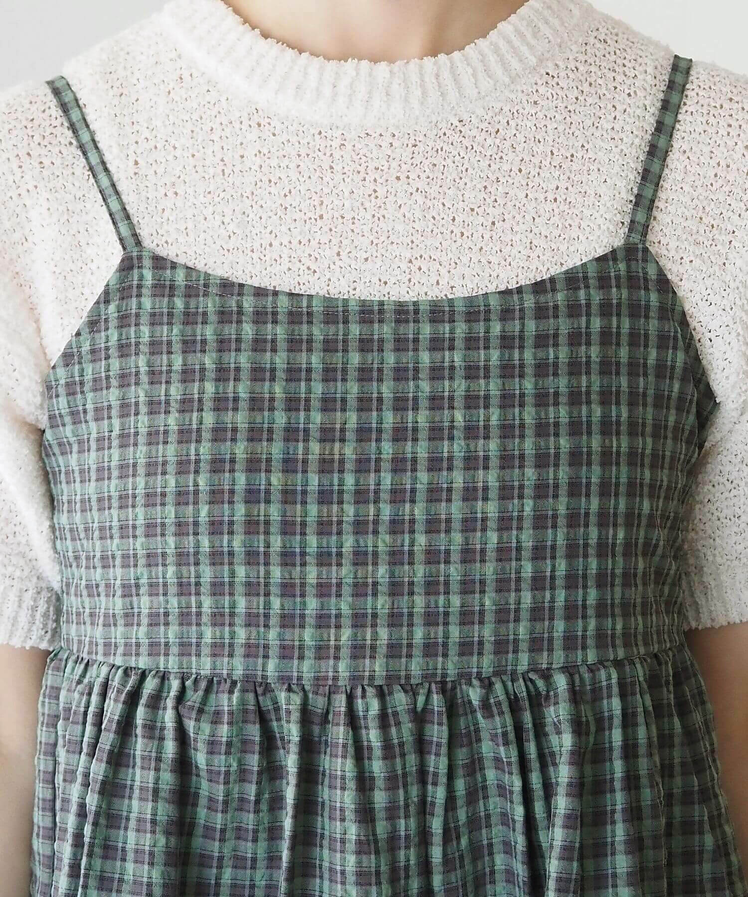・タック×フリルが女性らしいミニ丈のキャミソールワンピース。