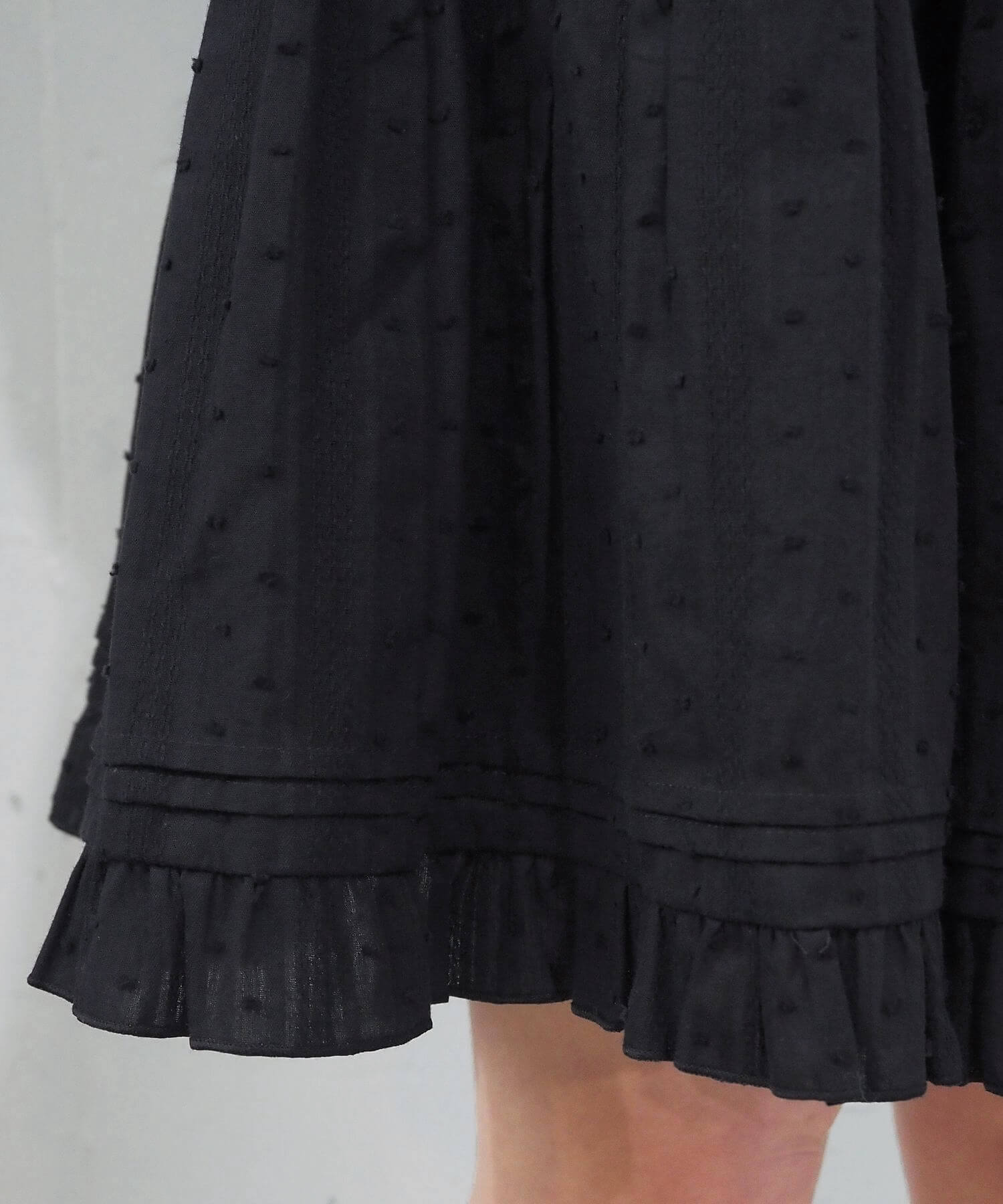 ・表面感が魅力のドビードット生地は春夏らしいコットン100%素材なので、ナチュラルな風合いと爽やかな雰囲気が楽しめます。