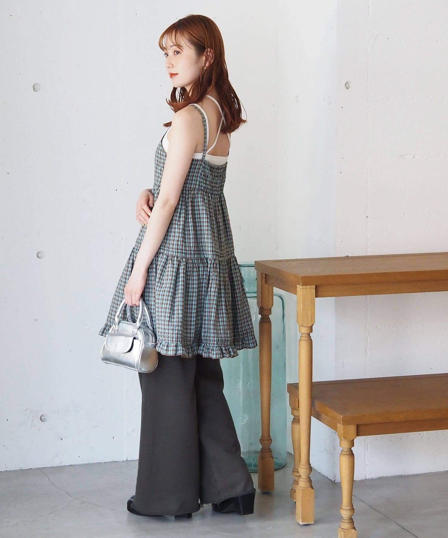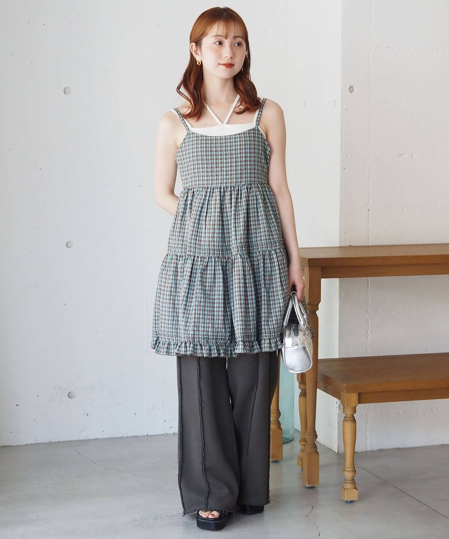 ・ワイドパンツやフレアパンツに合わせてチュニックとして。こなれ感たっぷりのレイヤードコーデが完成します。