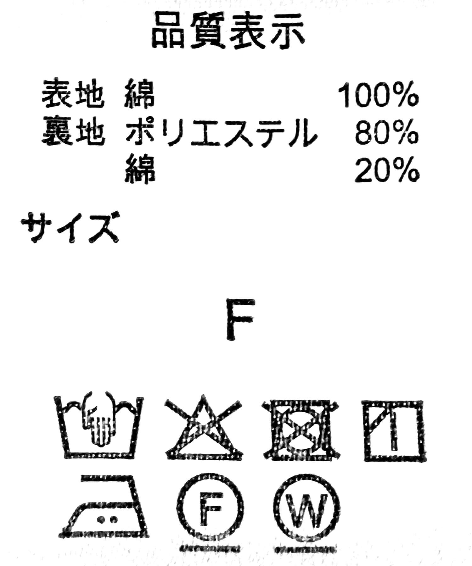 表地: コットン100%, 裏地: ポリエステル80%, コットン20%