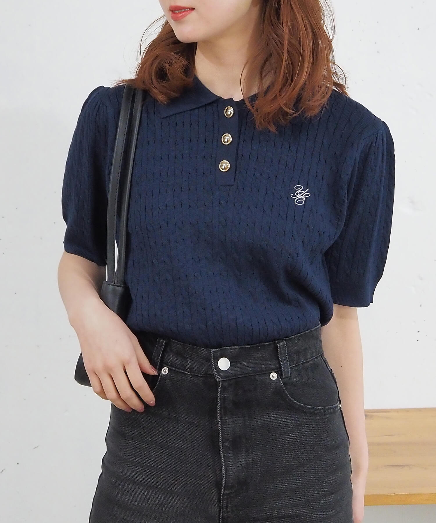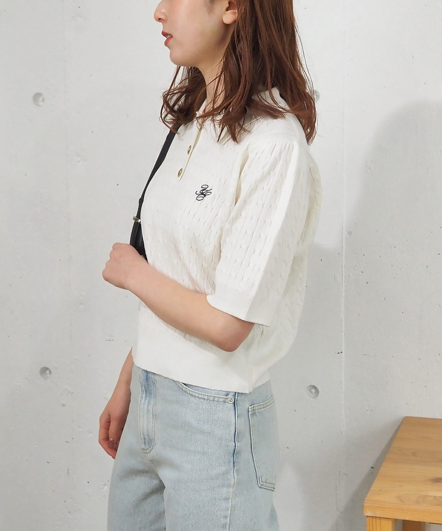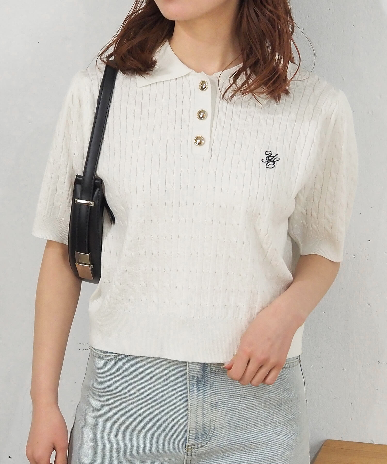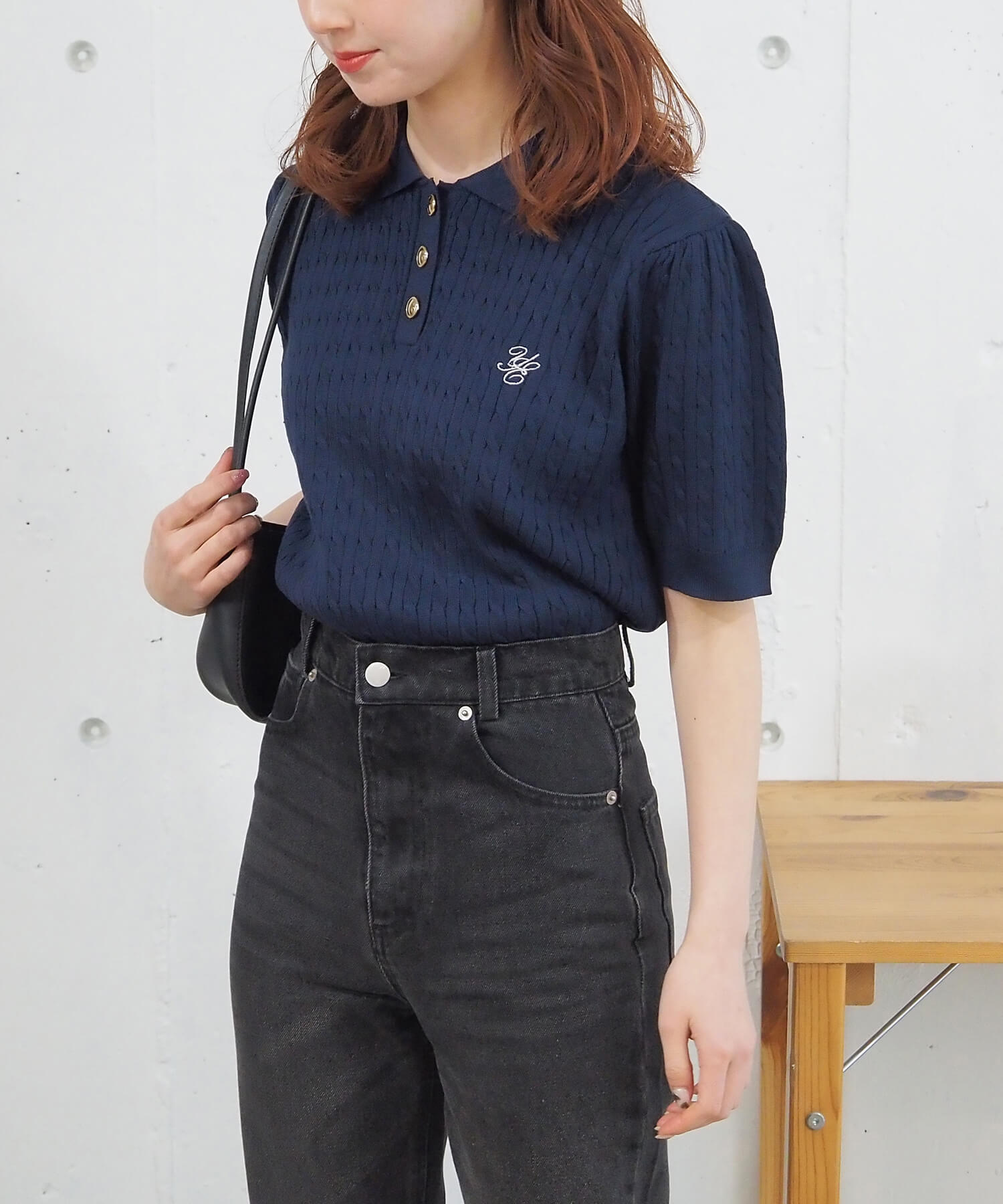・上品なケーブルニットをポロテイストにアップデートさせた、トレンド感のあるアイテム。