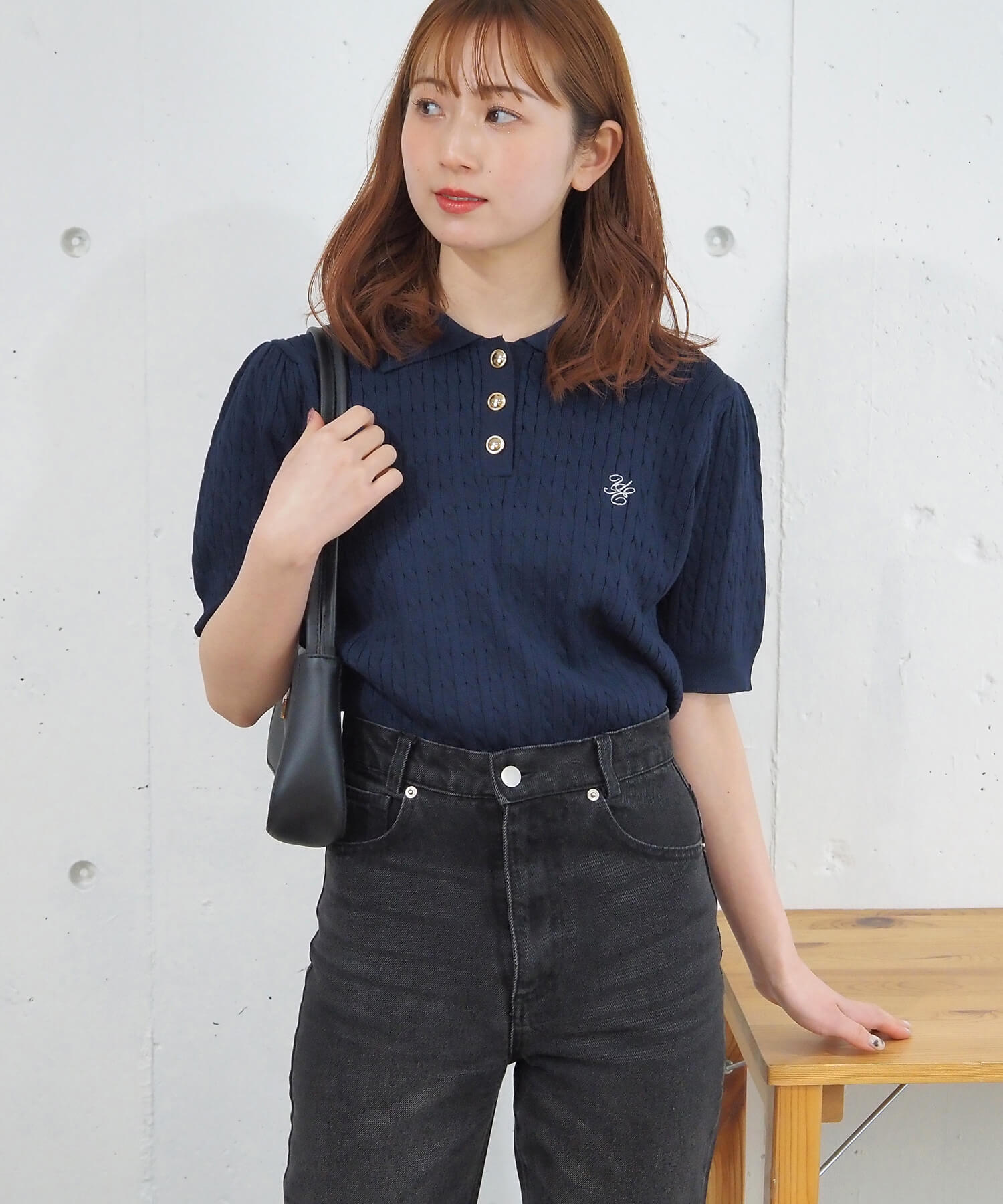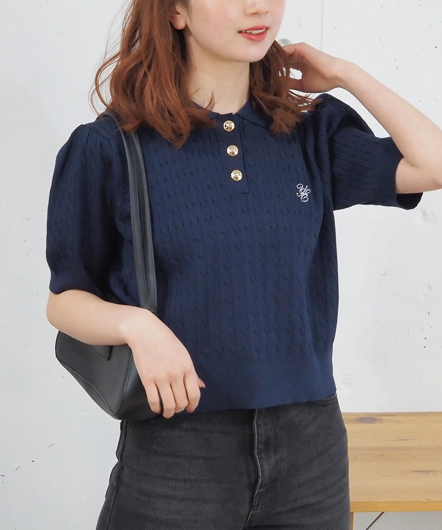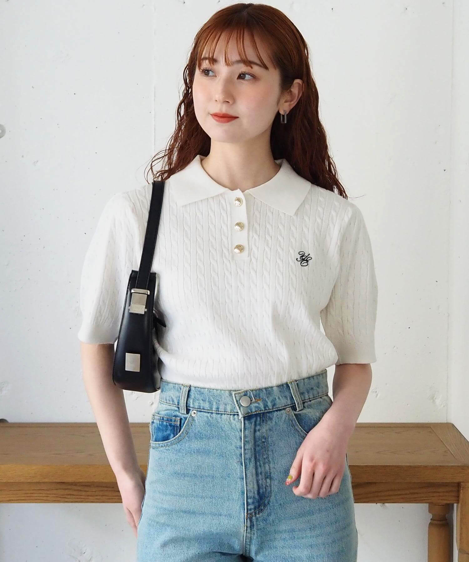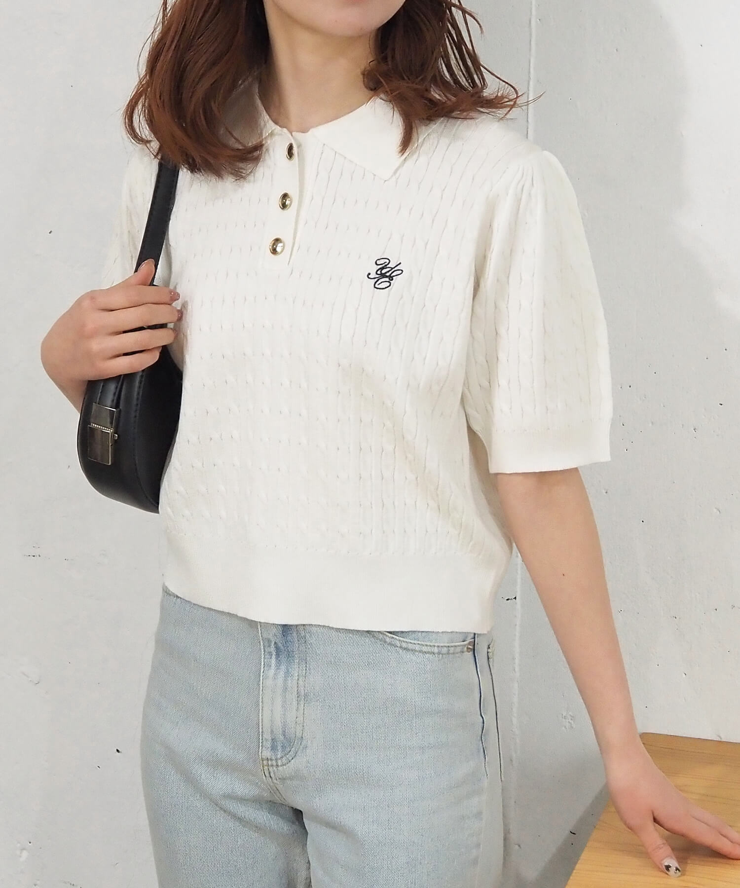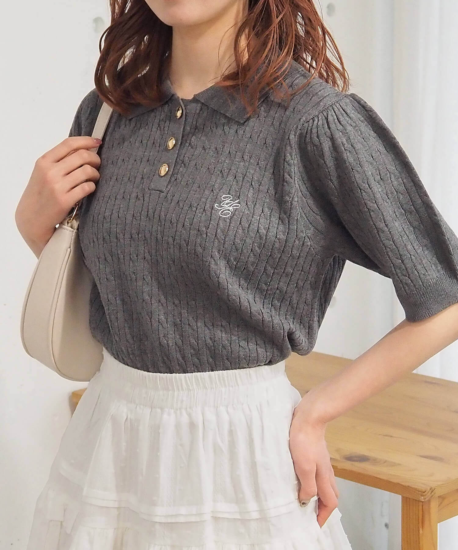・上品なケーブルニットをポロテイストにアップデートさせた、トレンド感のあるアイテム。
