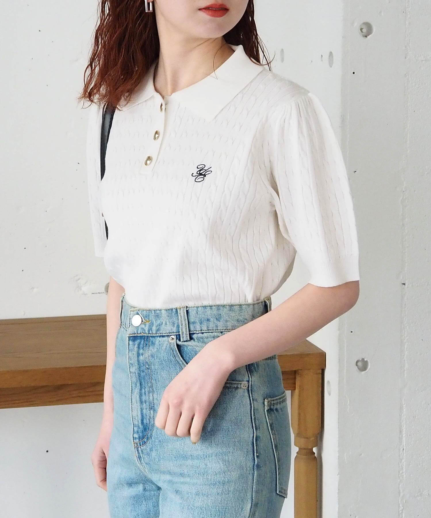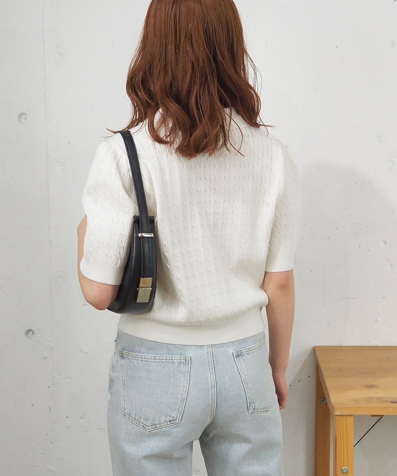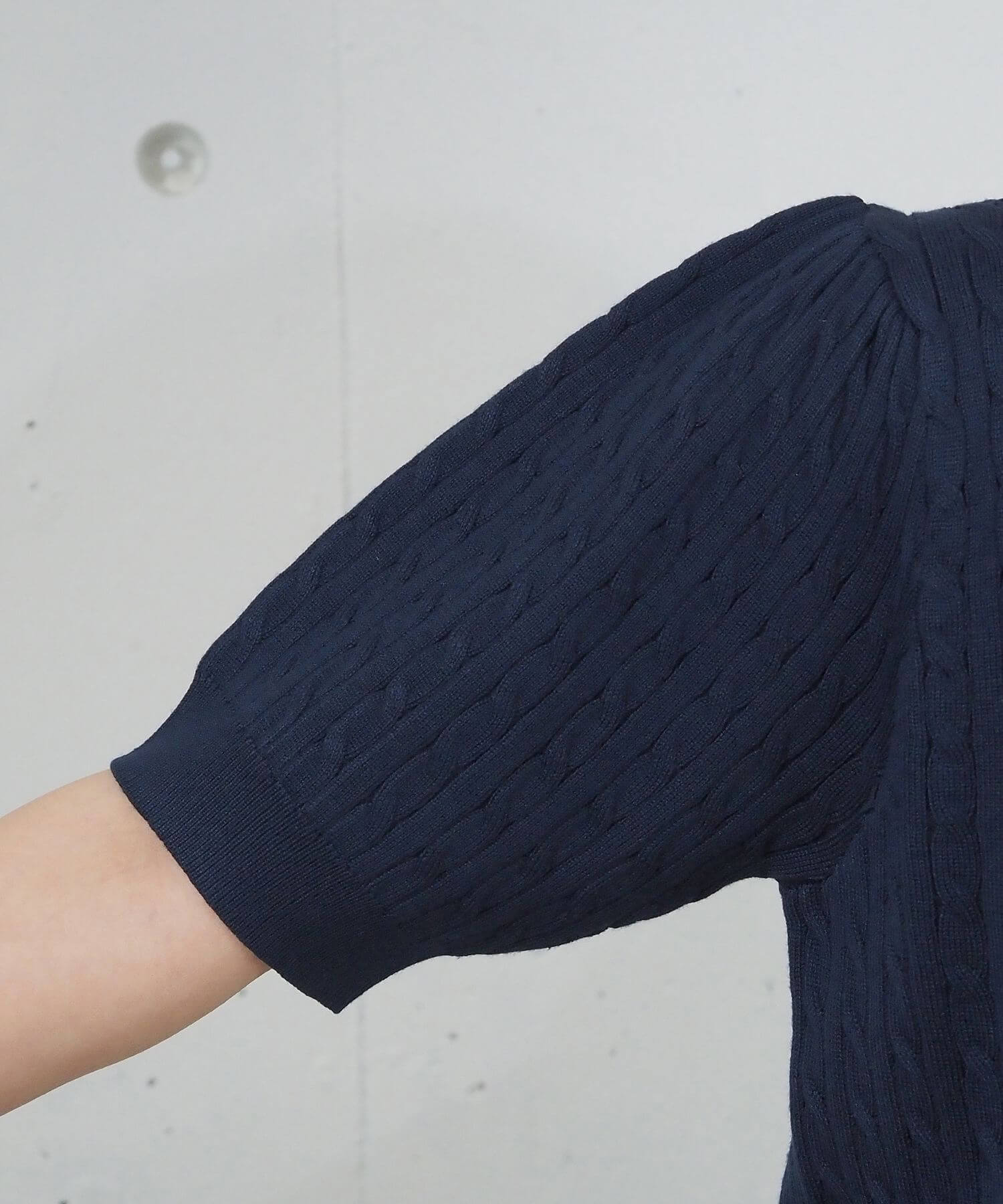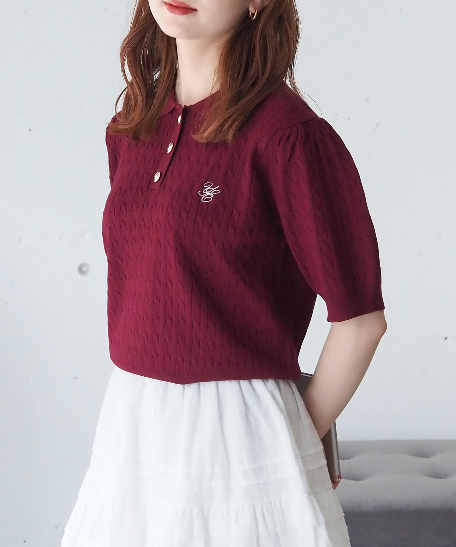 ・上品なケーブルニットをポロテイストにアップデートさせた、トレンド感のあるアイテム。