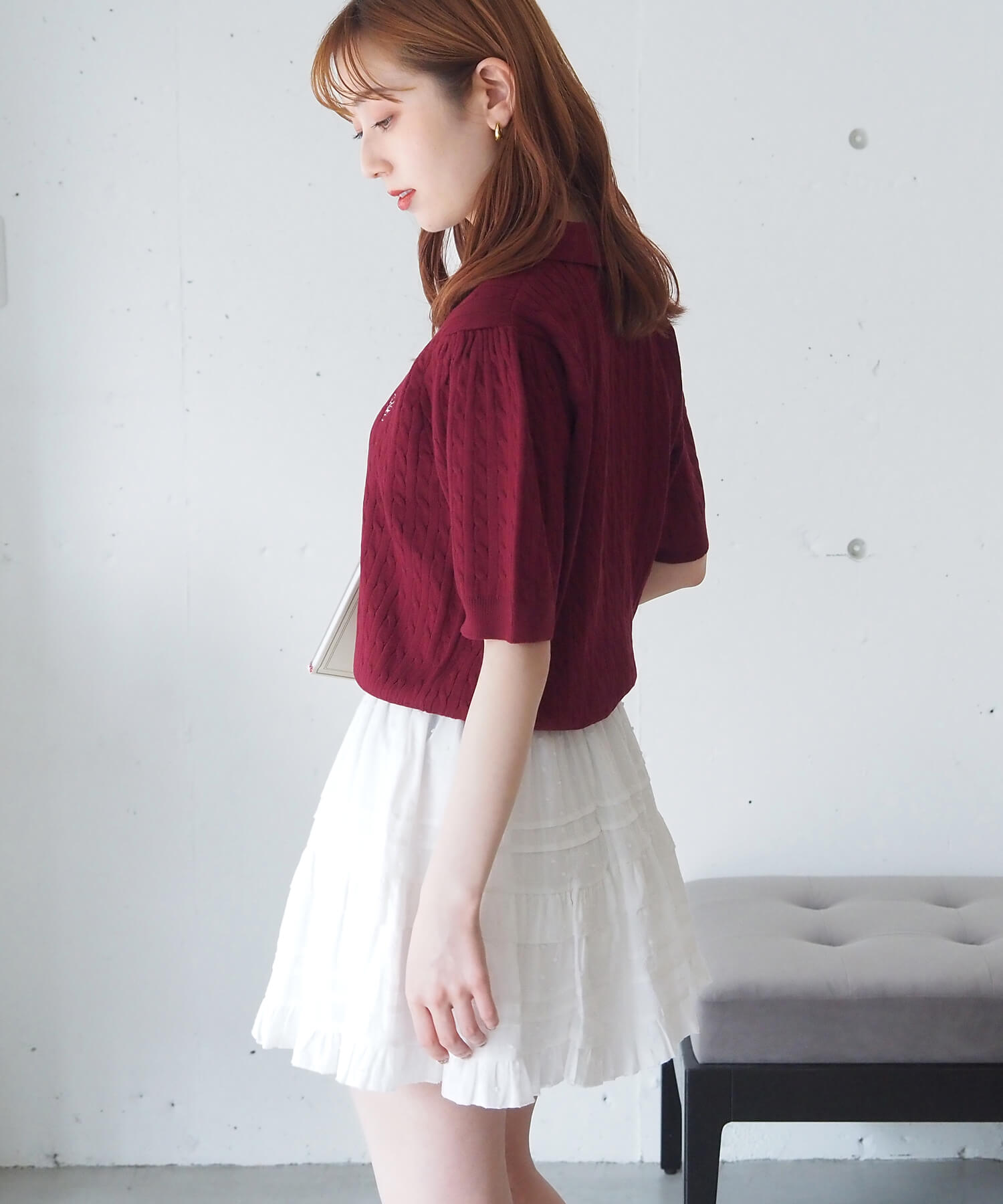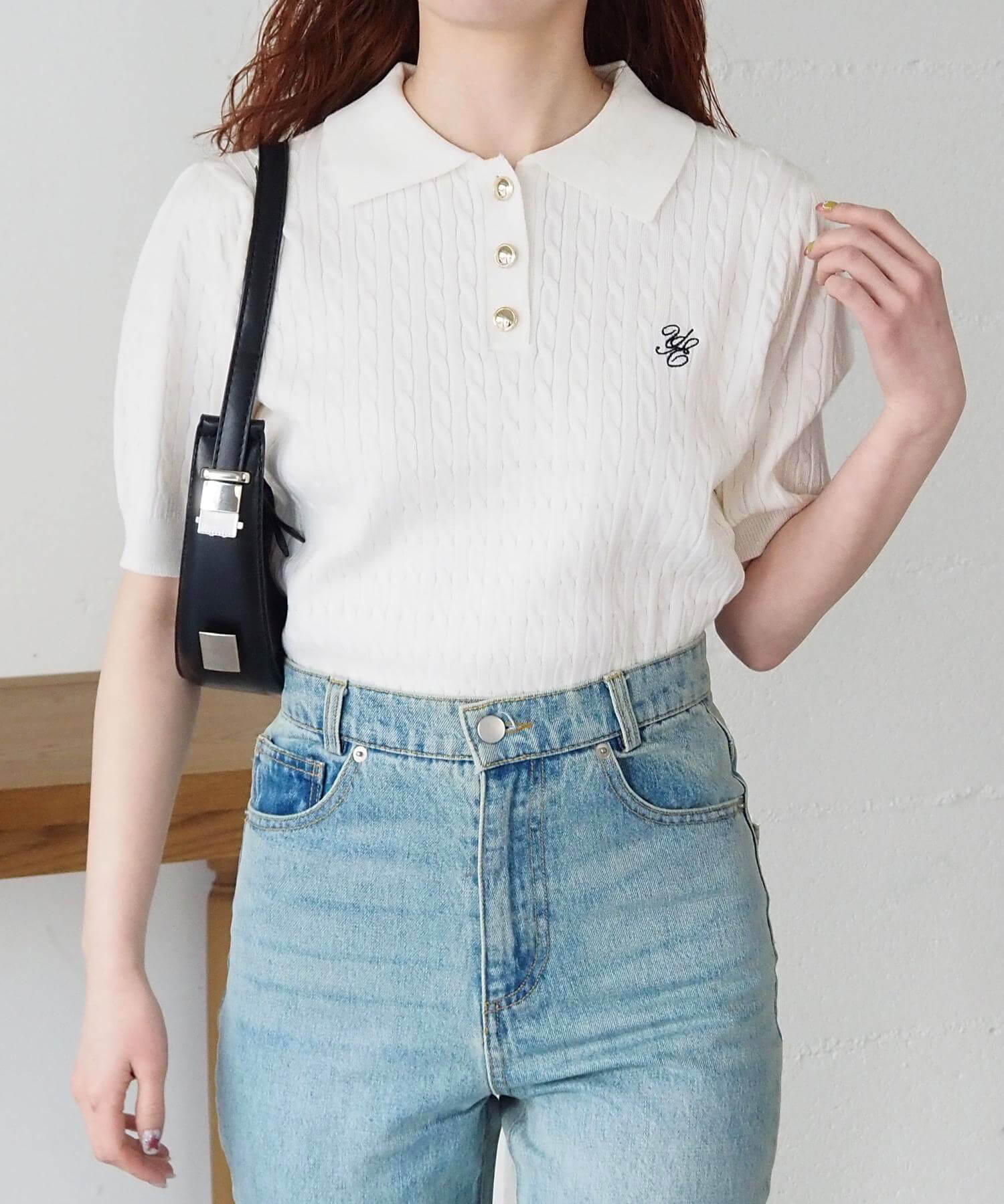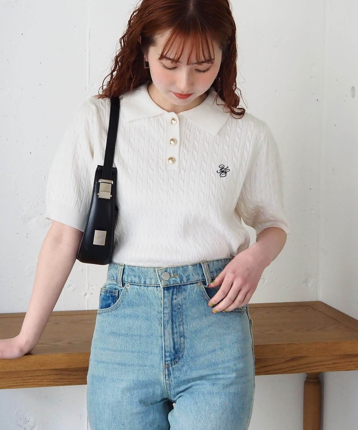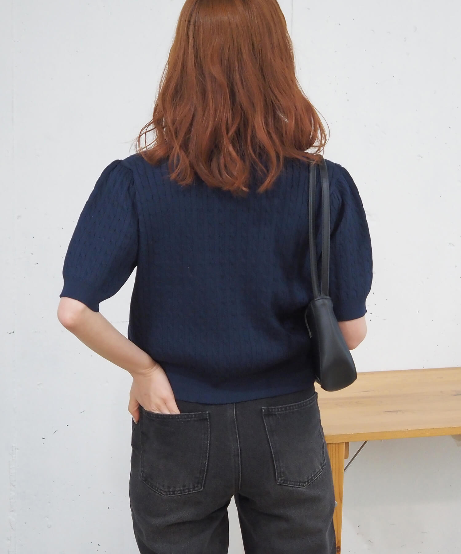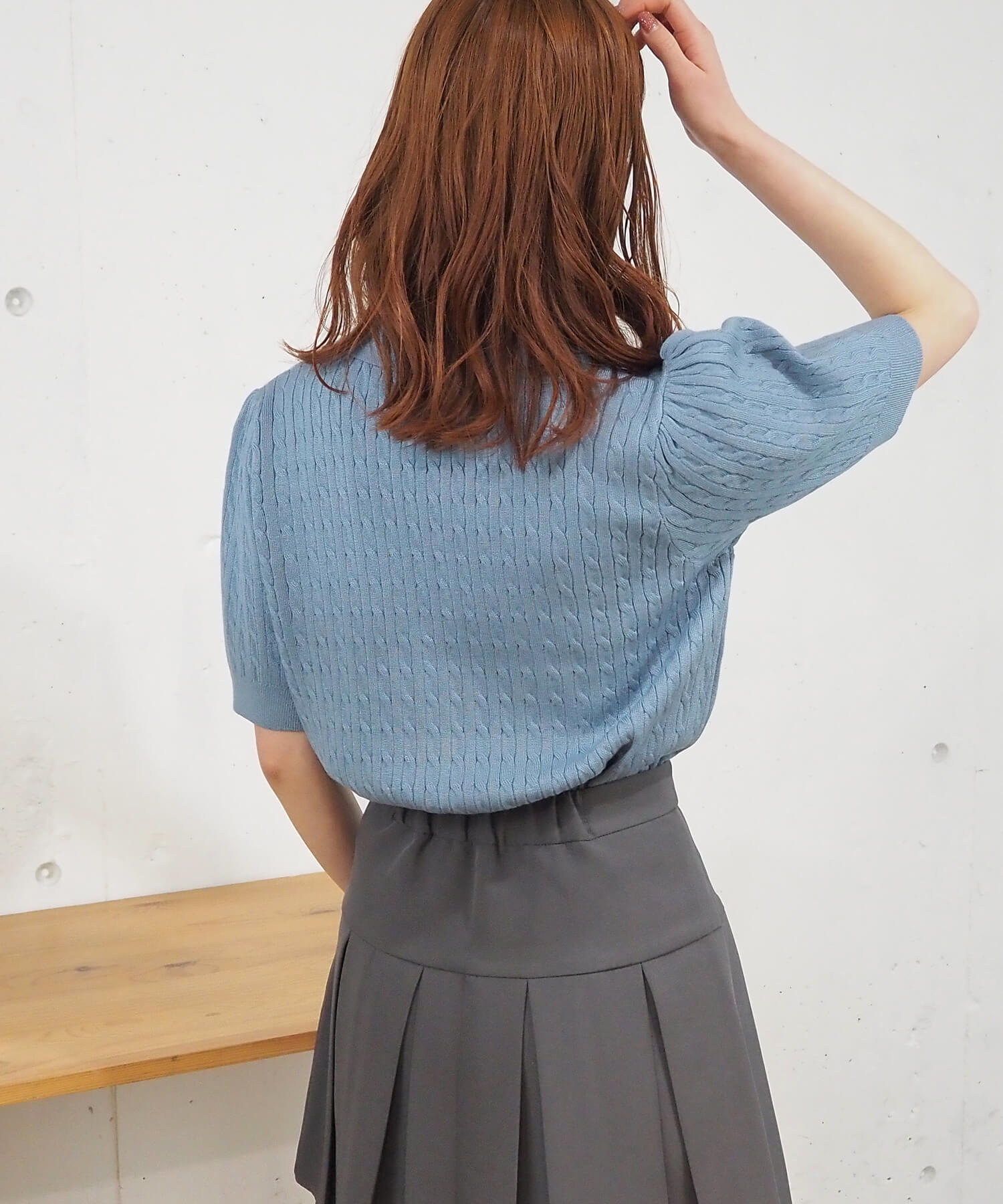 ・上品なケーブルニットをポロテイストにアップデートさせた、トレンド感のあるアイテム。