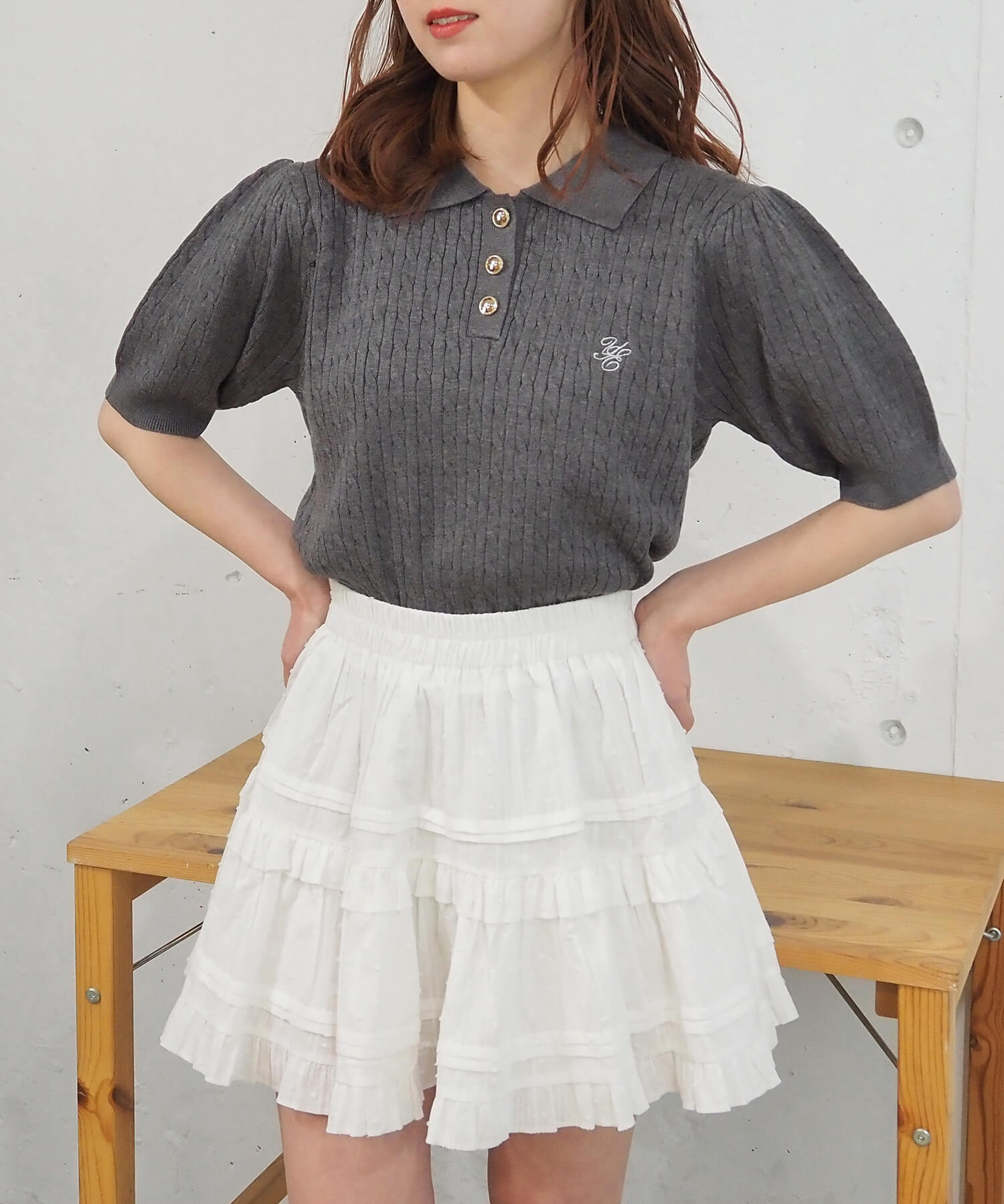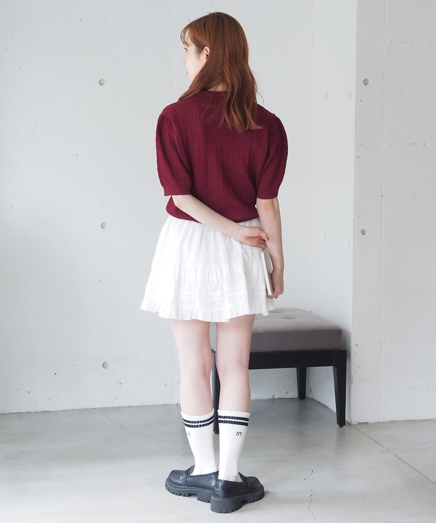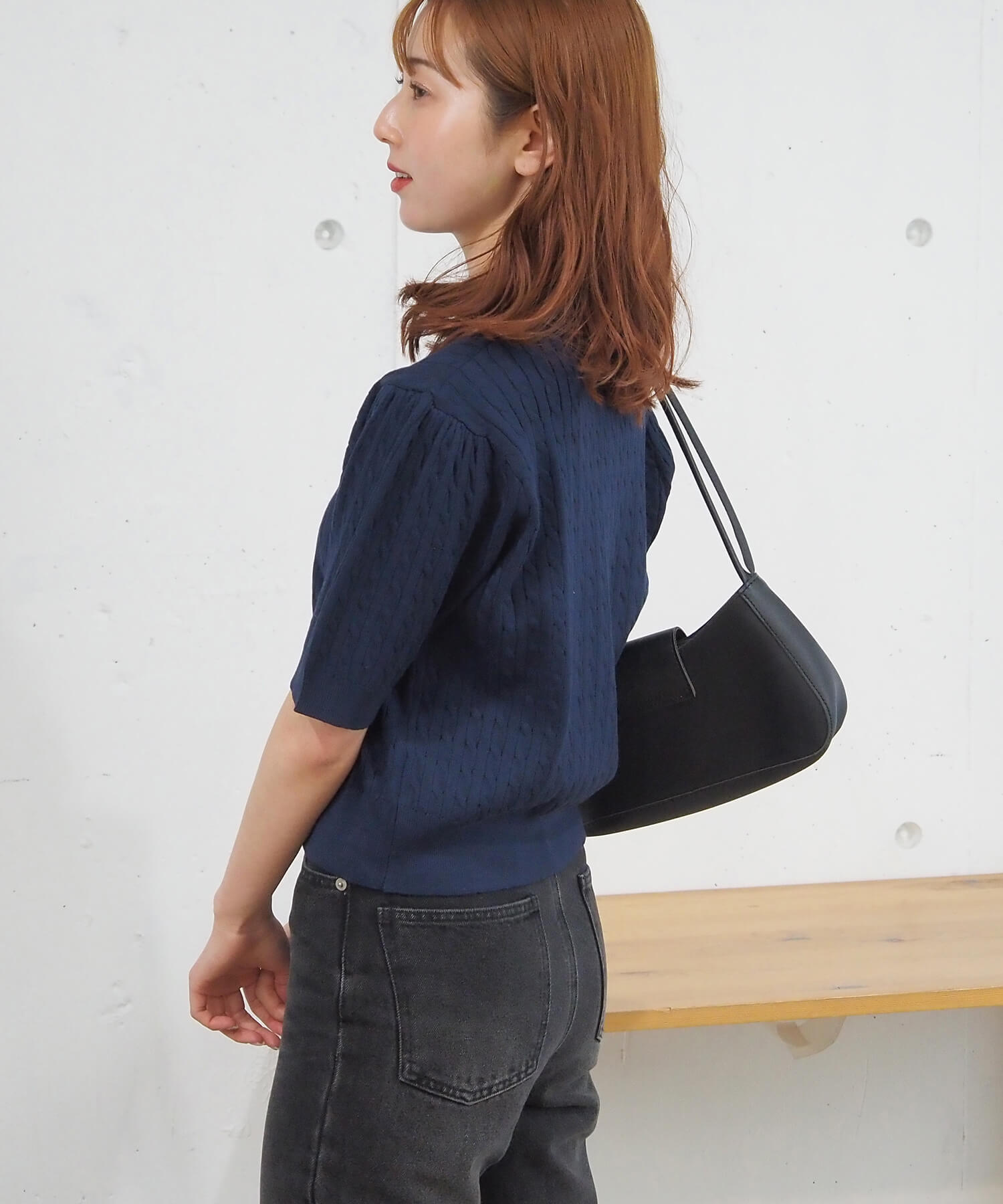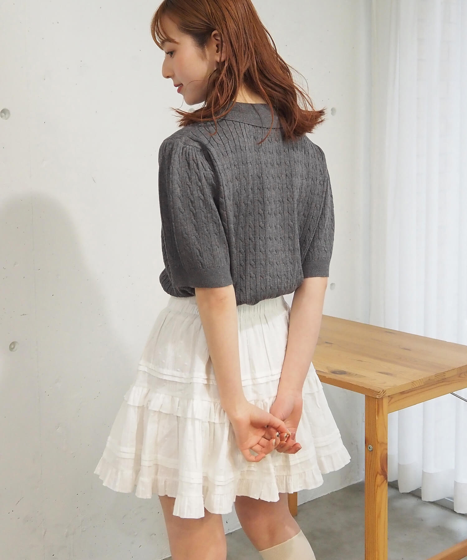 ・上品なケーブルニットをポロテイストにアップデートさせた、トレンド感のあるアイテム。