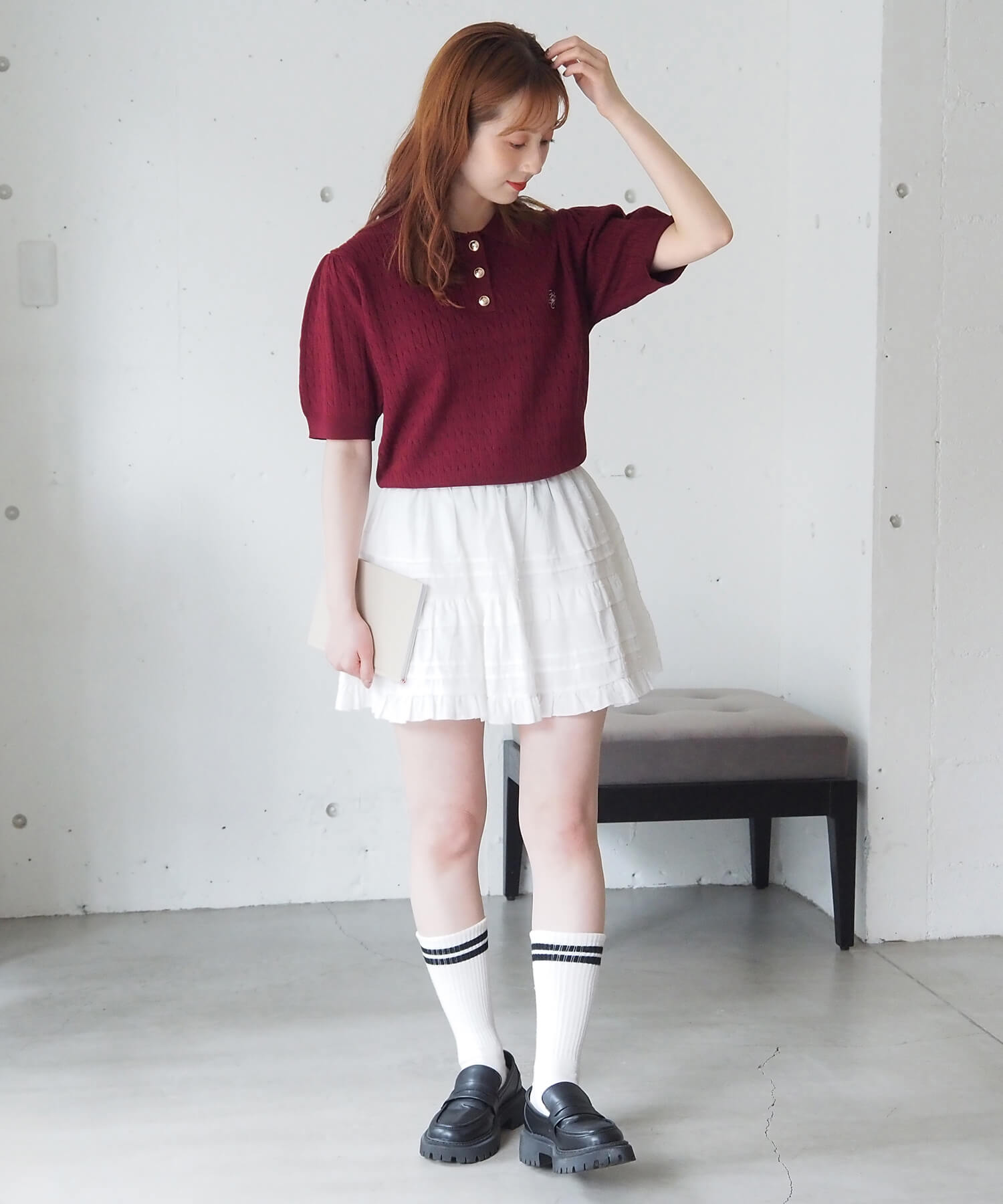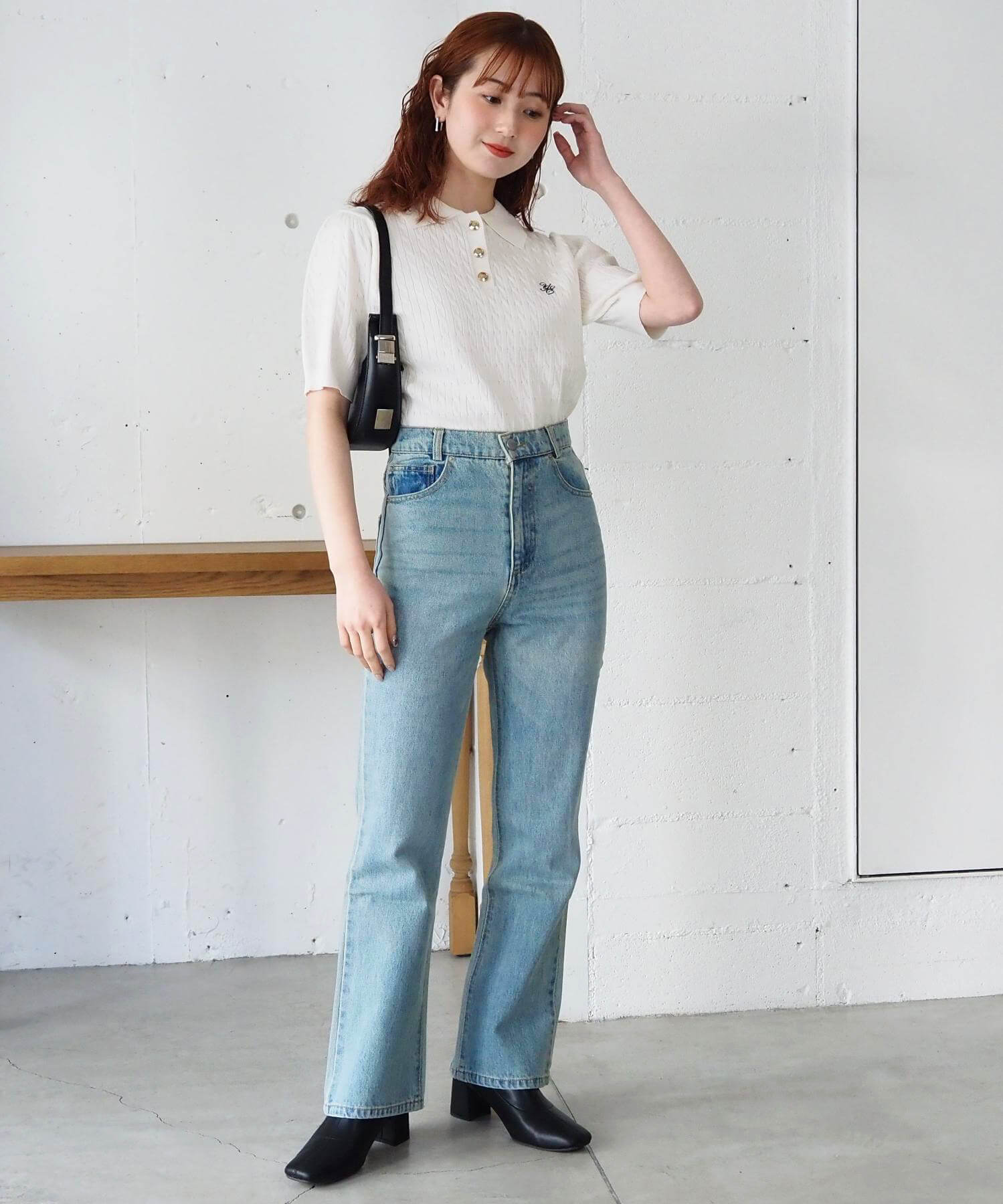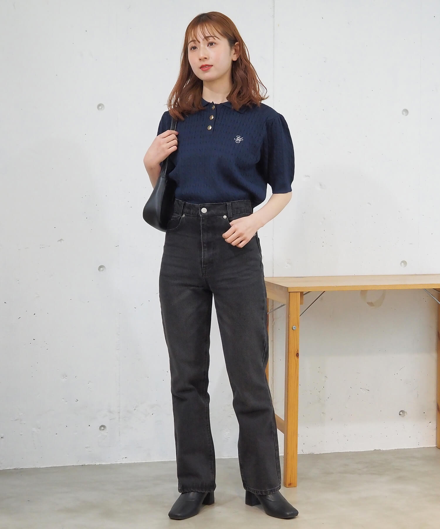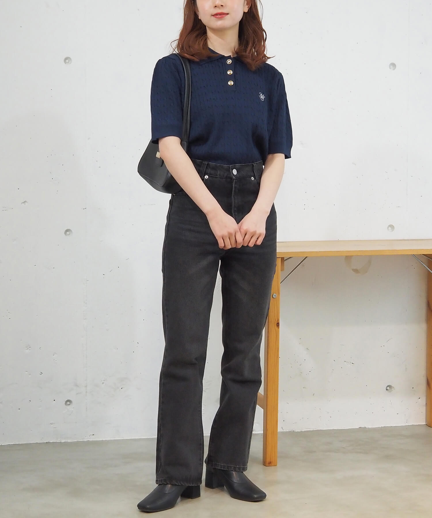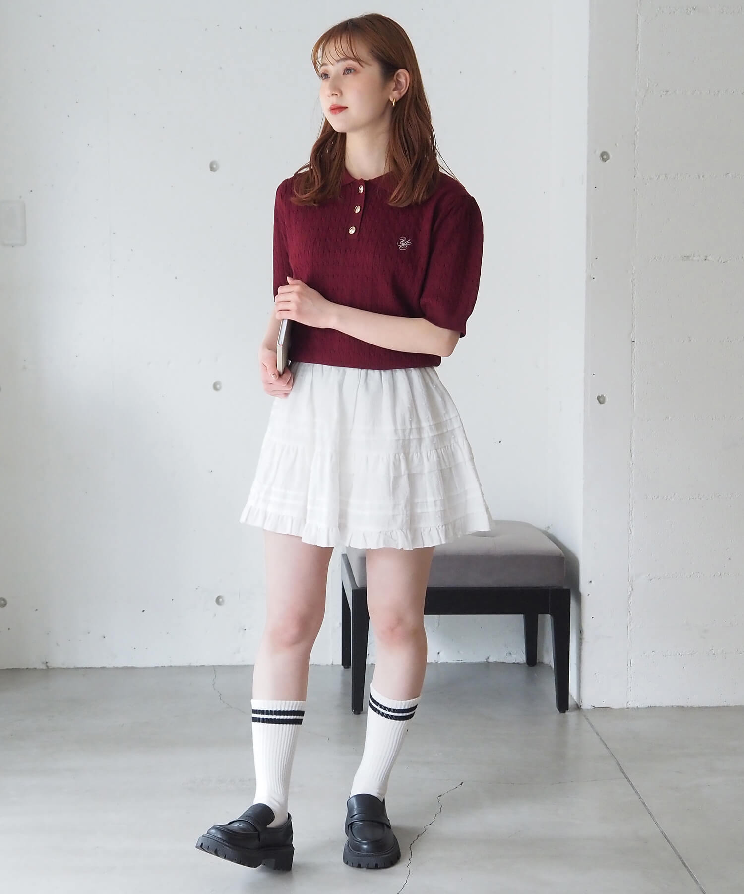 ・ハイウェストボトムにインして着れば、ポロニットならではのきちんと感とスタイルアップが叶います。