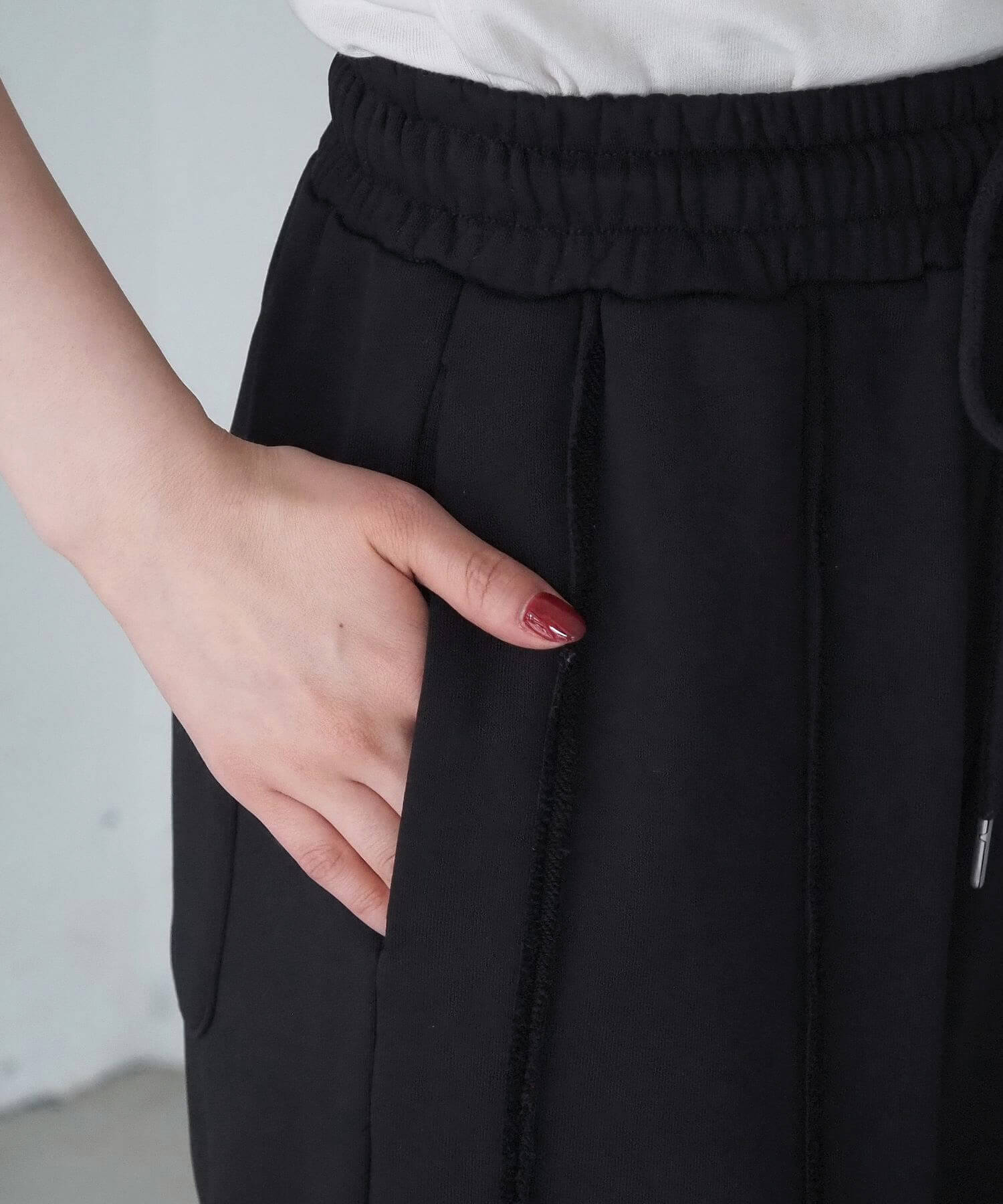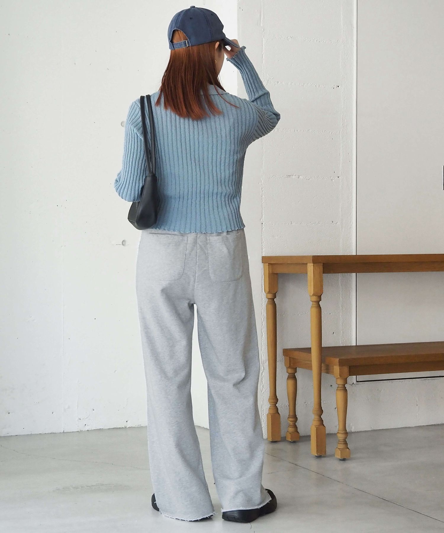 ・スウェットパンツながらスッキリとしたストレートラインが大人っぽく、幅広いアイテムにマッチします。