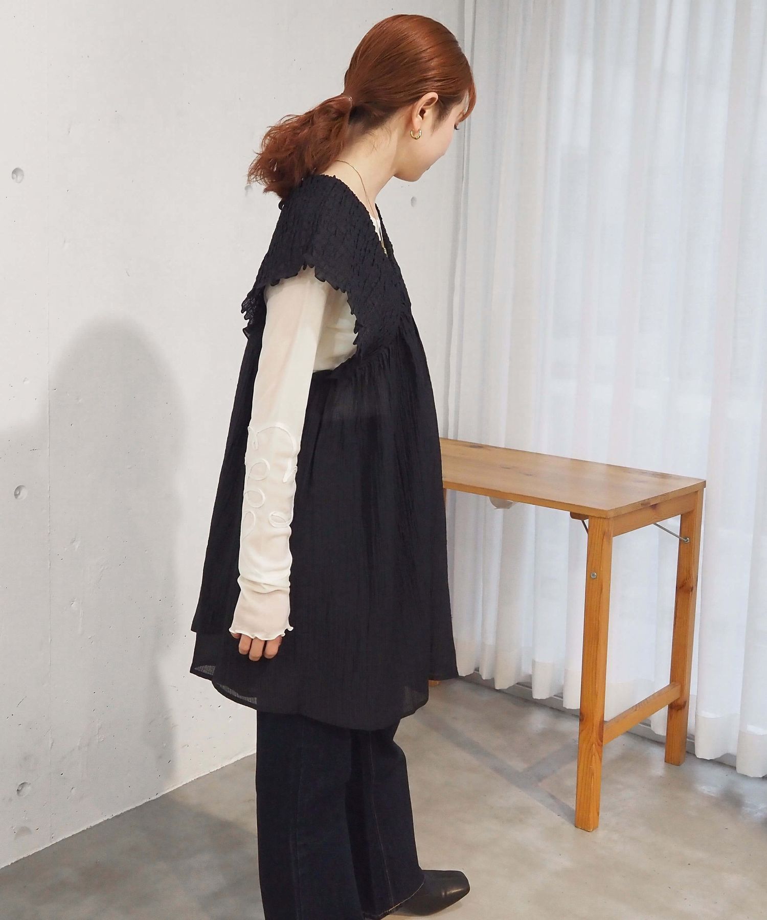 ・ヒップも隠れる程よいフレアラインや、二の腕カバーが狙える肩周りのシルエットもポイントです。