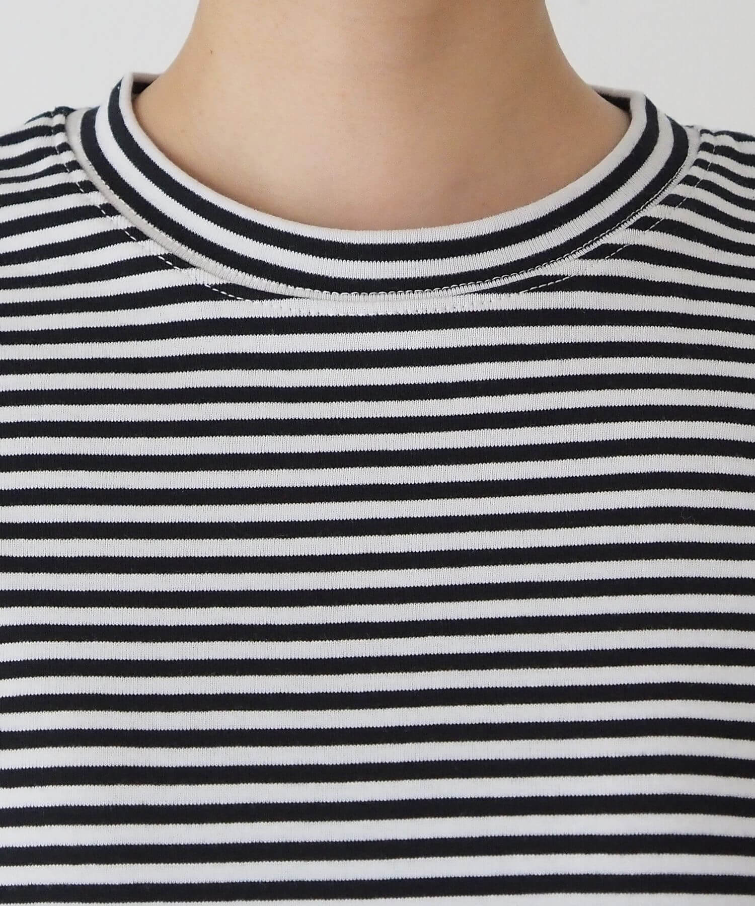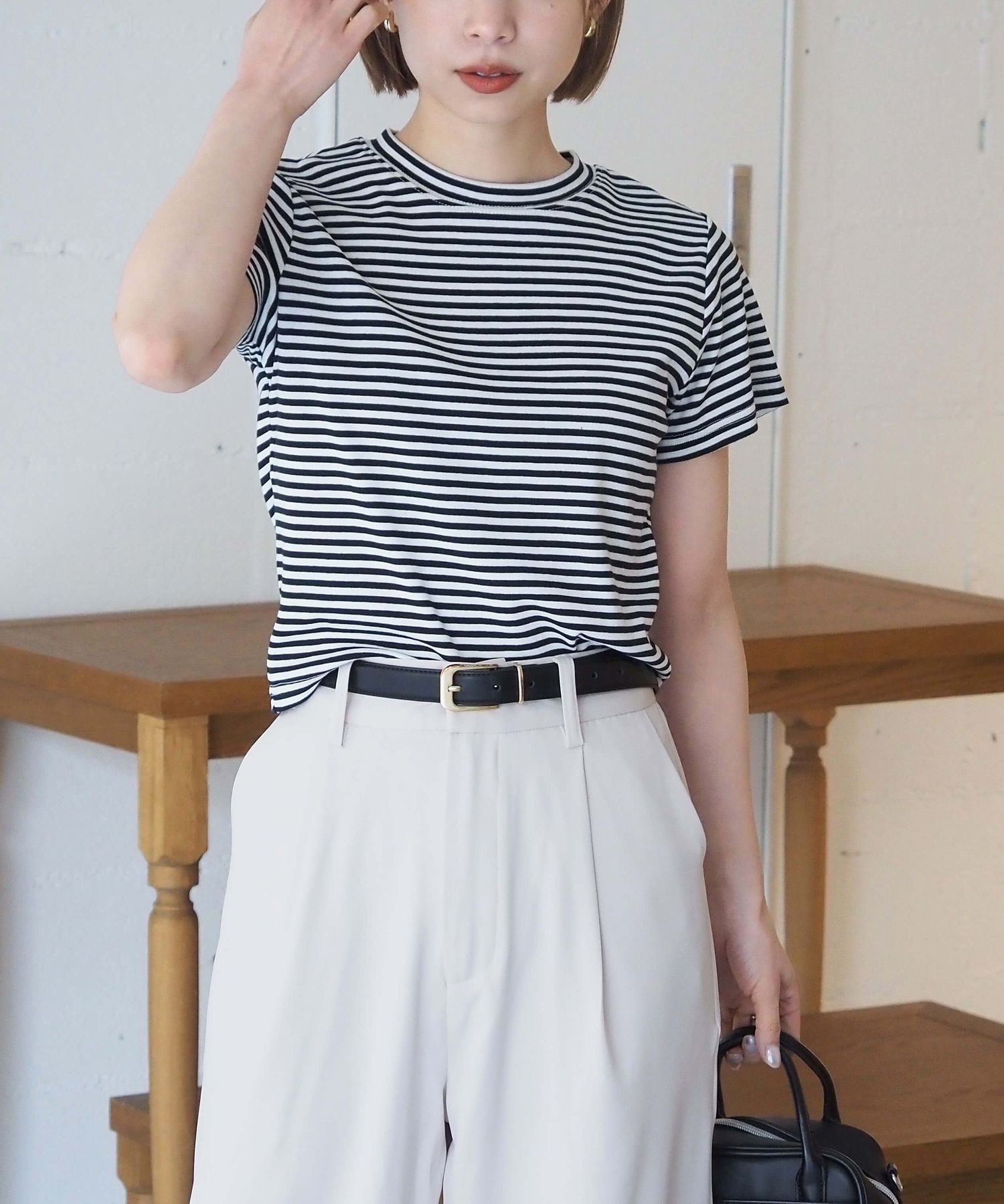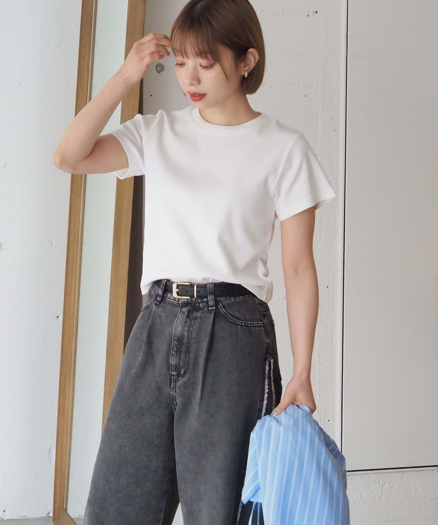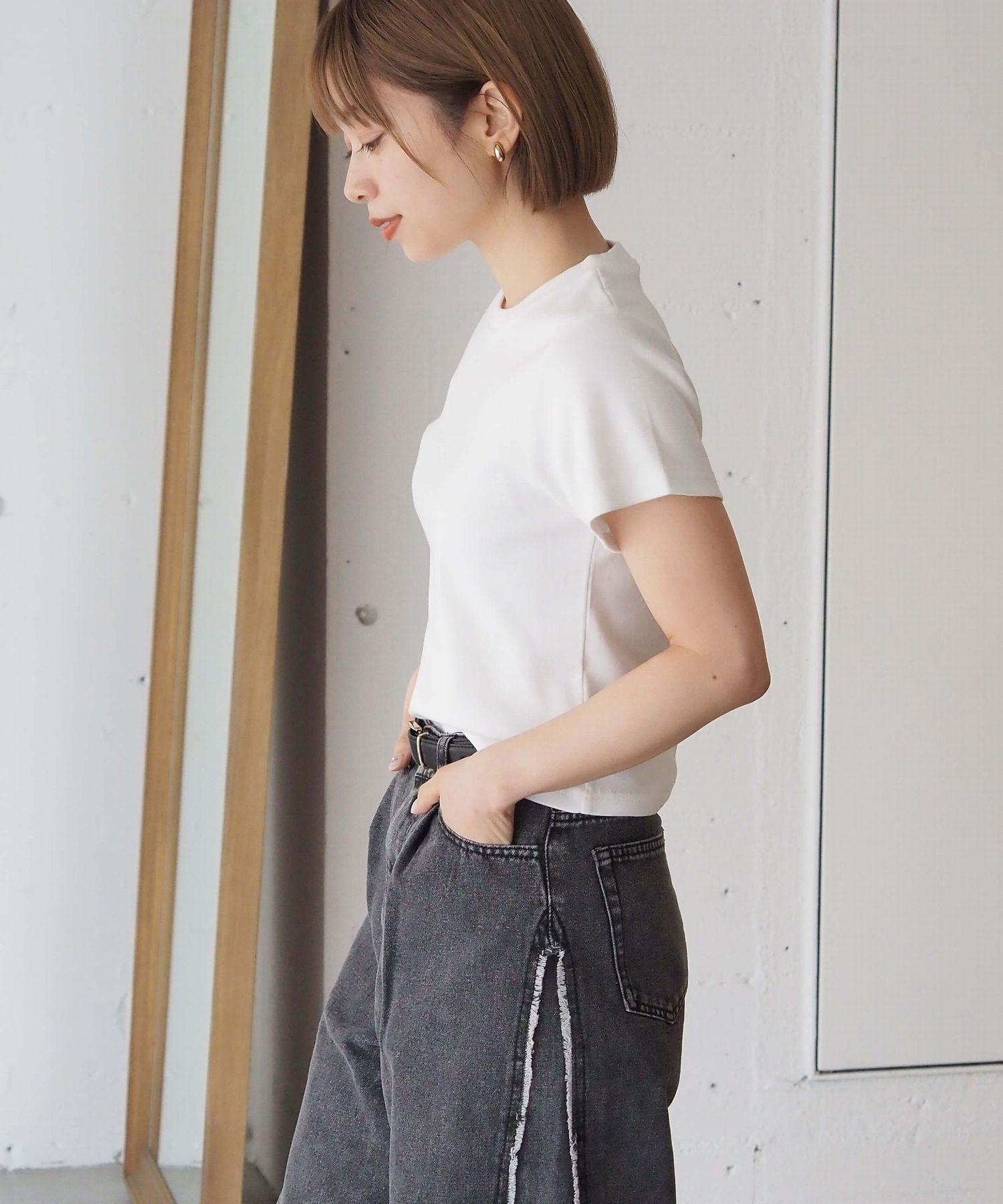 ・大人カジュアルな印象に仕上がる絶妙なクルーネックや、肩周りをすっきりと見せる袖丈もポイント。
