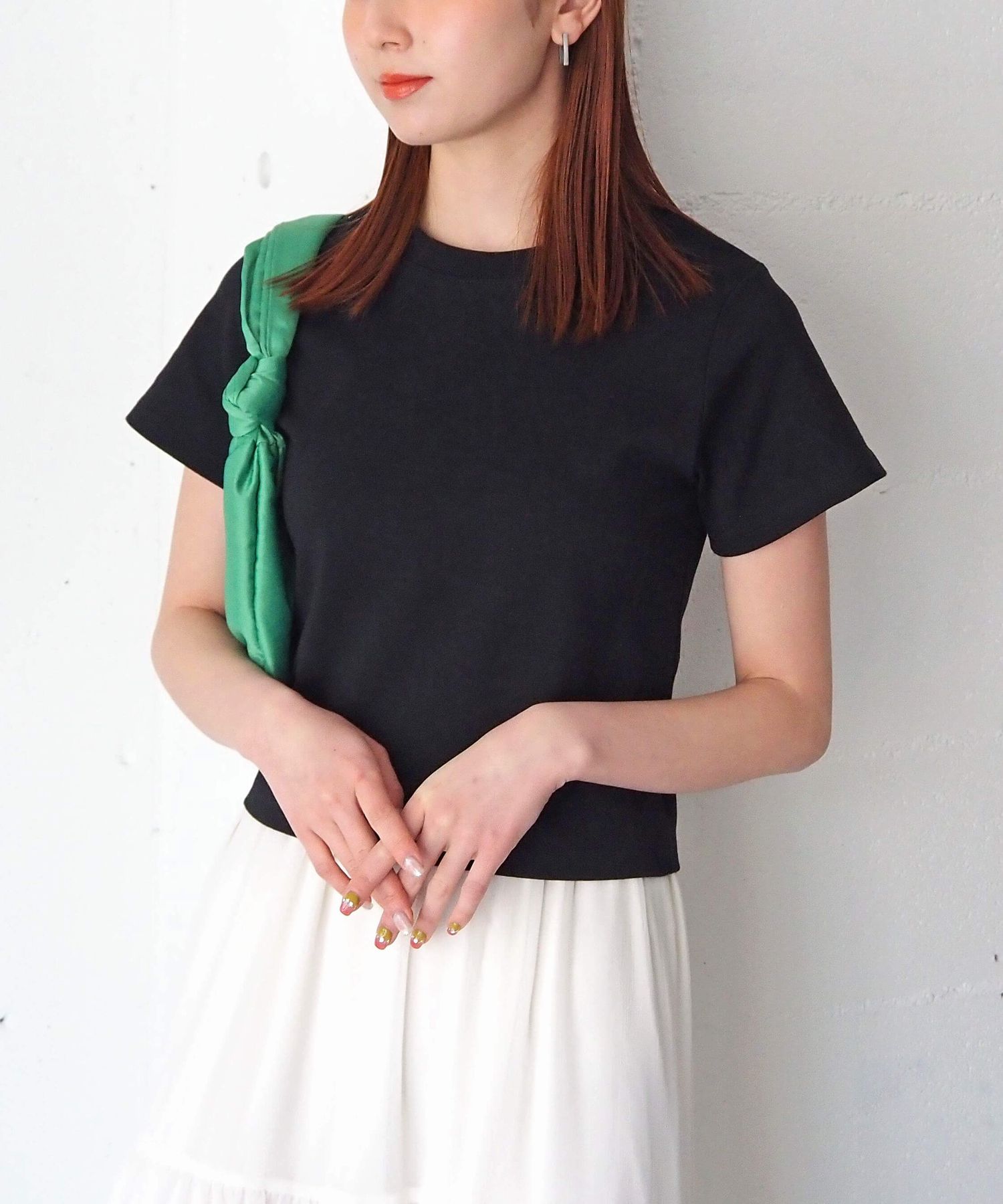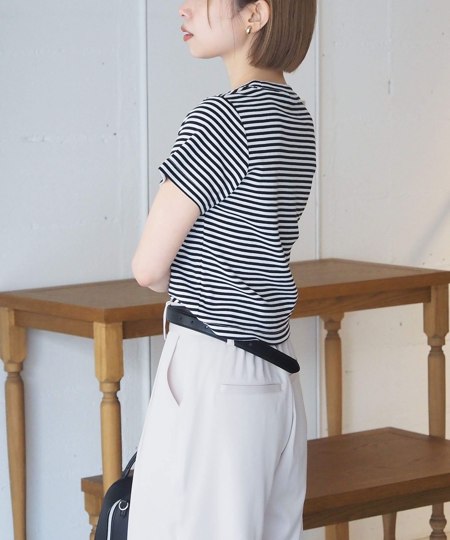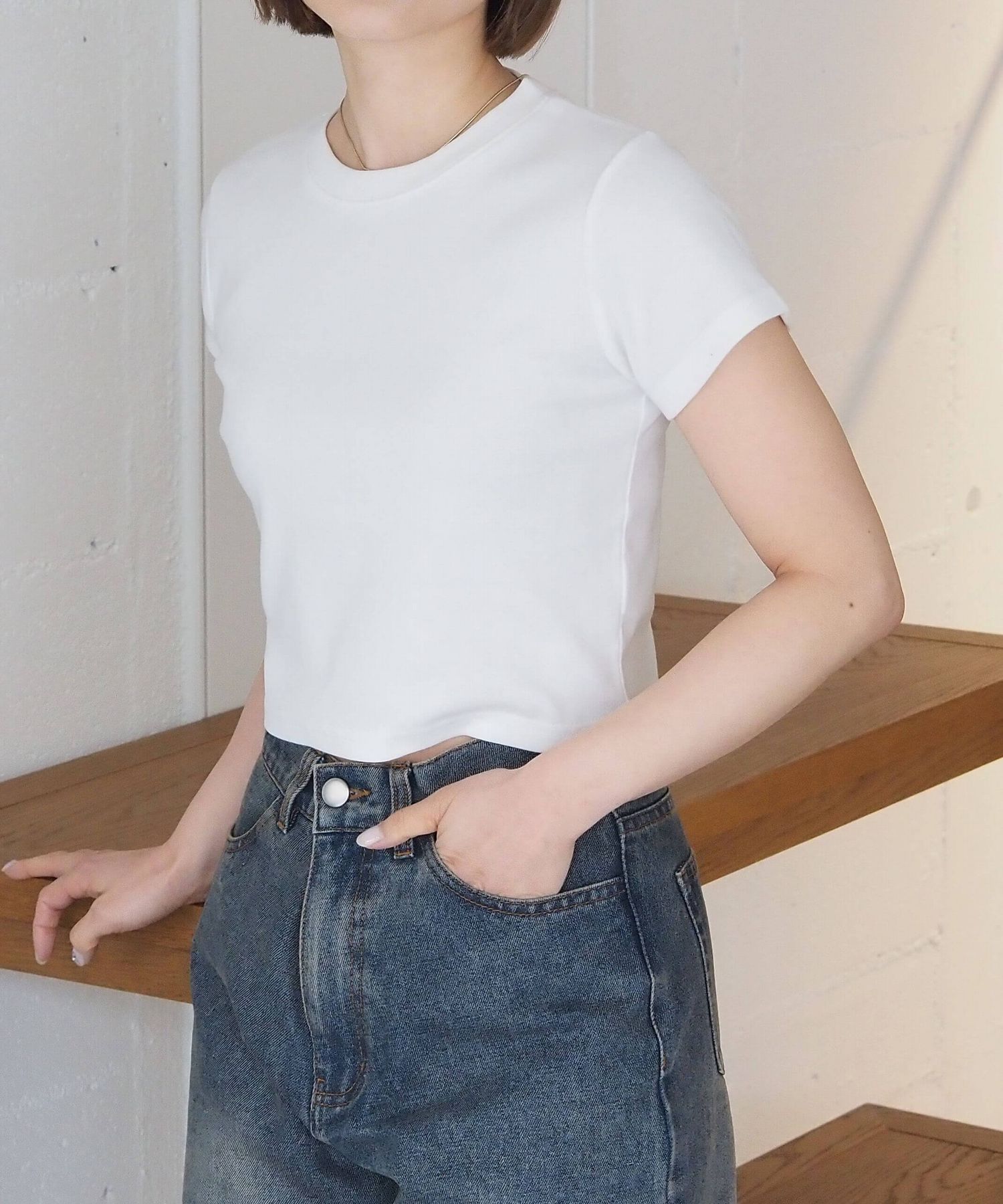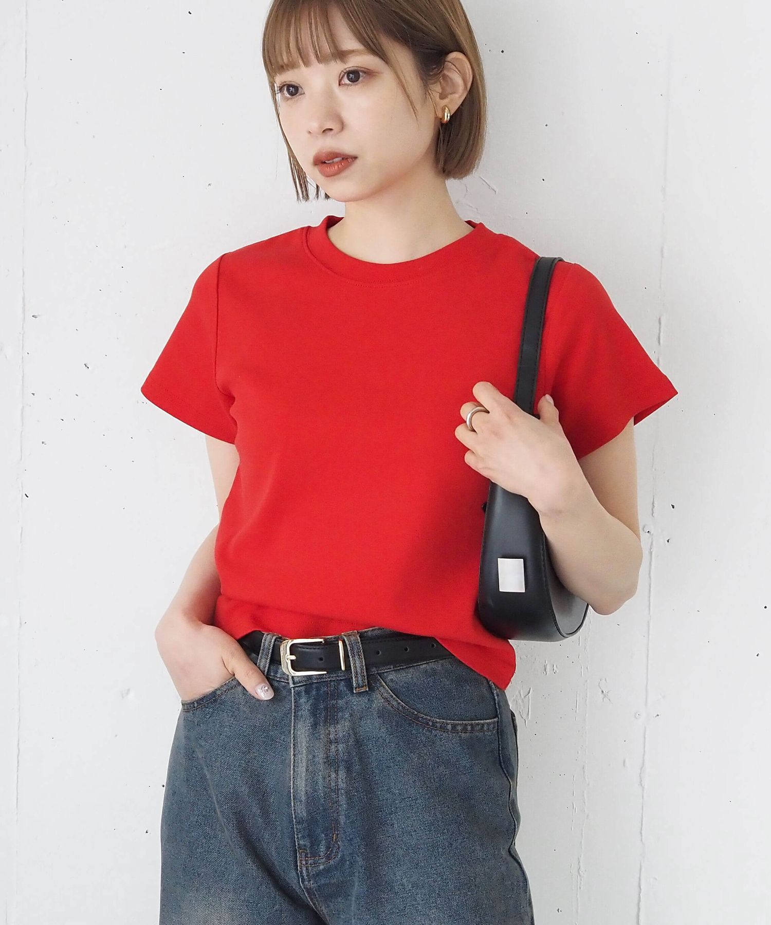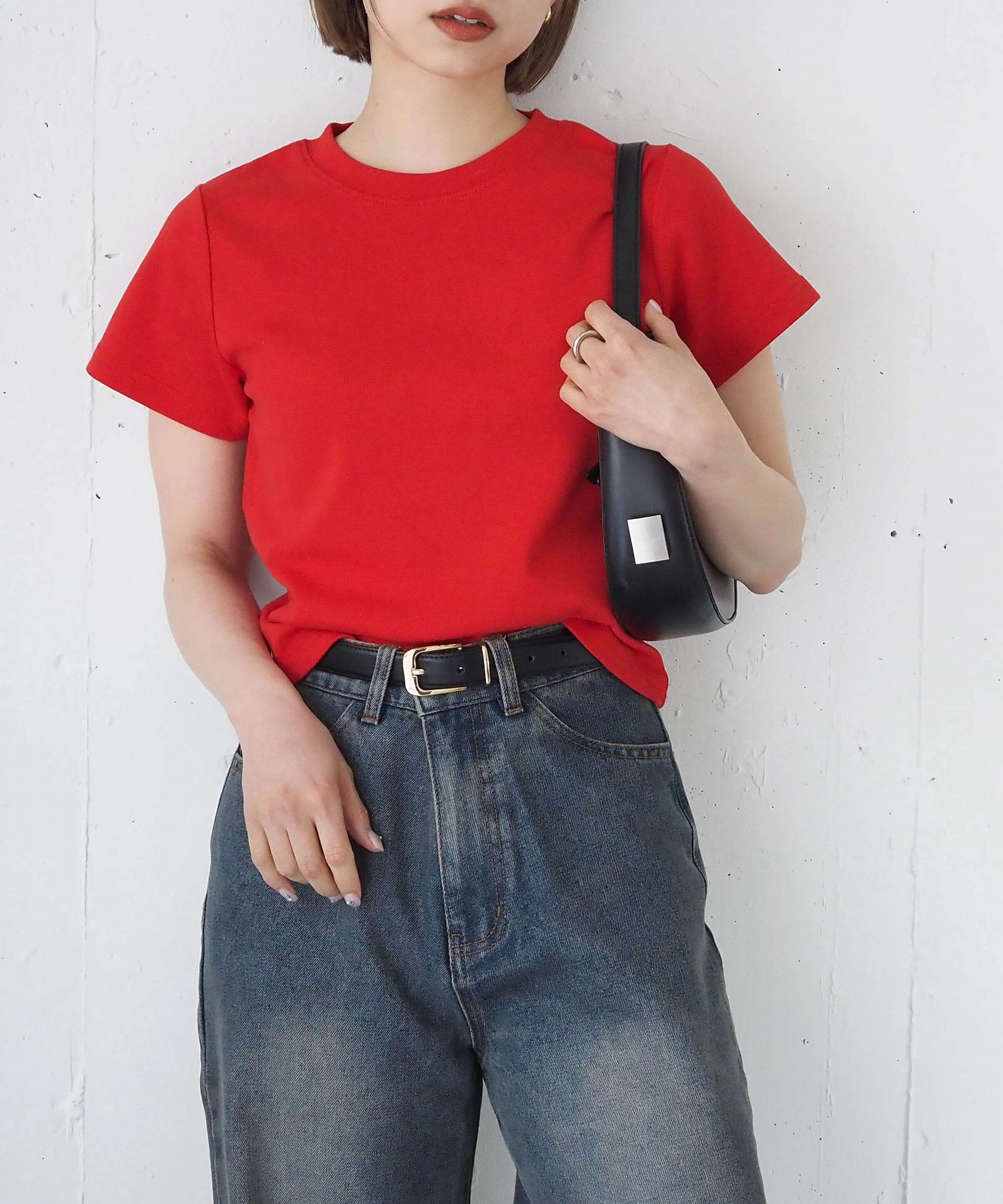 ・大人カジュアルな印象に仕上がる絶妙なクルーネックや、肩周りをすっきりと見せる袖丈もポイント。