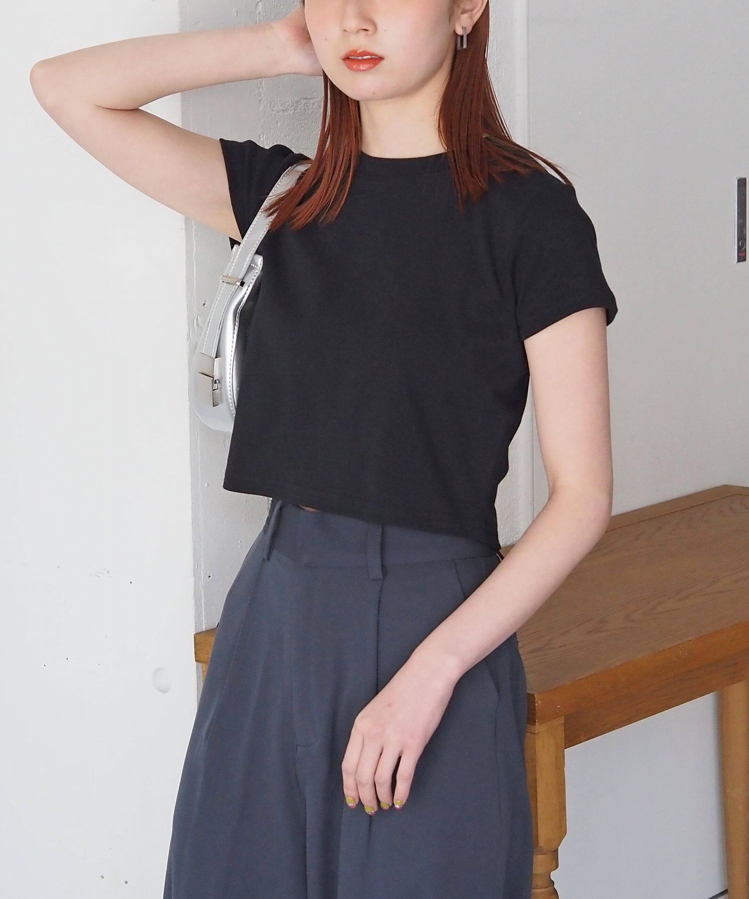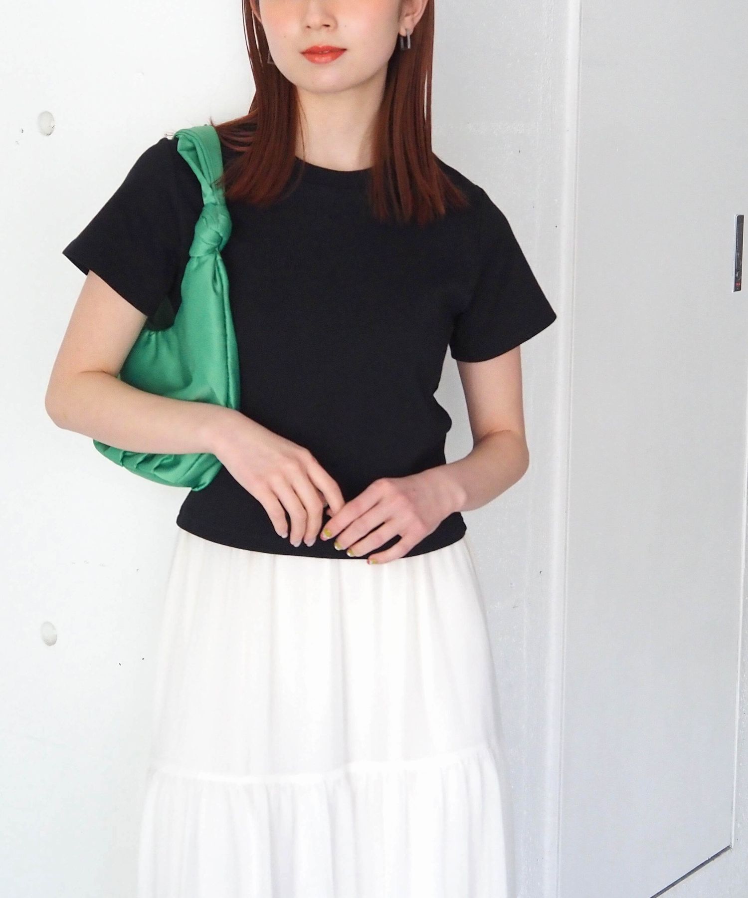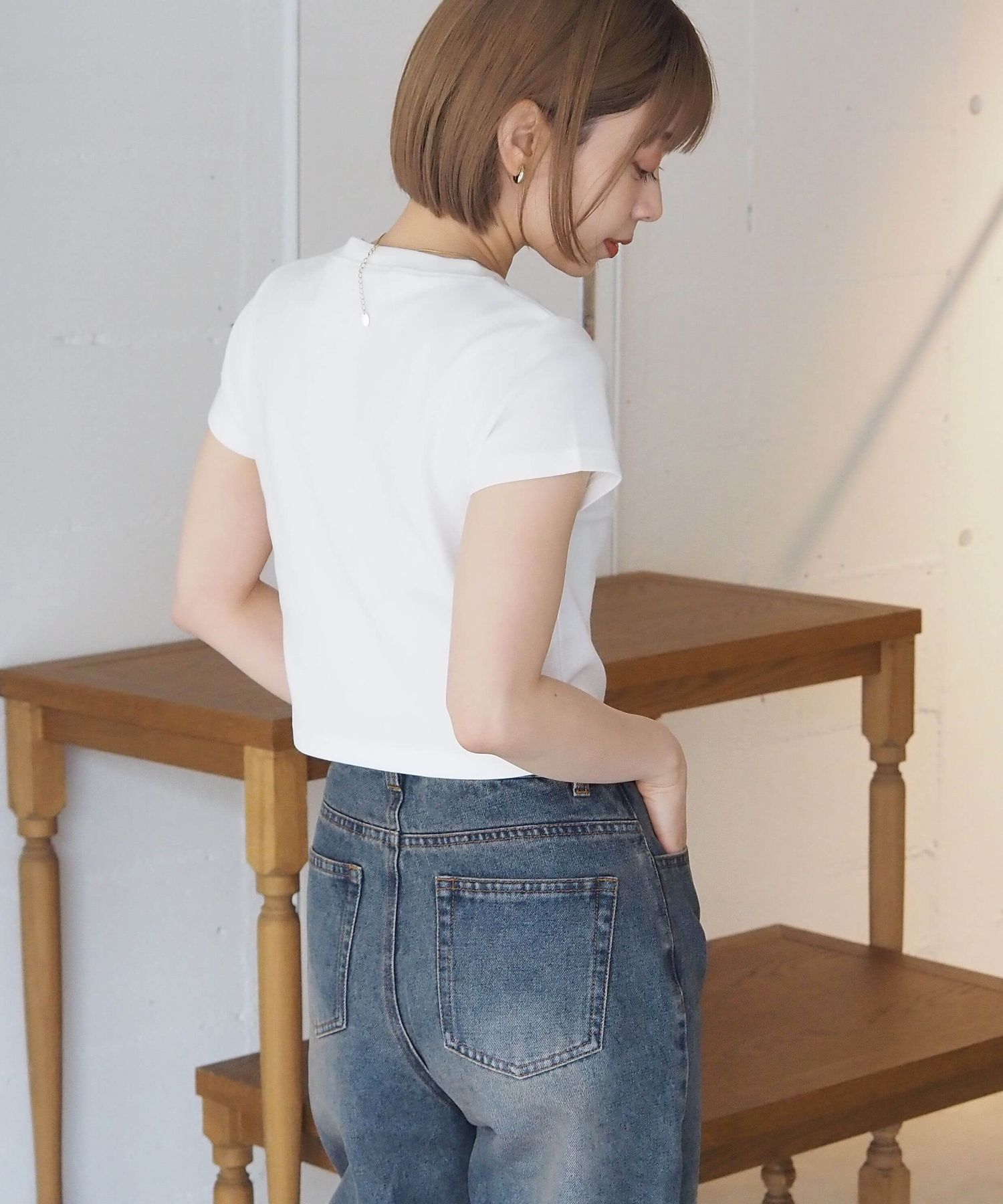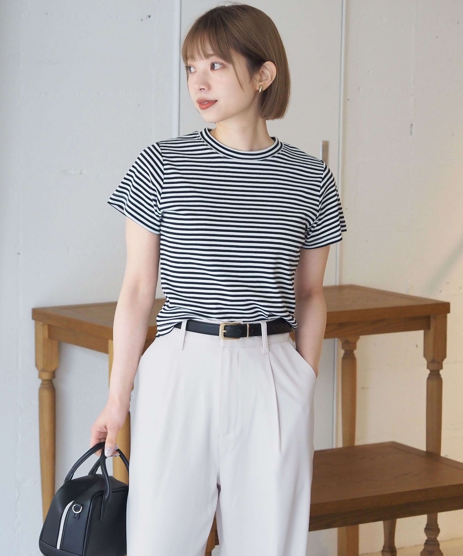 ・大人カジュアルな印象に仕上がる絶妙なクルーネックや、肩周りをすっきりと見せる袖丈もポイント。
