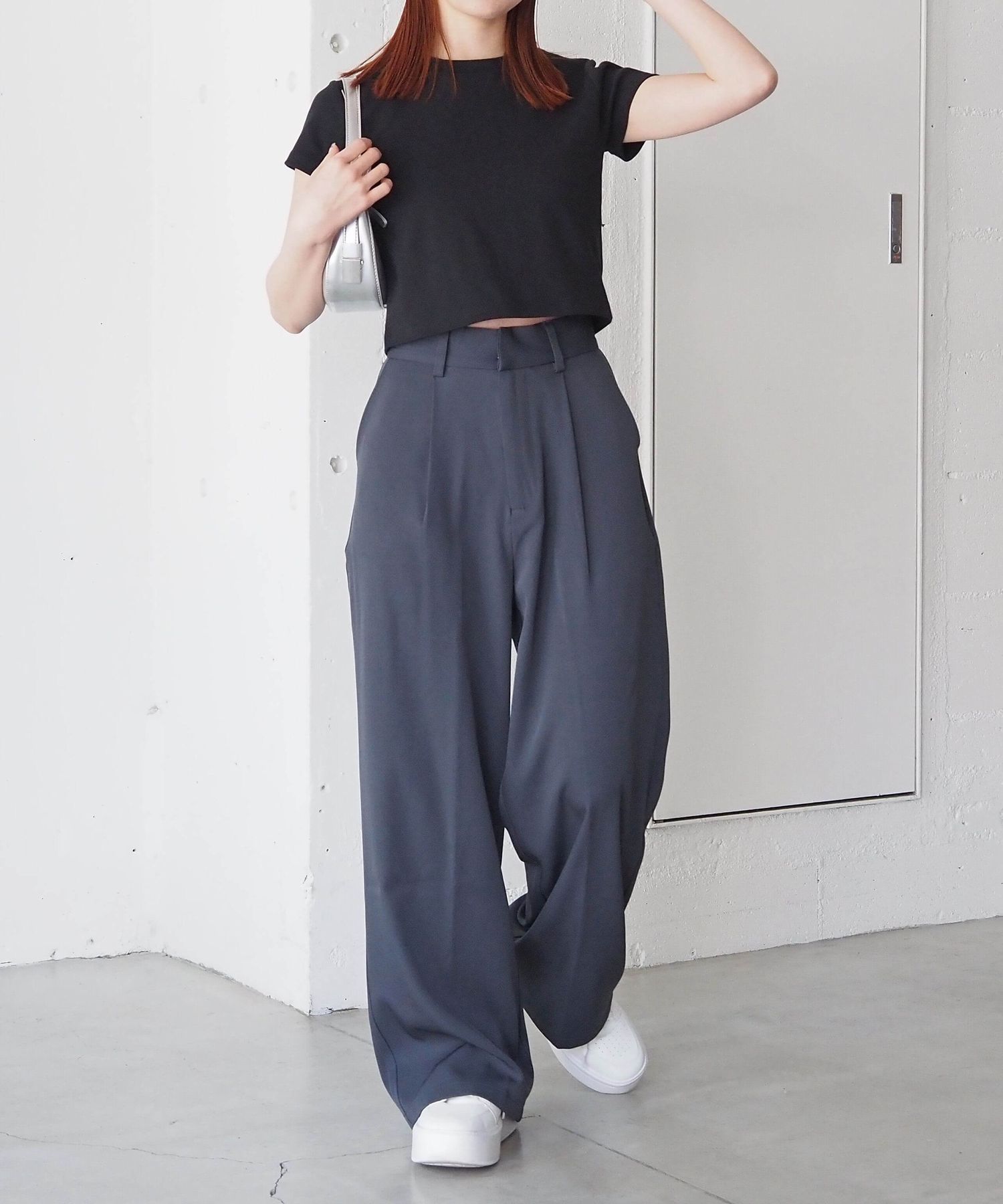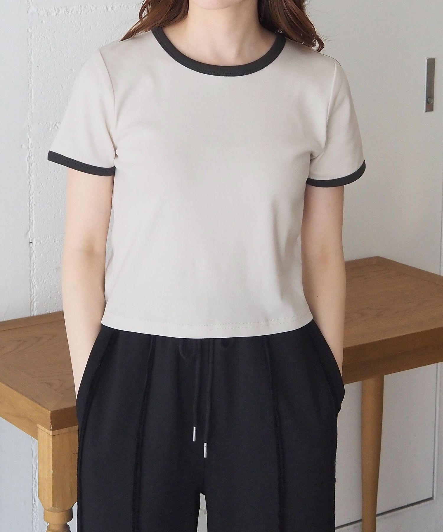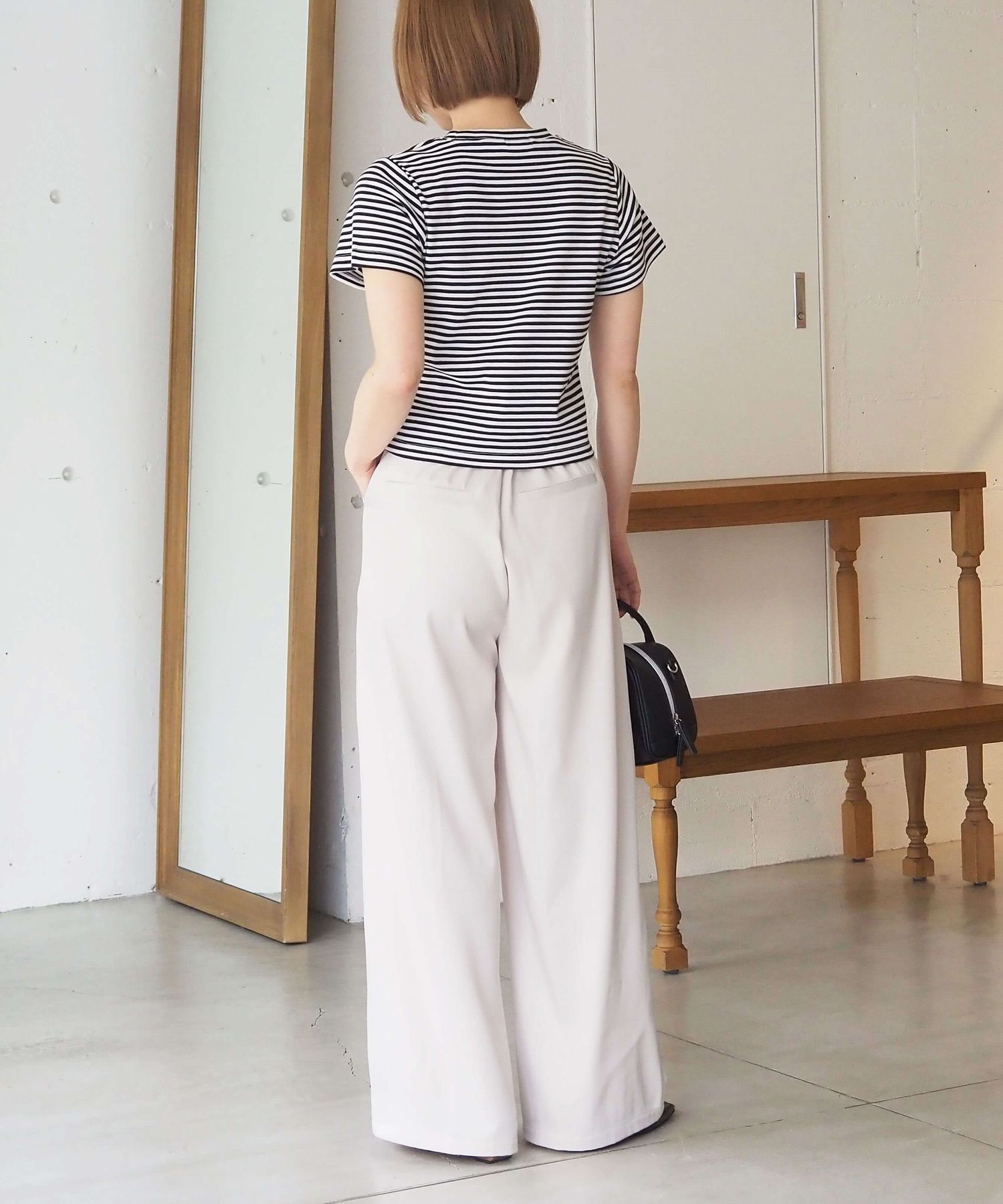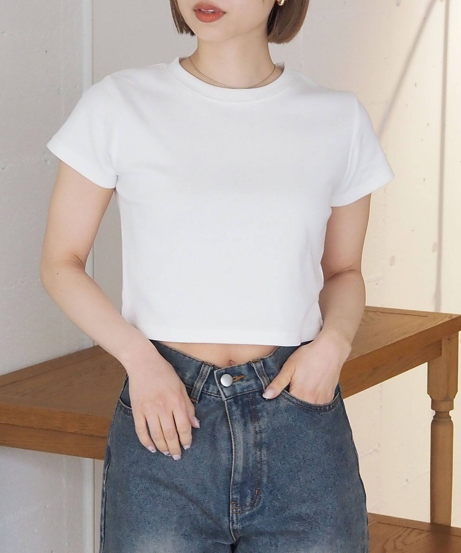 ・大人カジュアルな印象に仕上がる絶妙なクルーネックや、肩周りをすっきりと見せる袖丈もポイント。