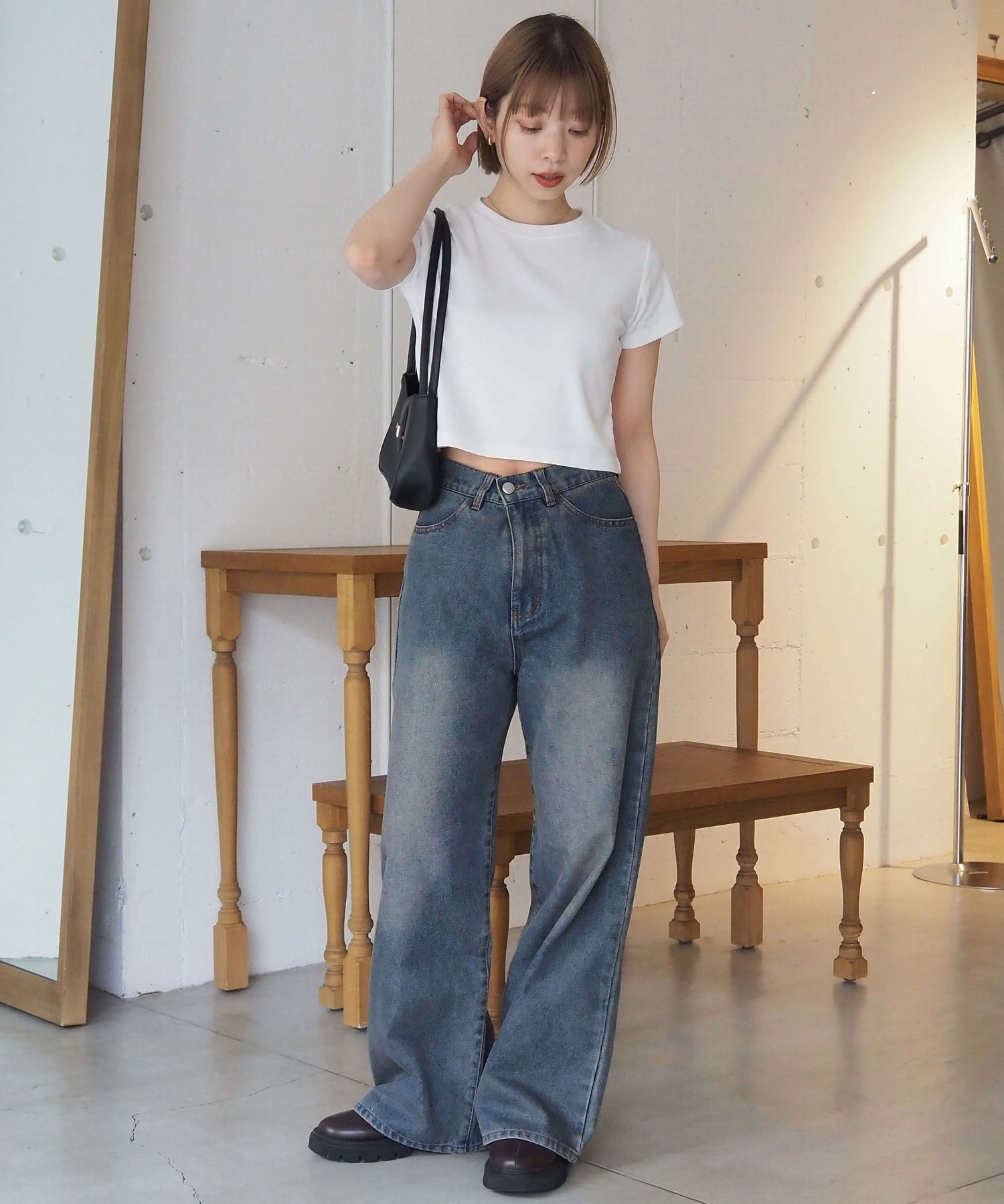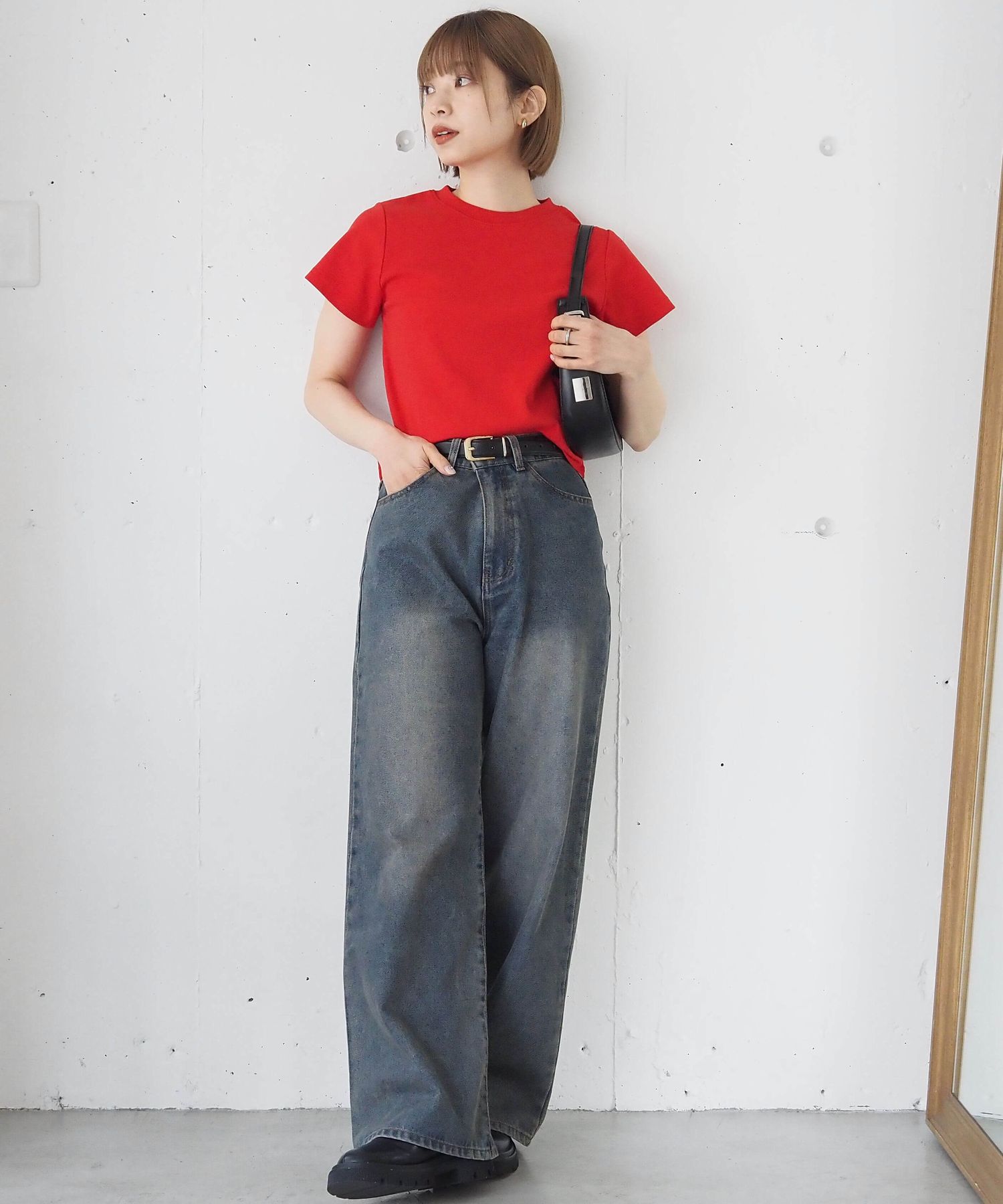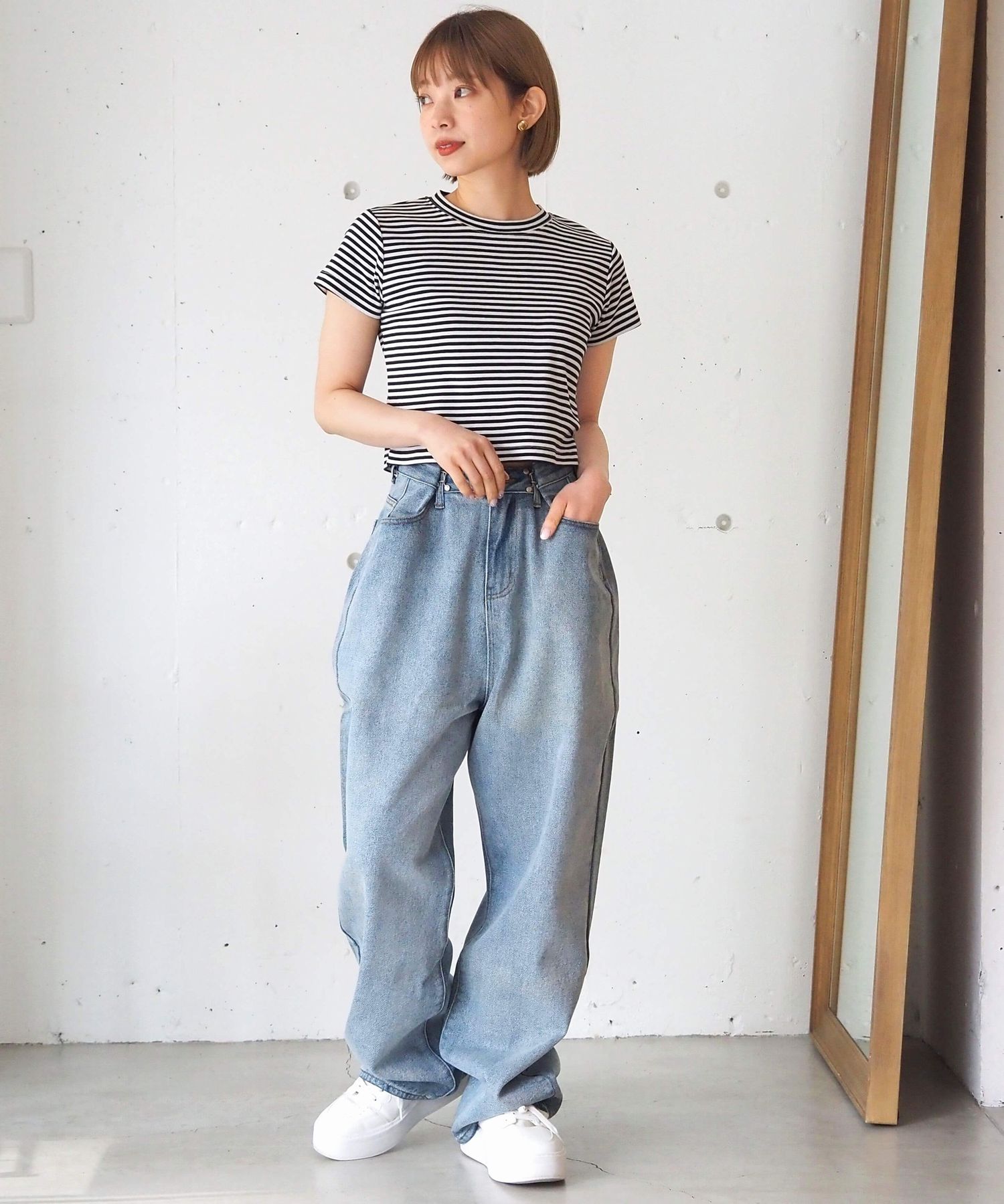 ・S・Mどちらも、1枚で決まるシルエットなので、定番のデニムコーデがおしゃれに決まります。