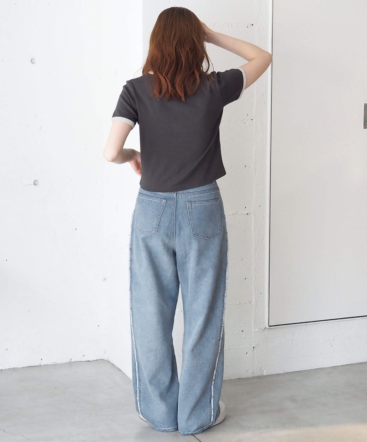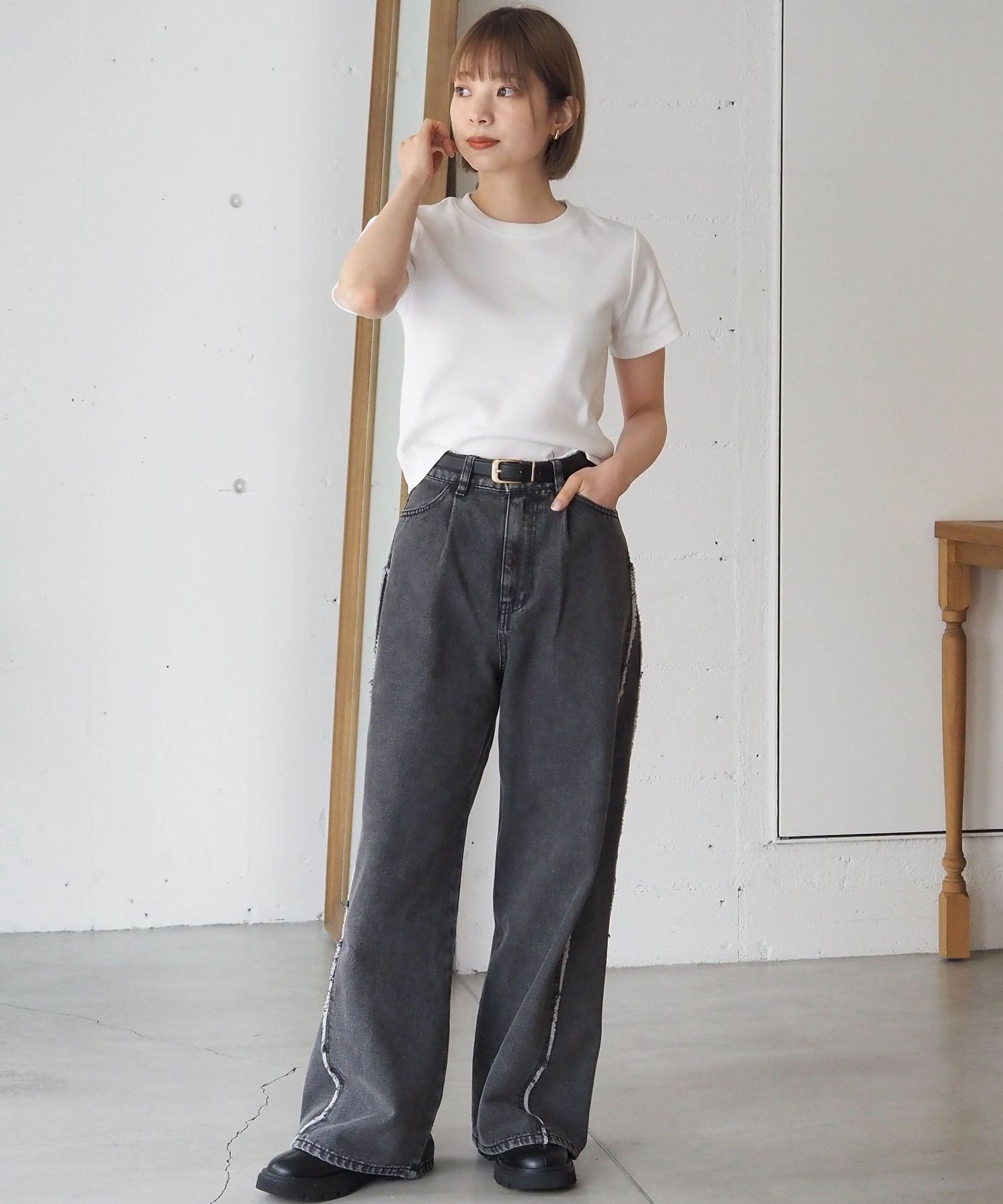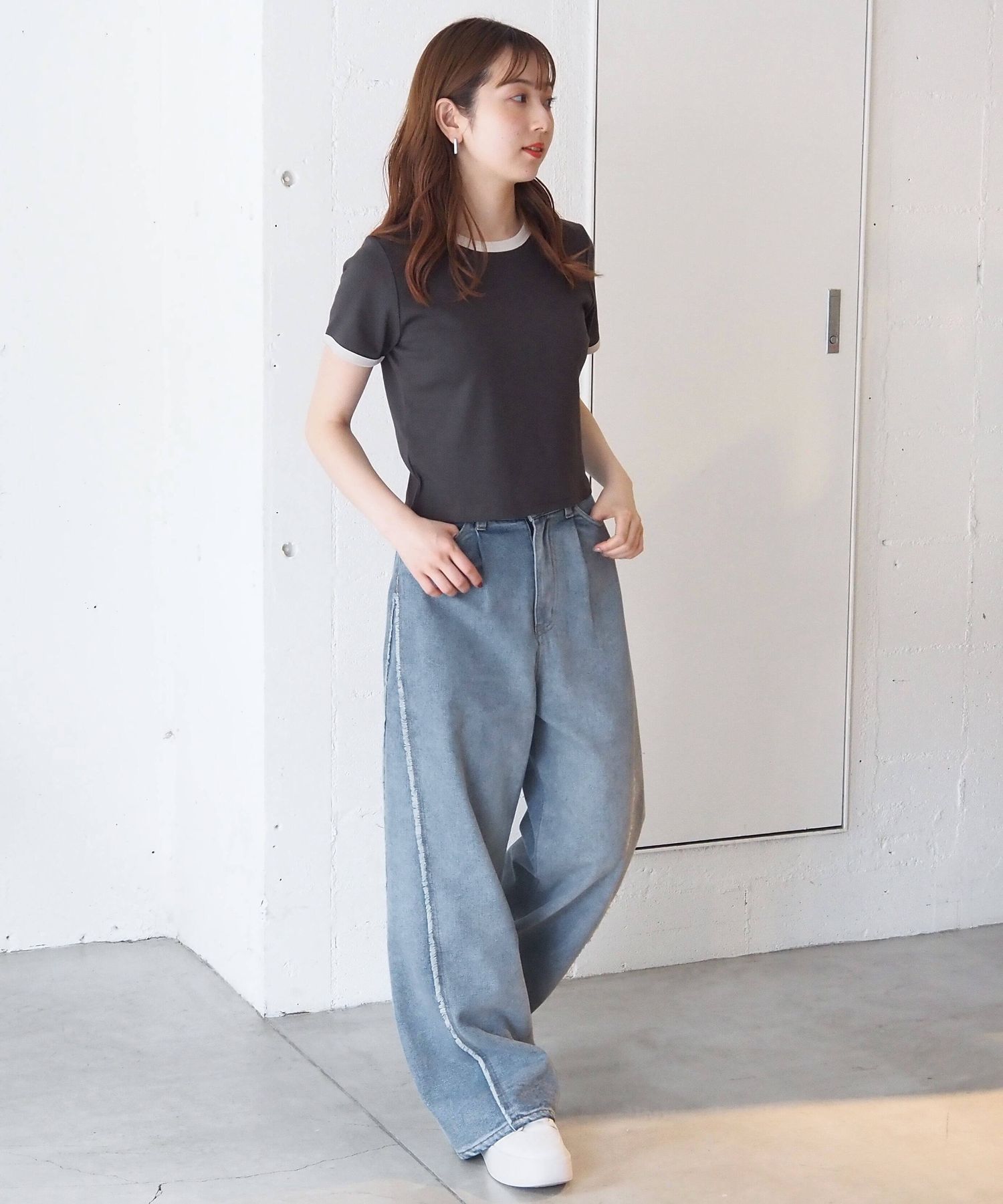 ・S・Mどちらも、1枚で決まるシルエットなので、定番のデニムコーデがおしゃれに決まります。