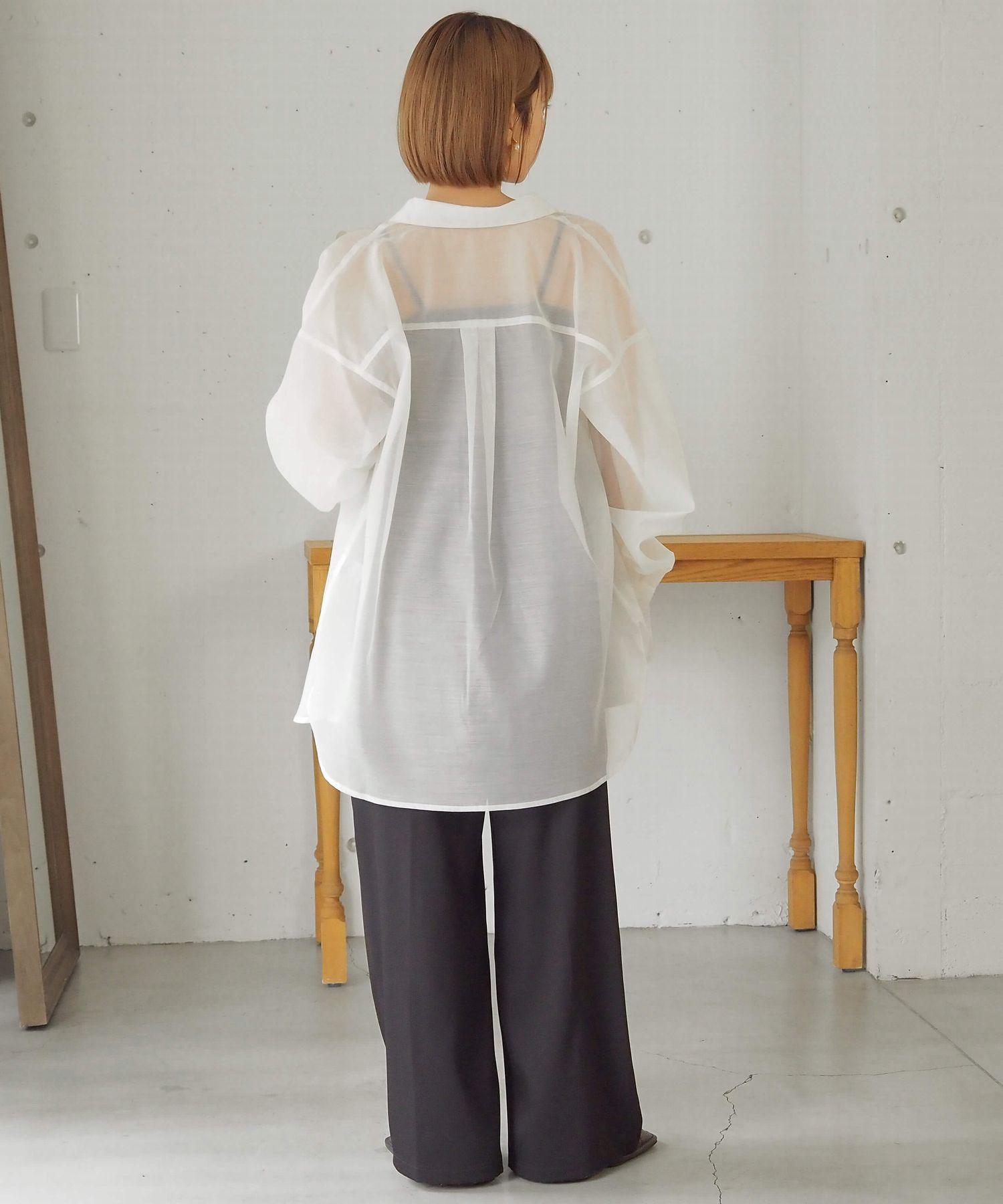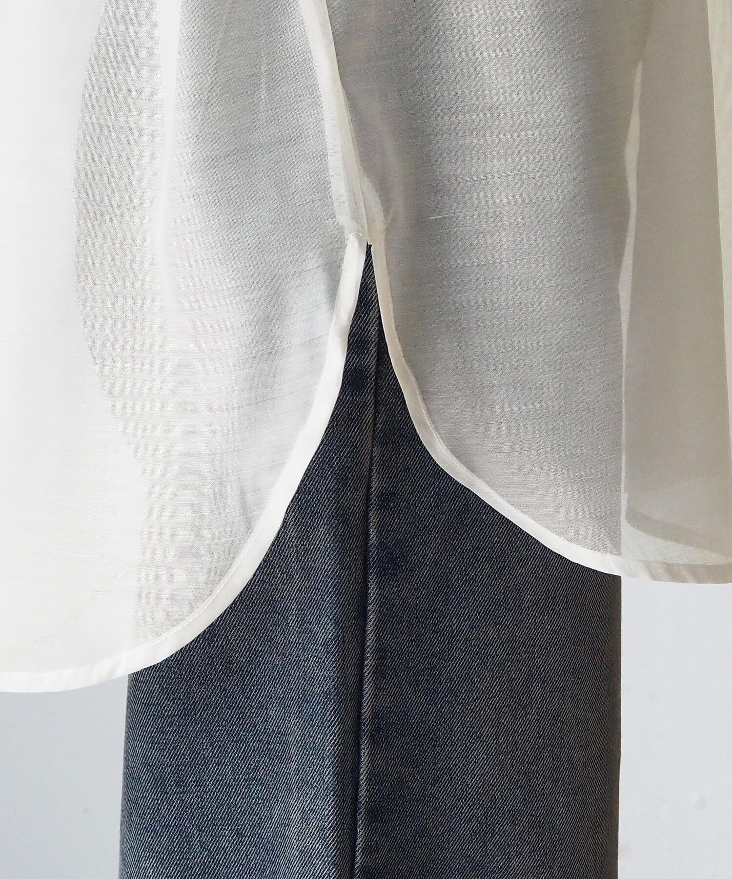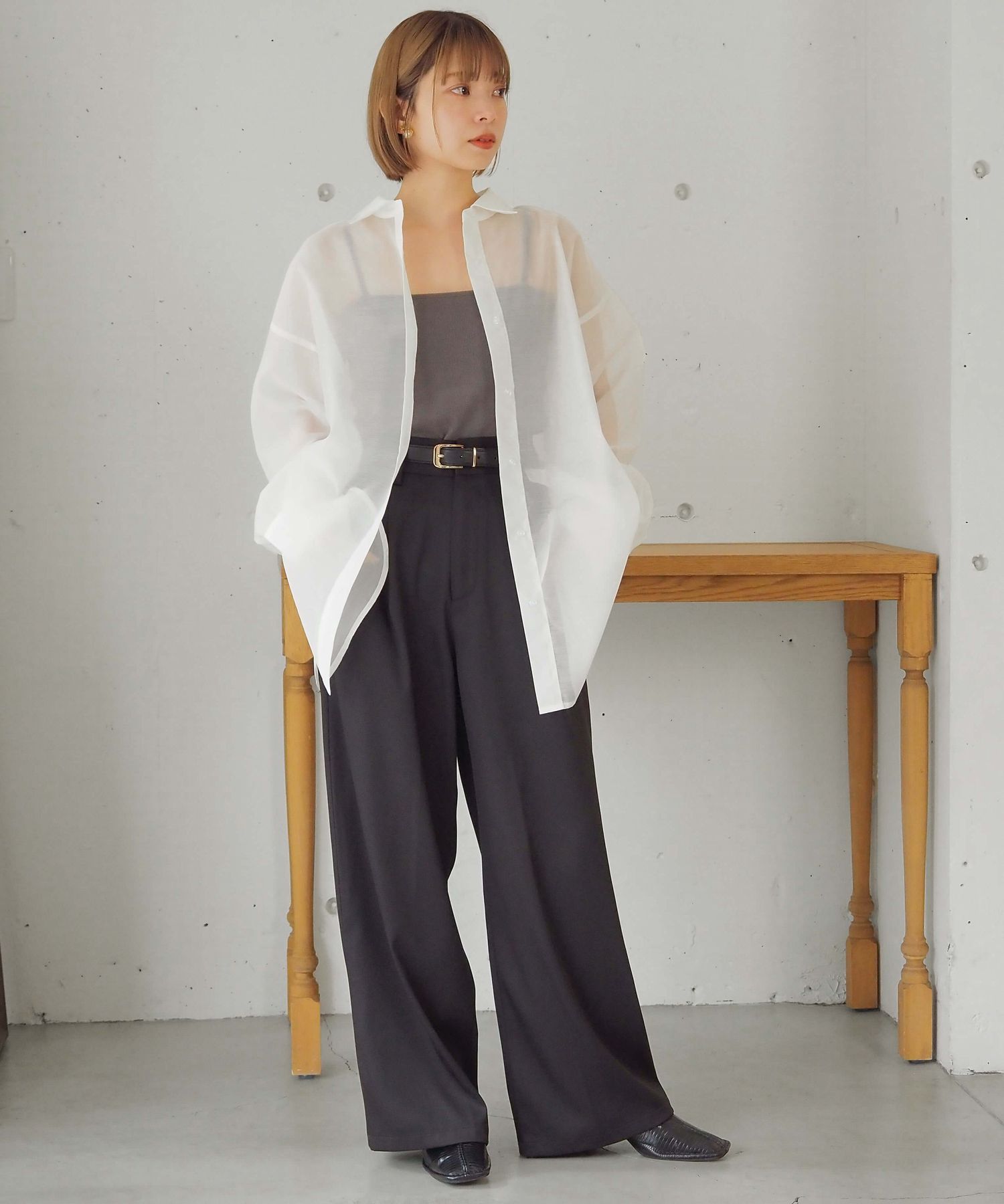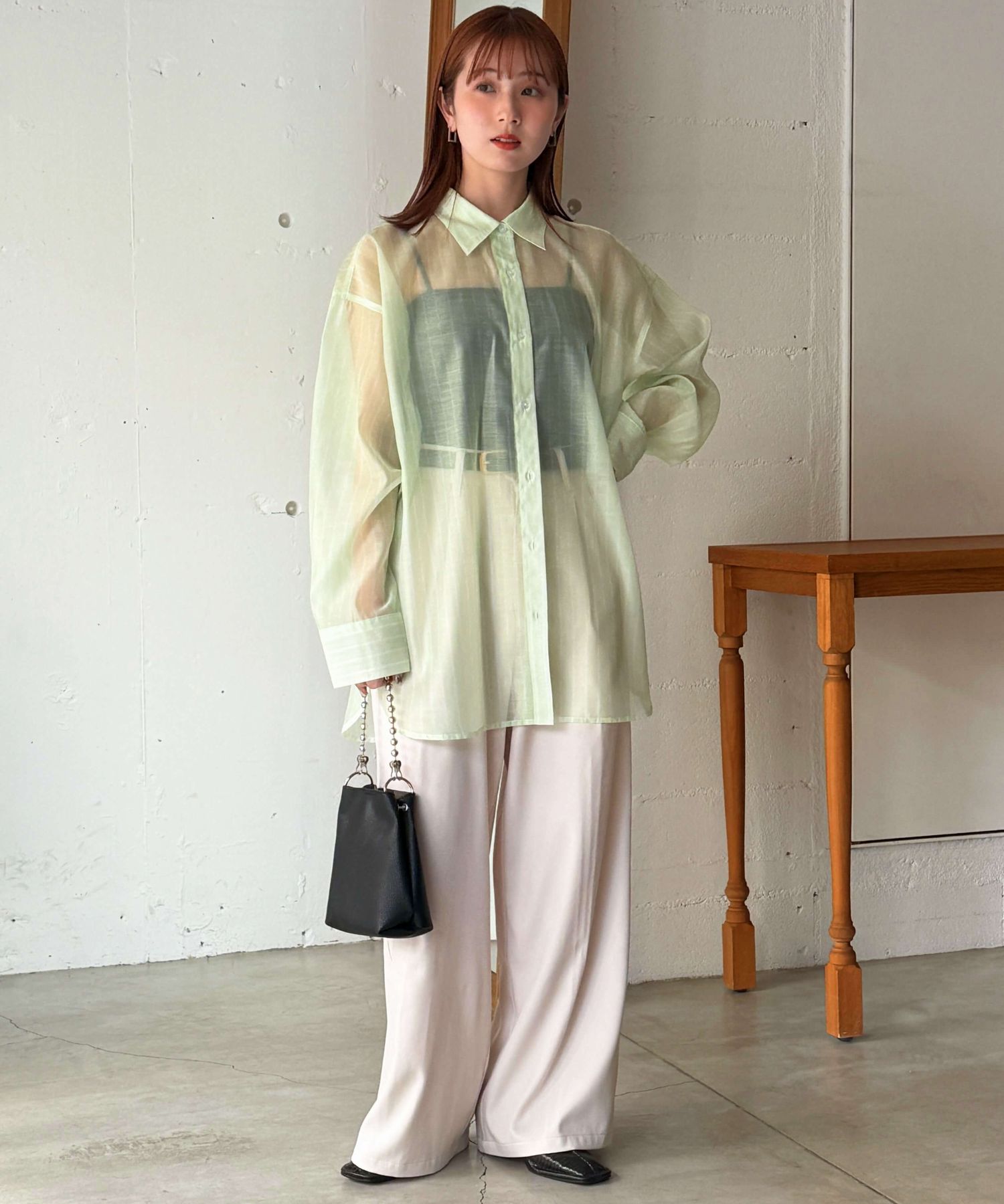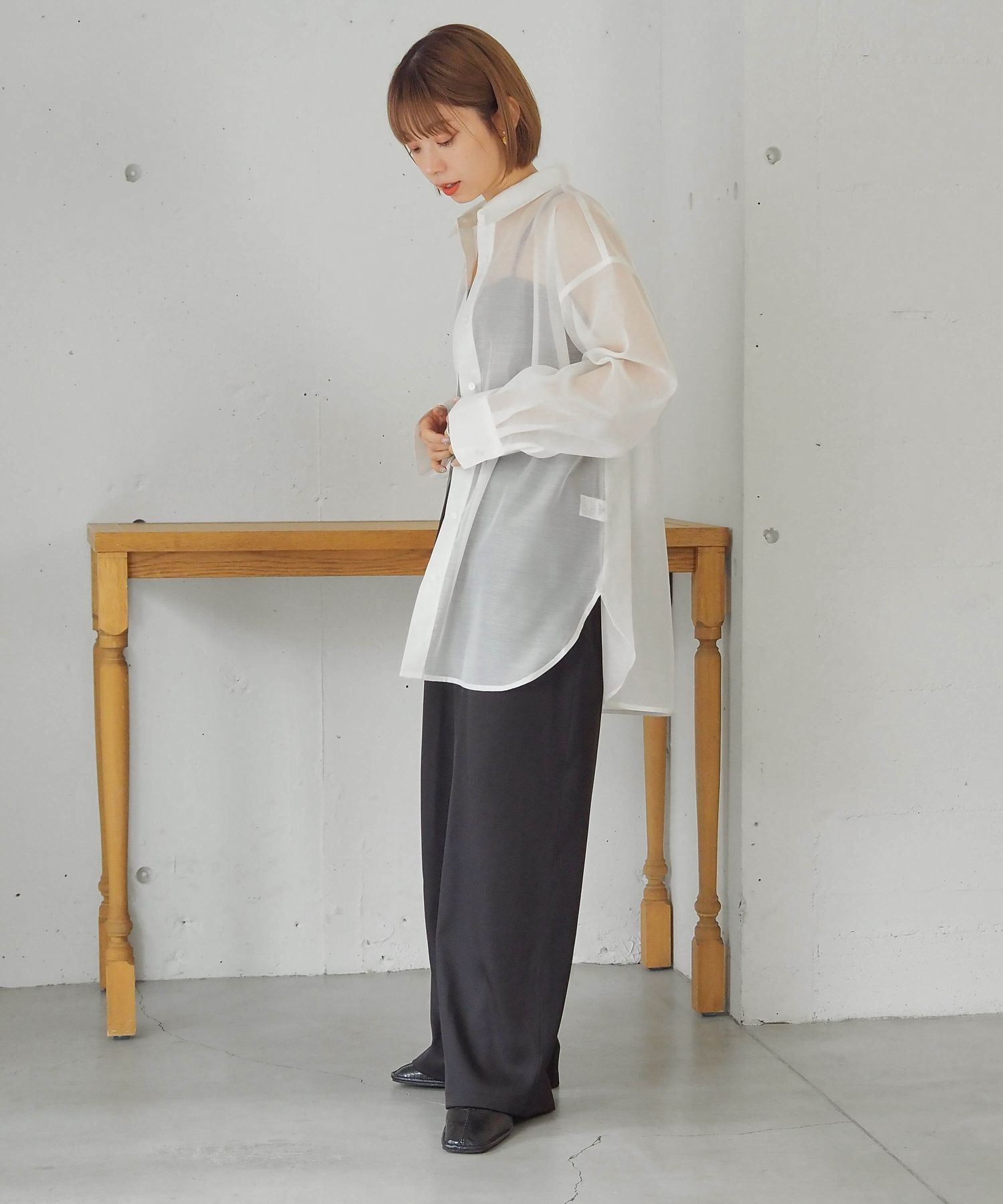 ・程よいシアー生地なので、重心が下がりがちなロングスカートやワイドパンツも好バランスに着こなせます。