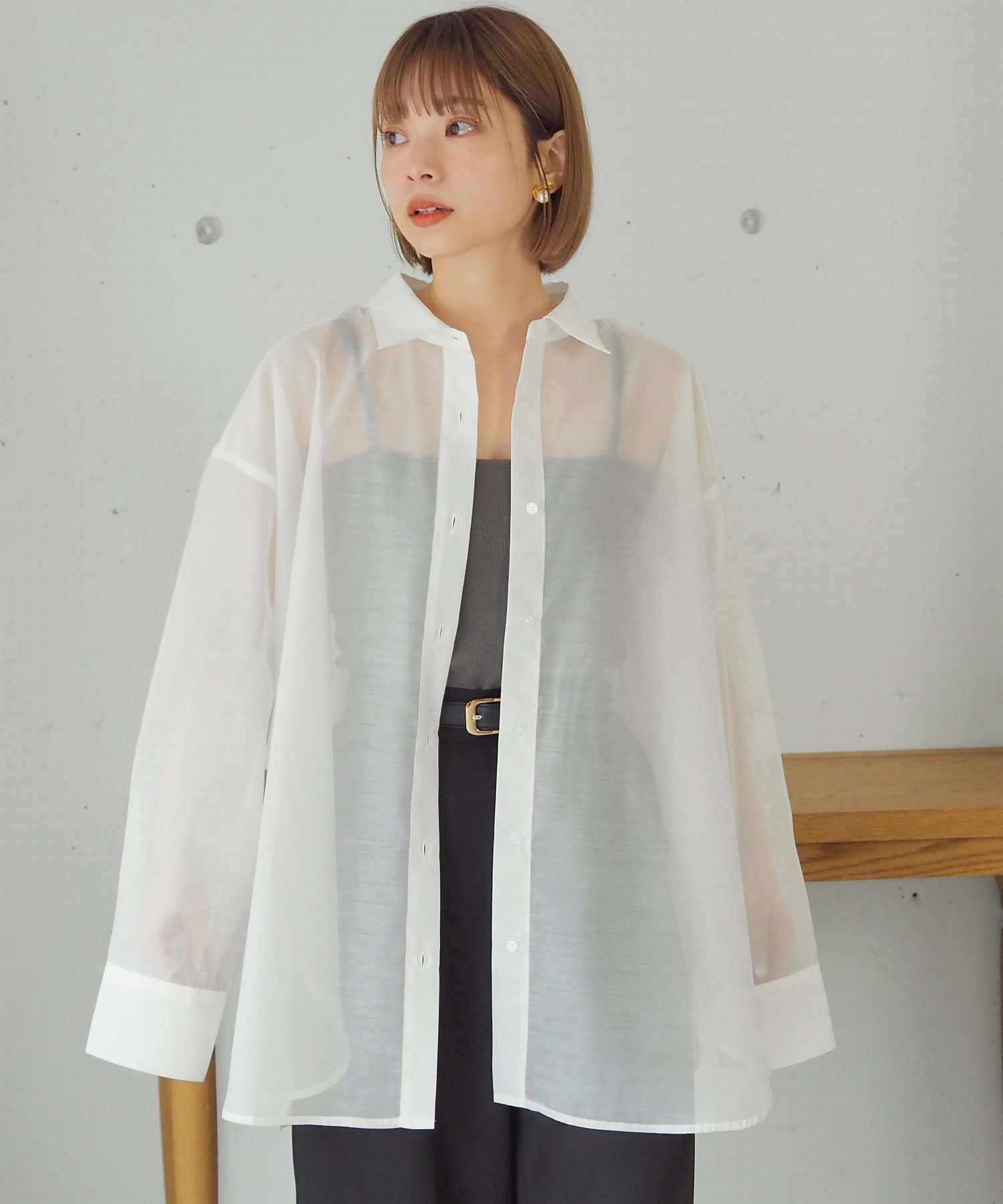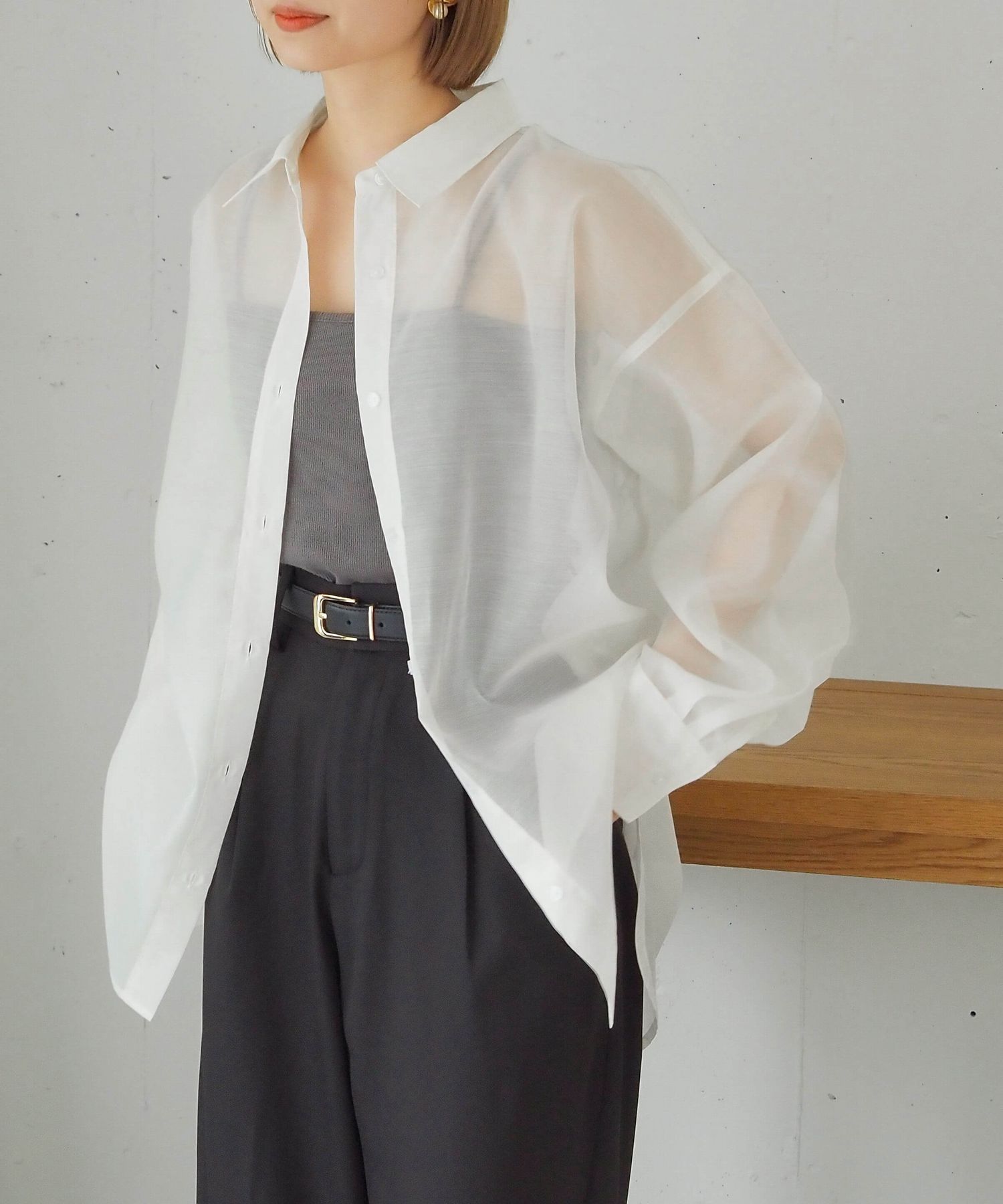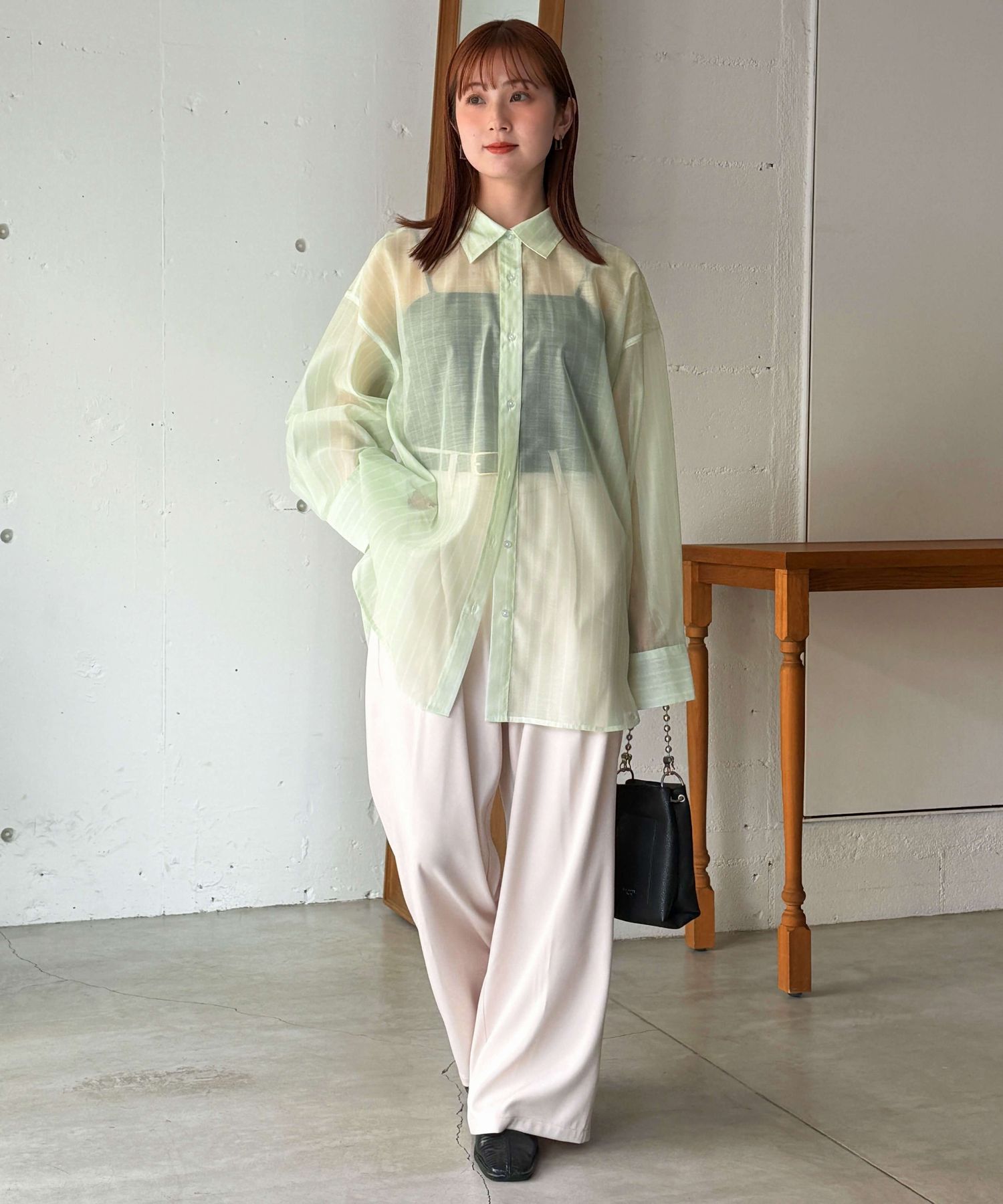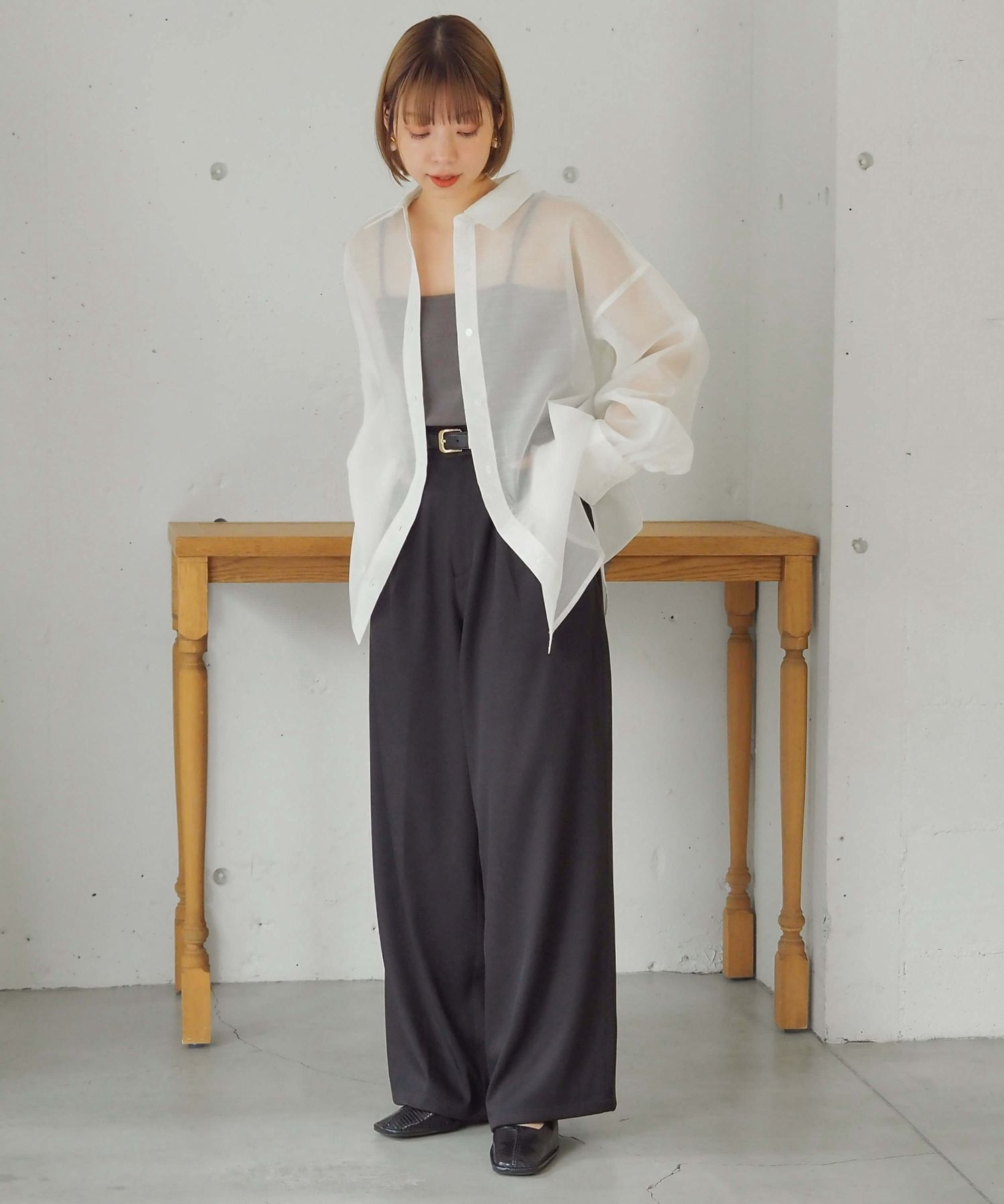 ・程よいシアー生地なので、重心が下がりがちなロングスカートやワイドパンツも好バランスに着こなせます。
