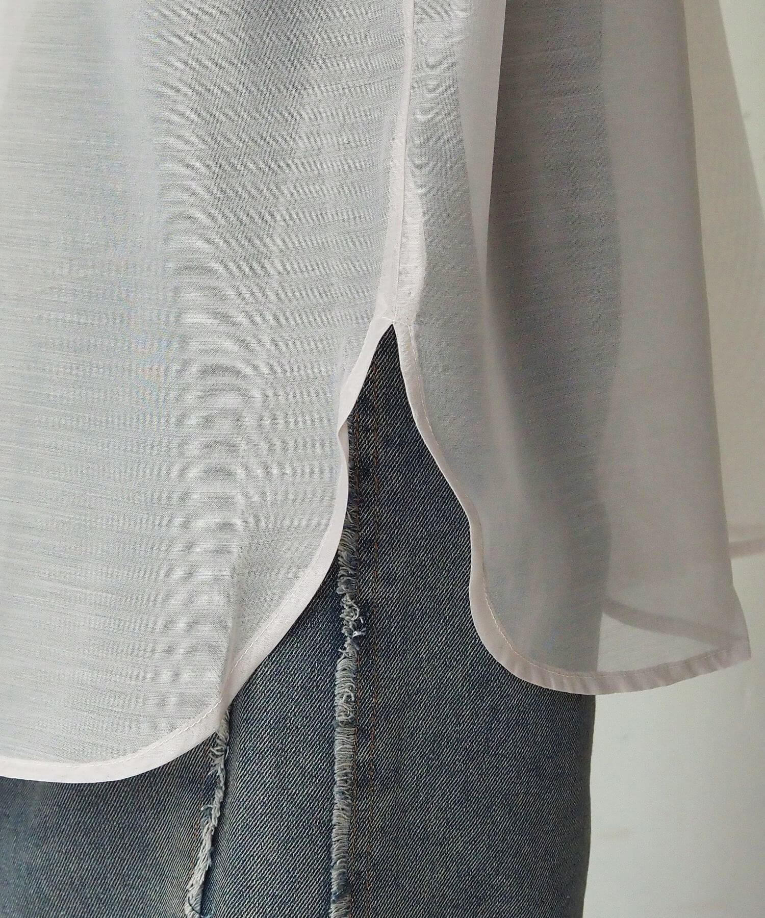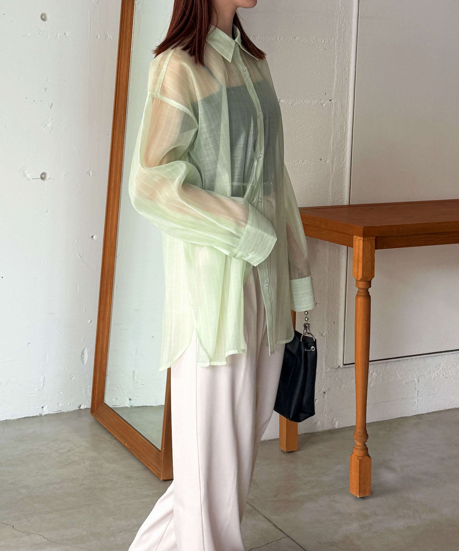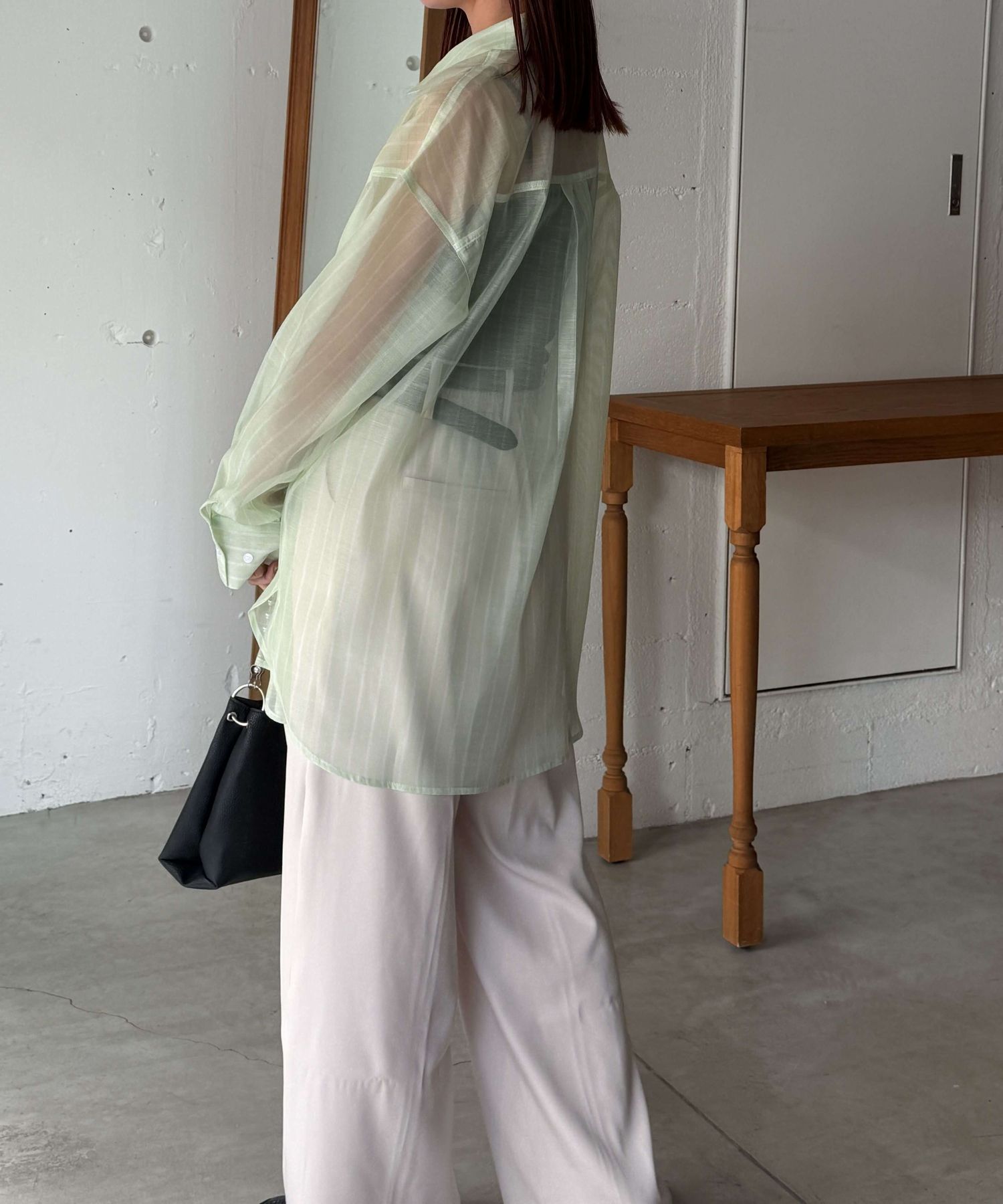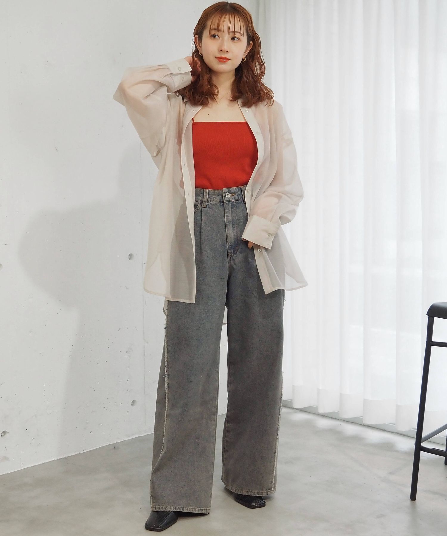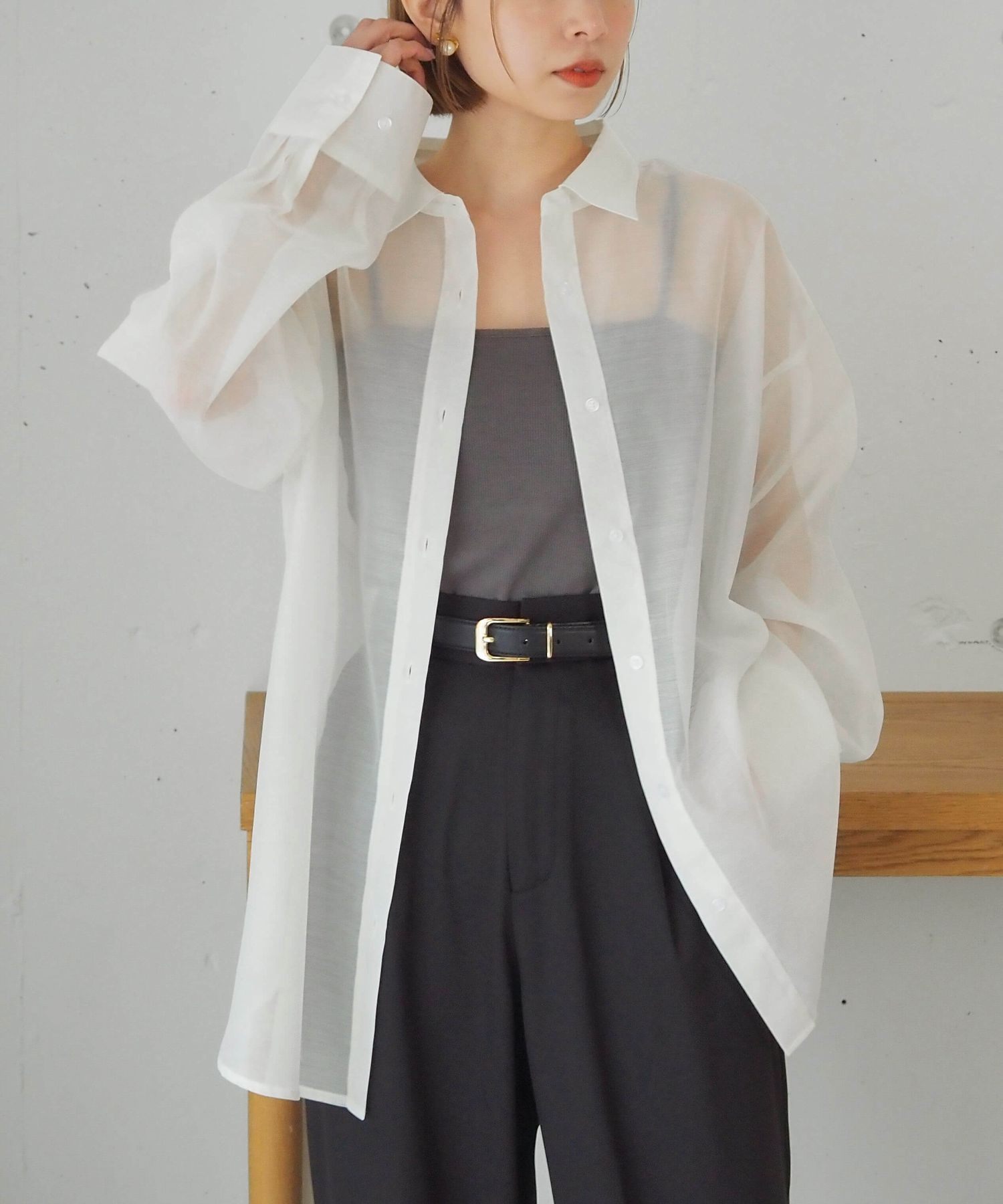 ・程よいシアー生地なので、重心が下がりがちなロングスカートやワイドパンツも好バランスに着こなせます。