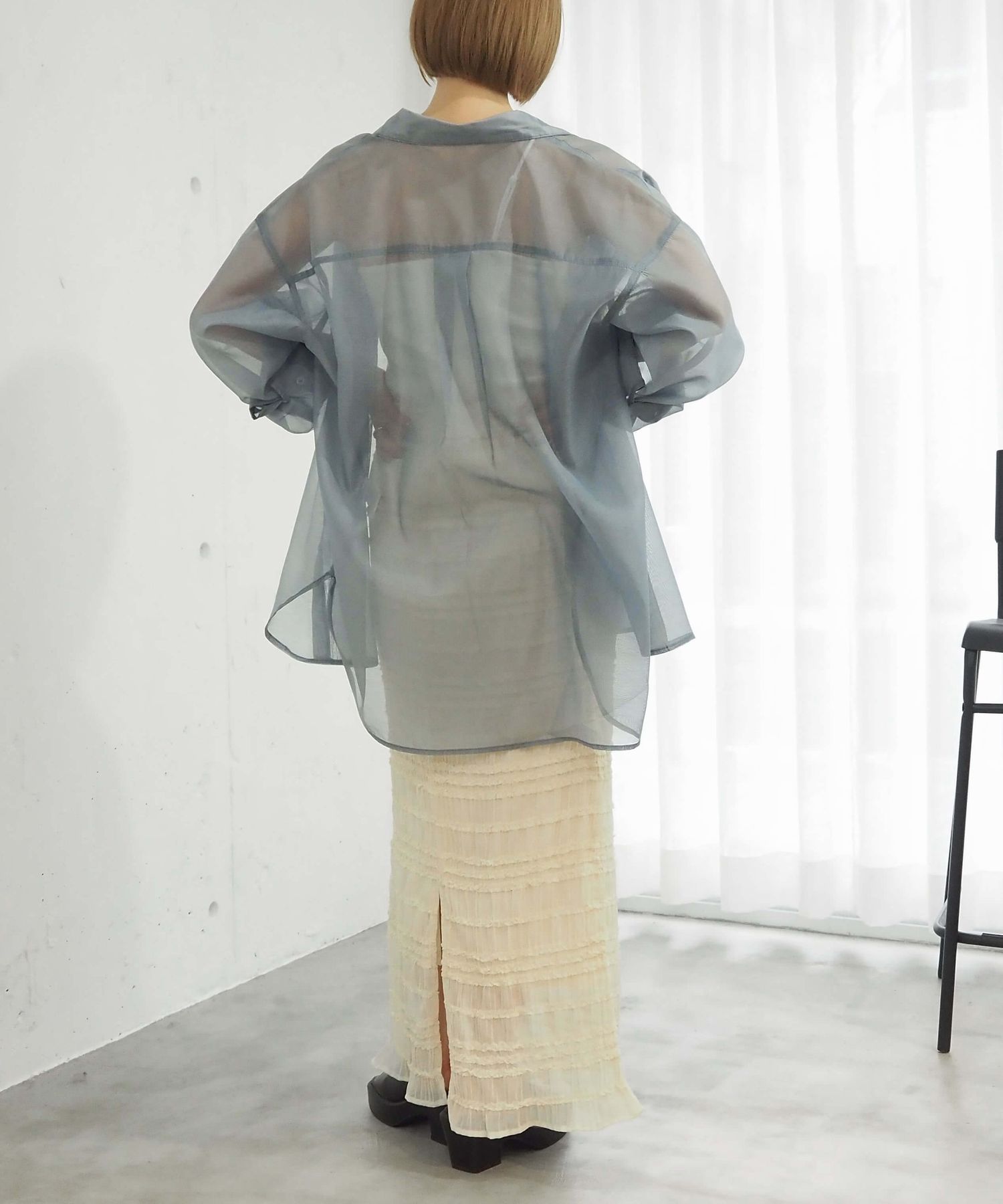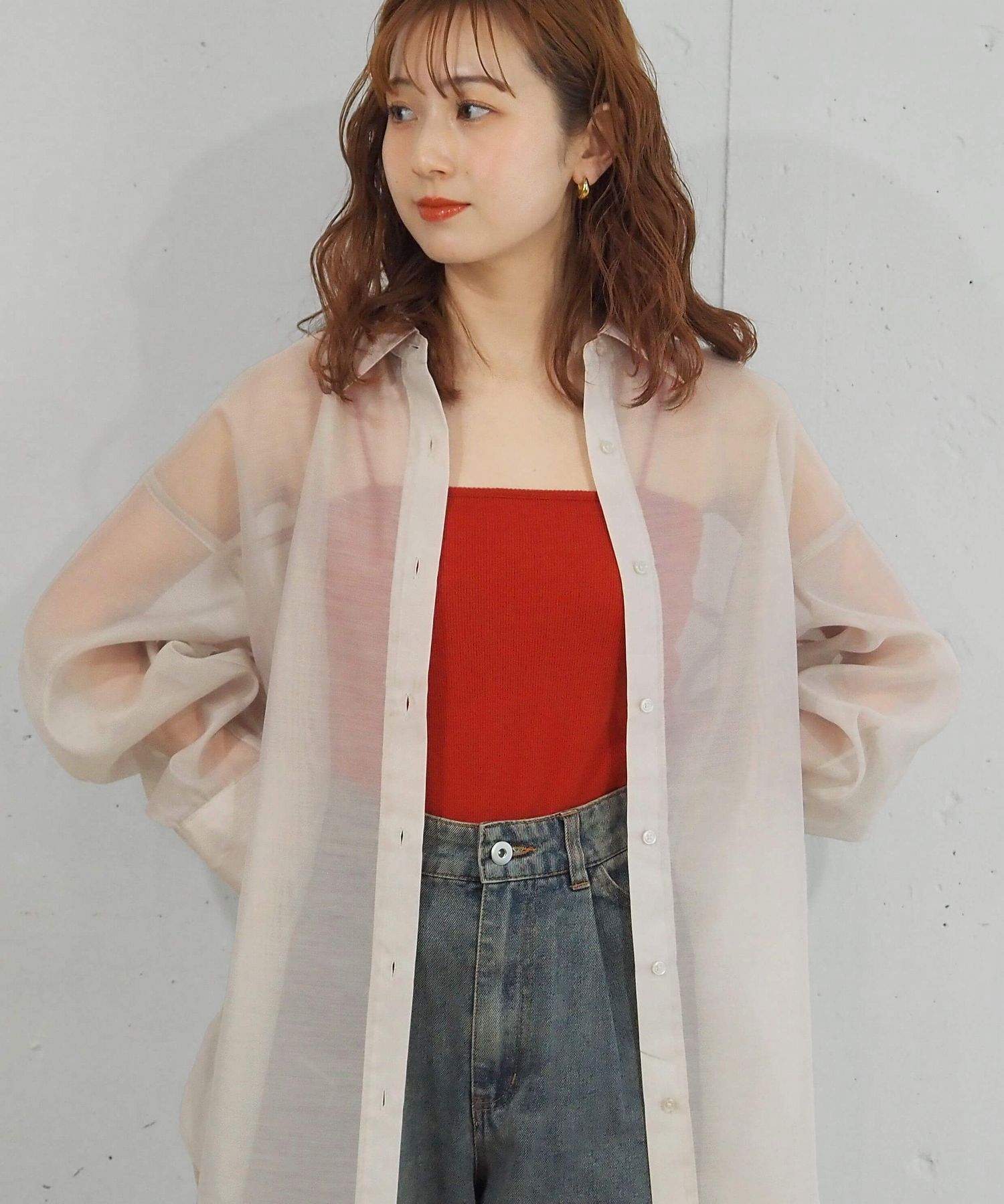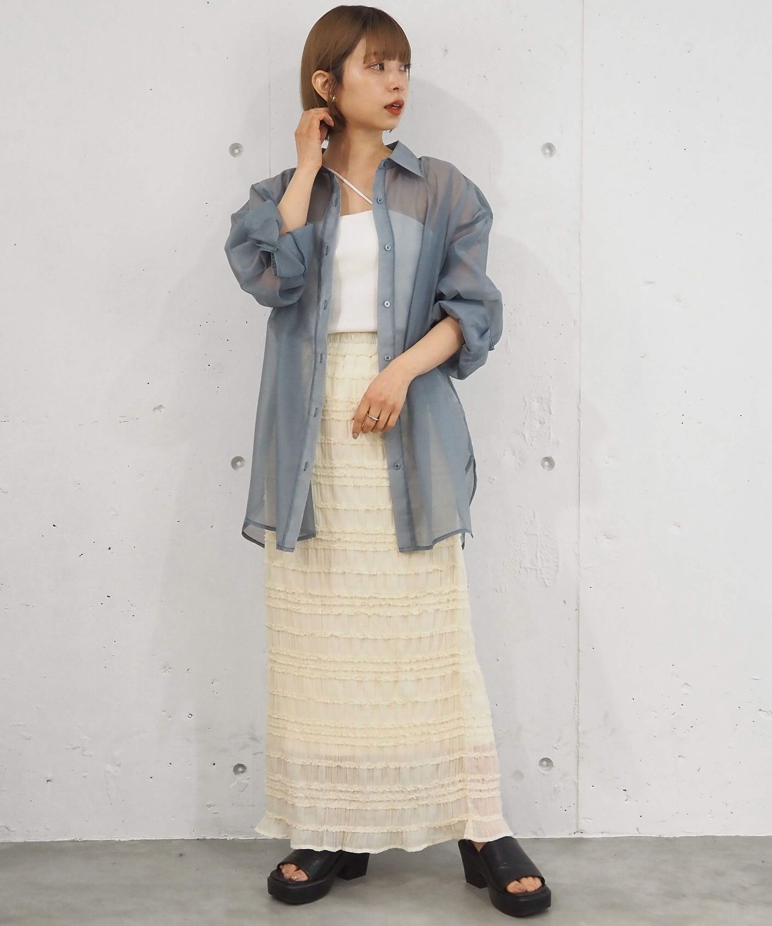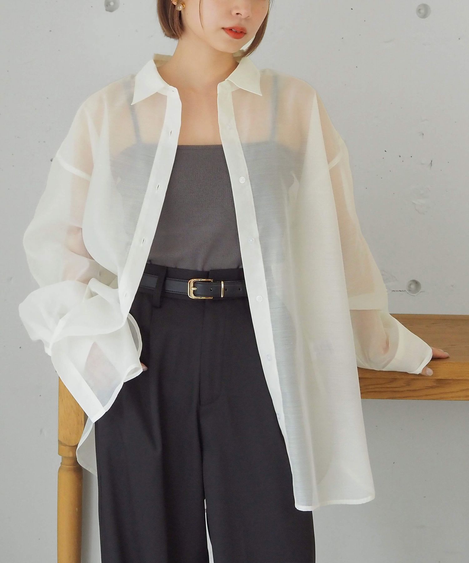・程よいシアー生地なので、重心が下がりがちなロングスカートやワイドパンツも好バランスに着こなせます。