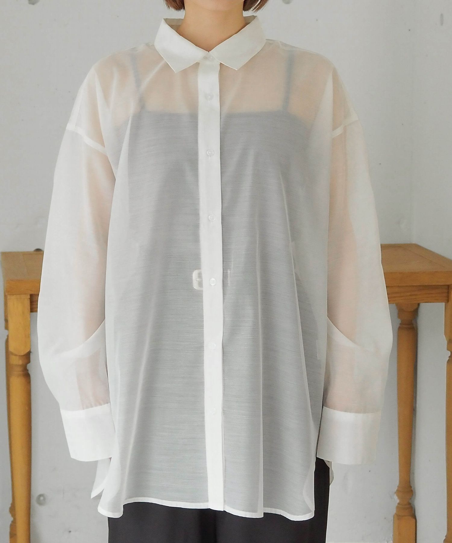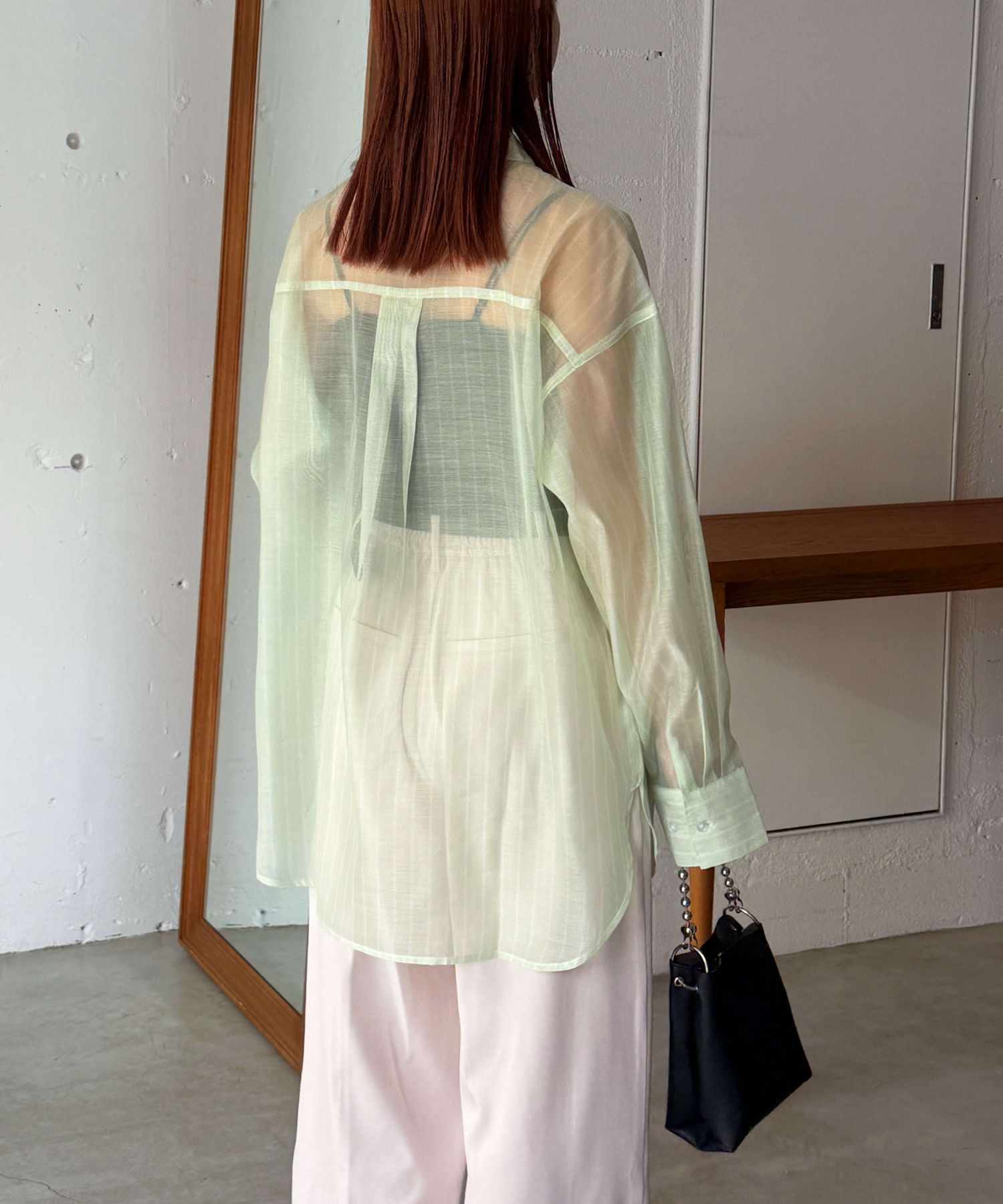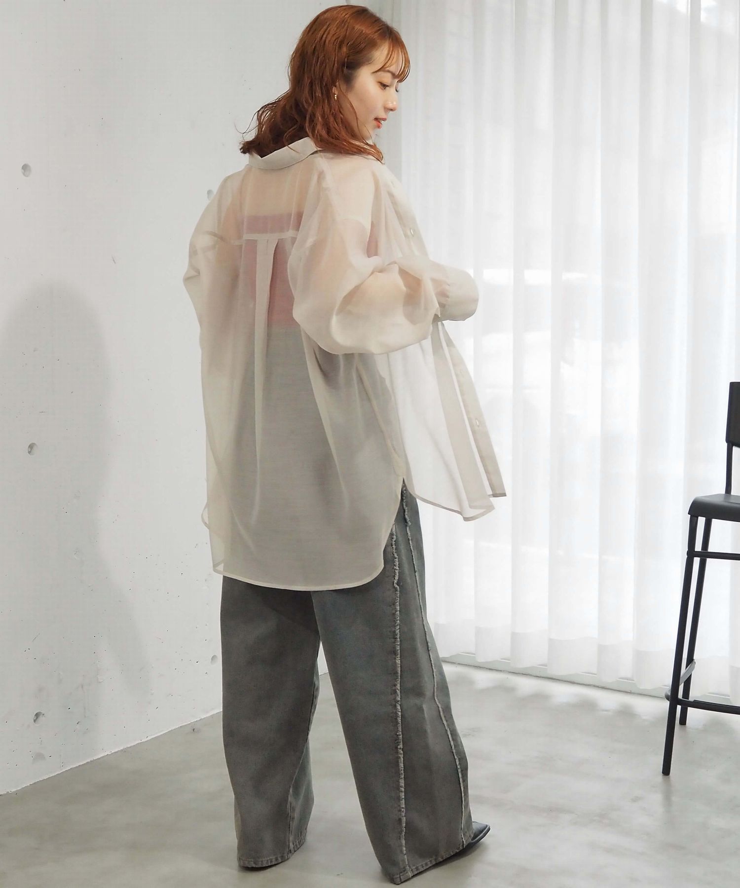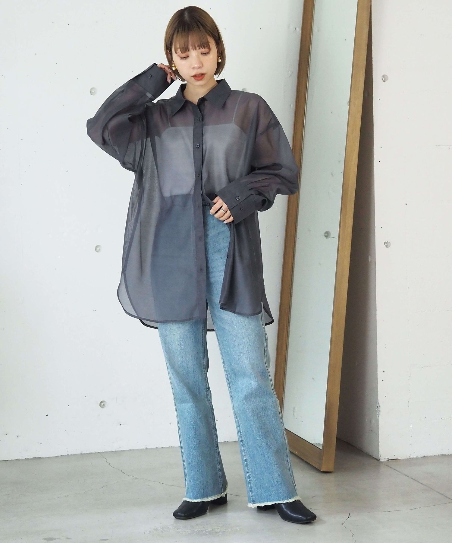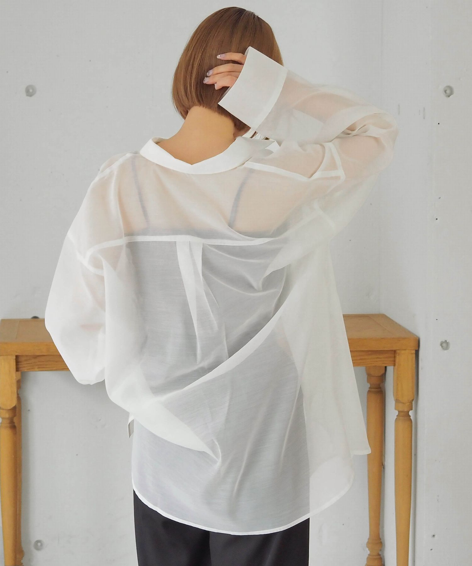・程よいシアー生地なので、重心が下がりがちなロングスカートやワイドパンツも好バランスに着こなせます。