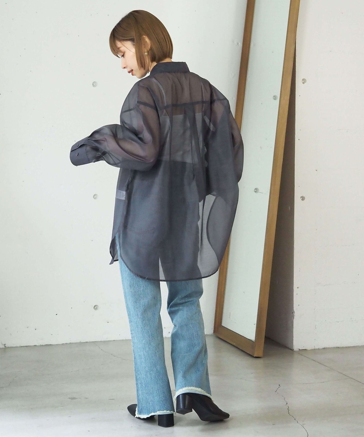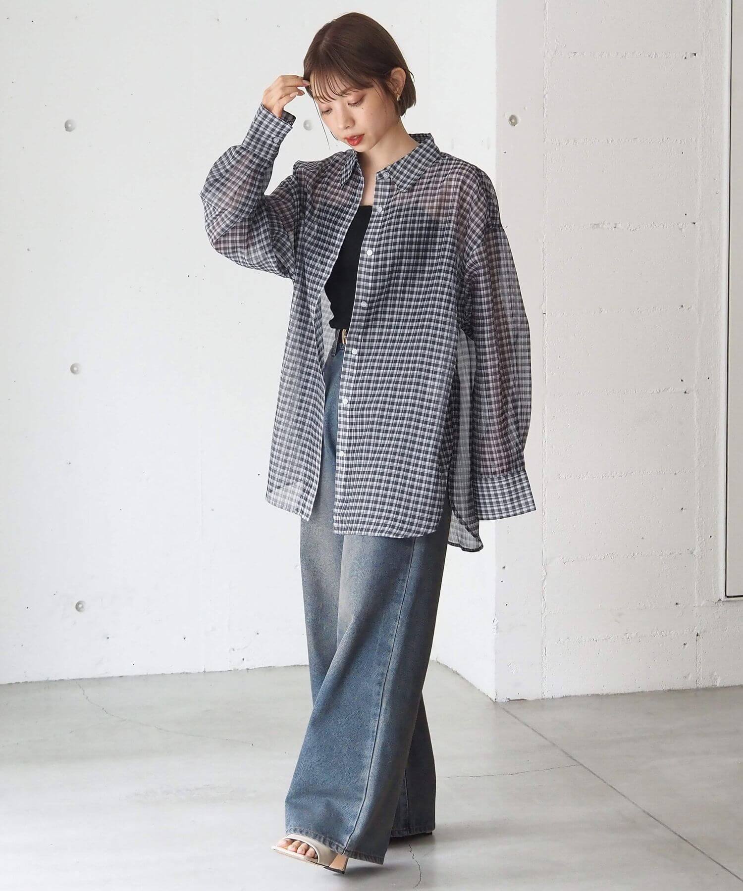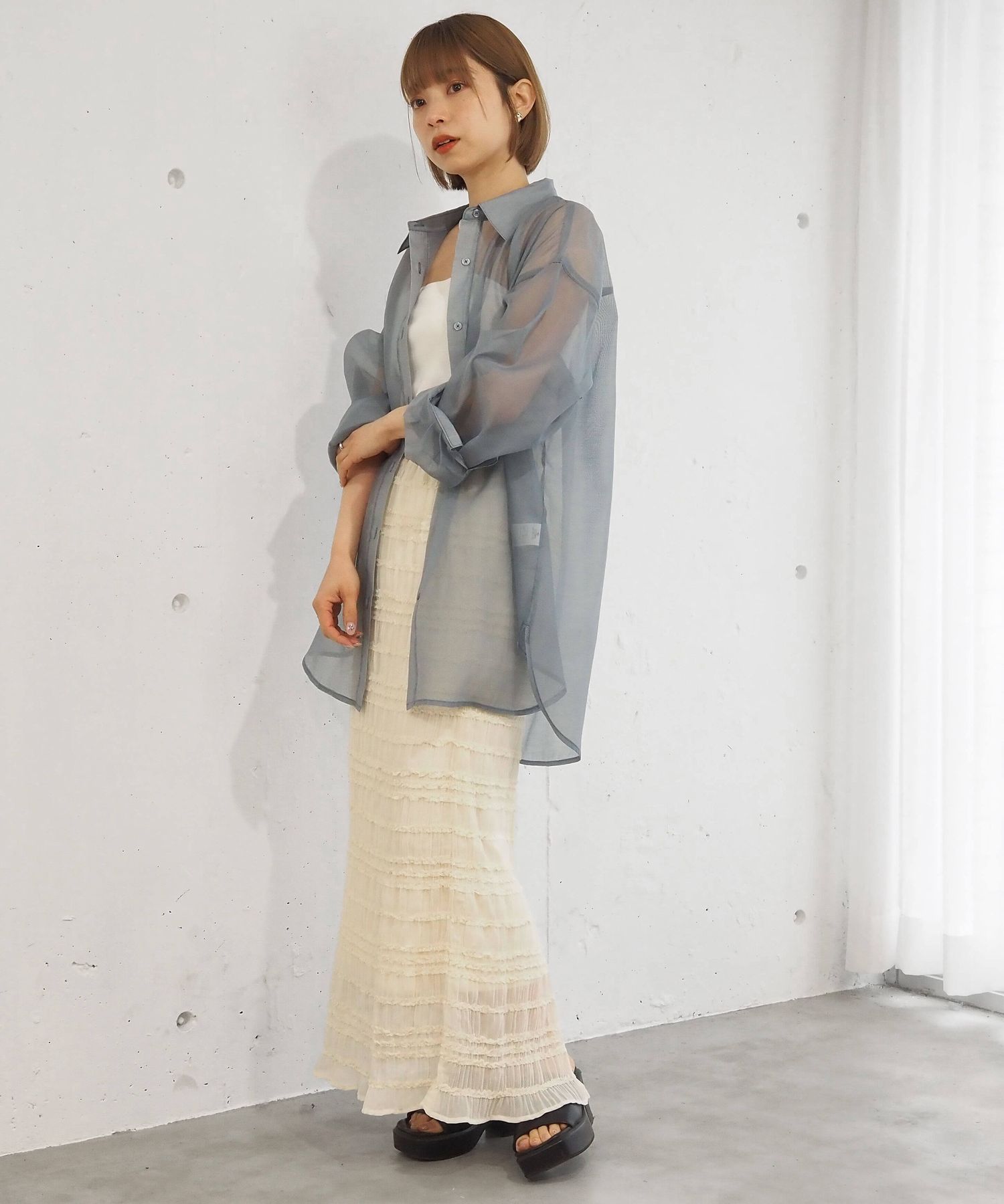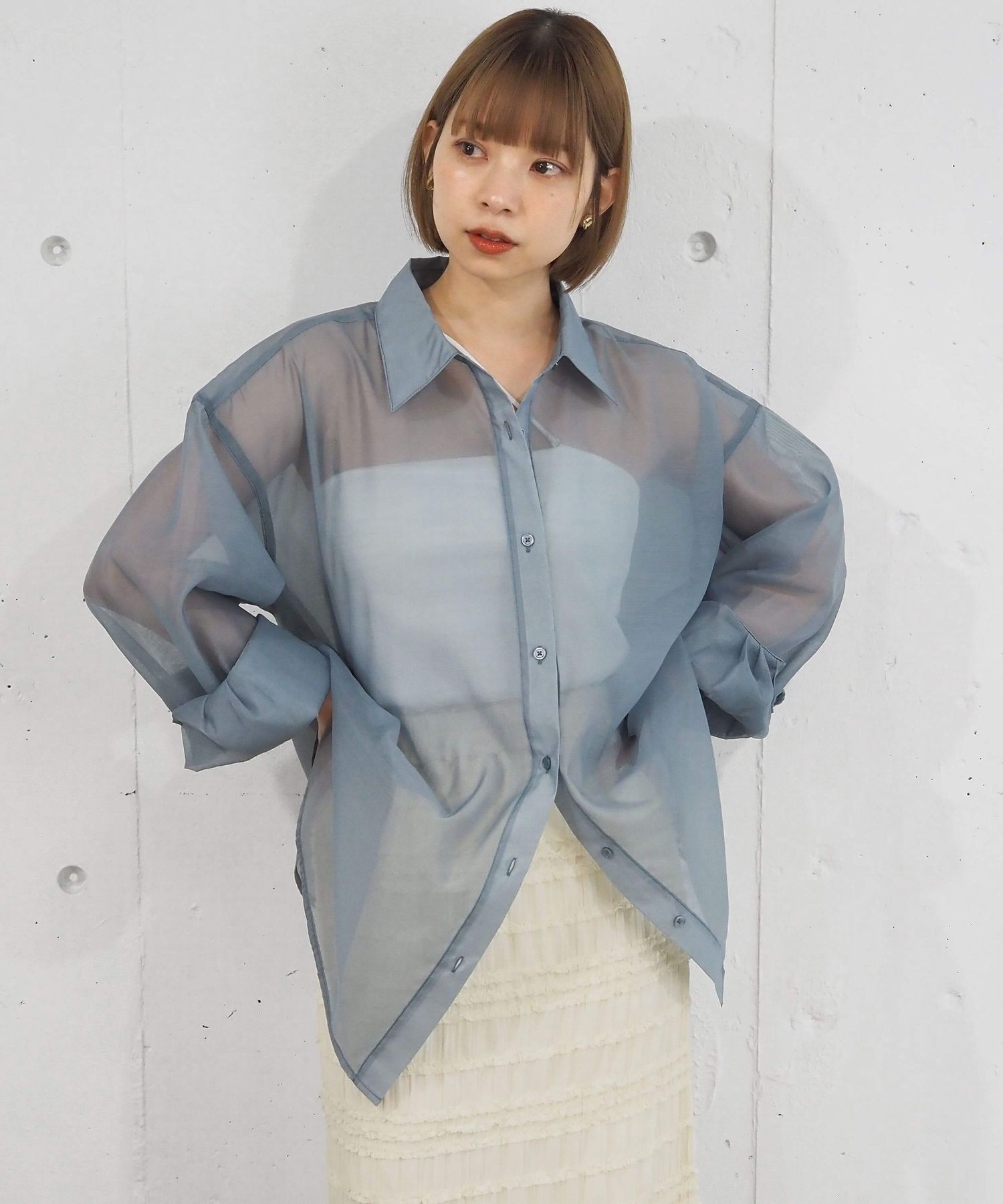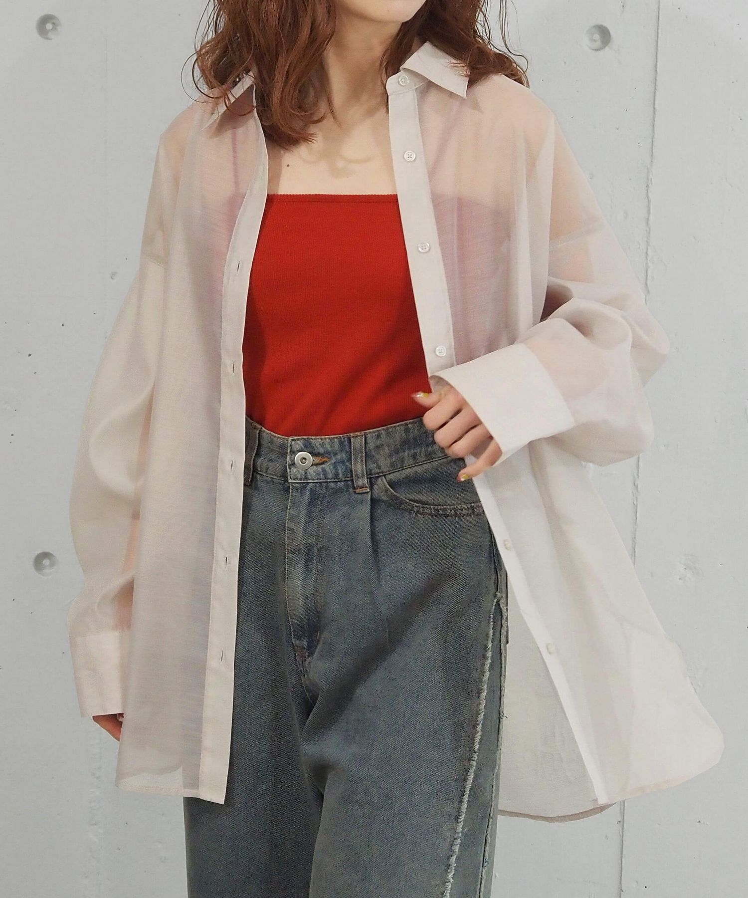 ・程よいシアー生地なので、重心が下がりがちなロングスカートやワイドパンツも好バランスに着こなせます。