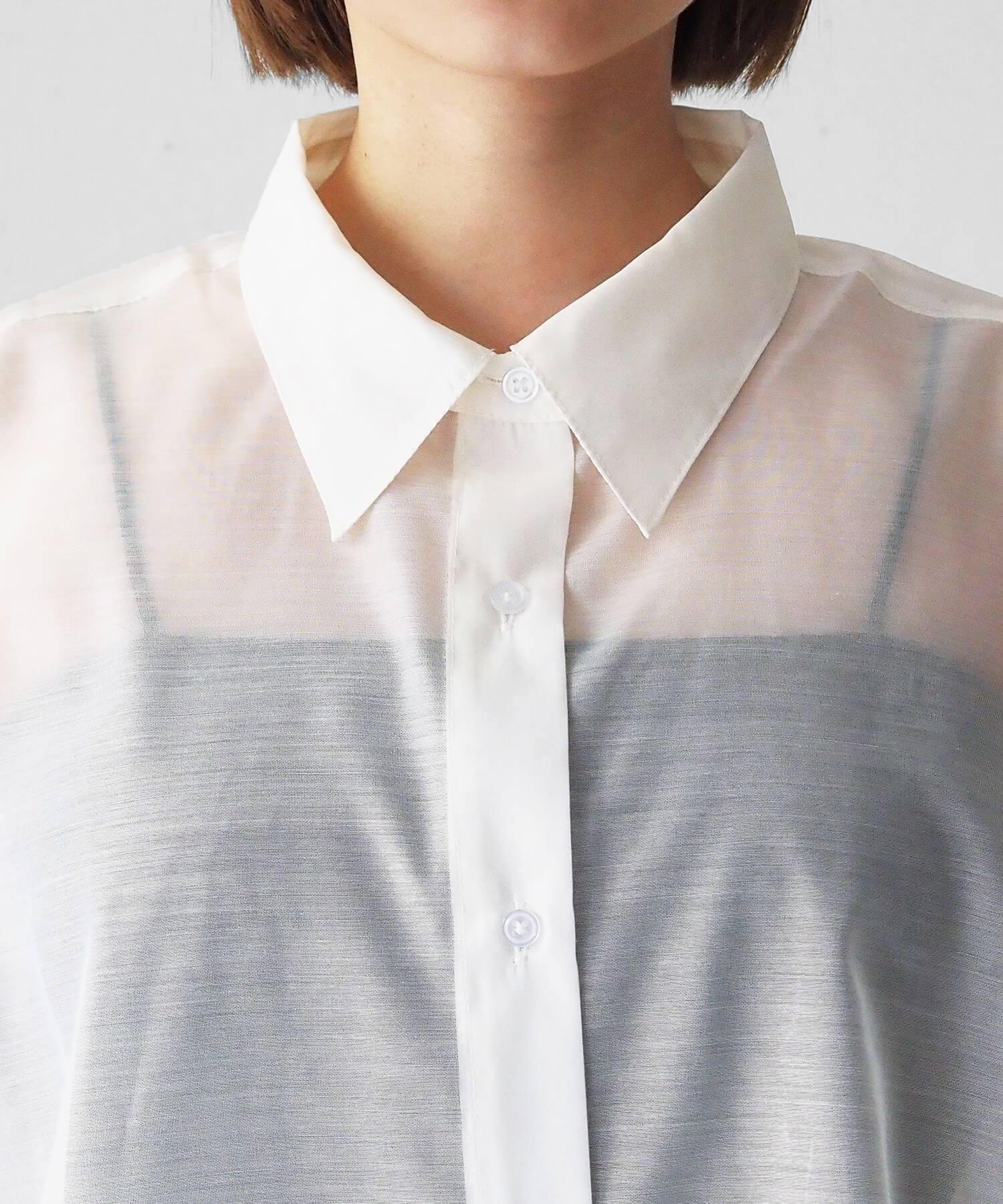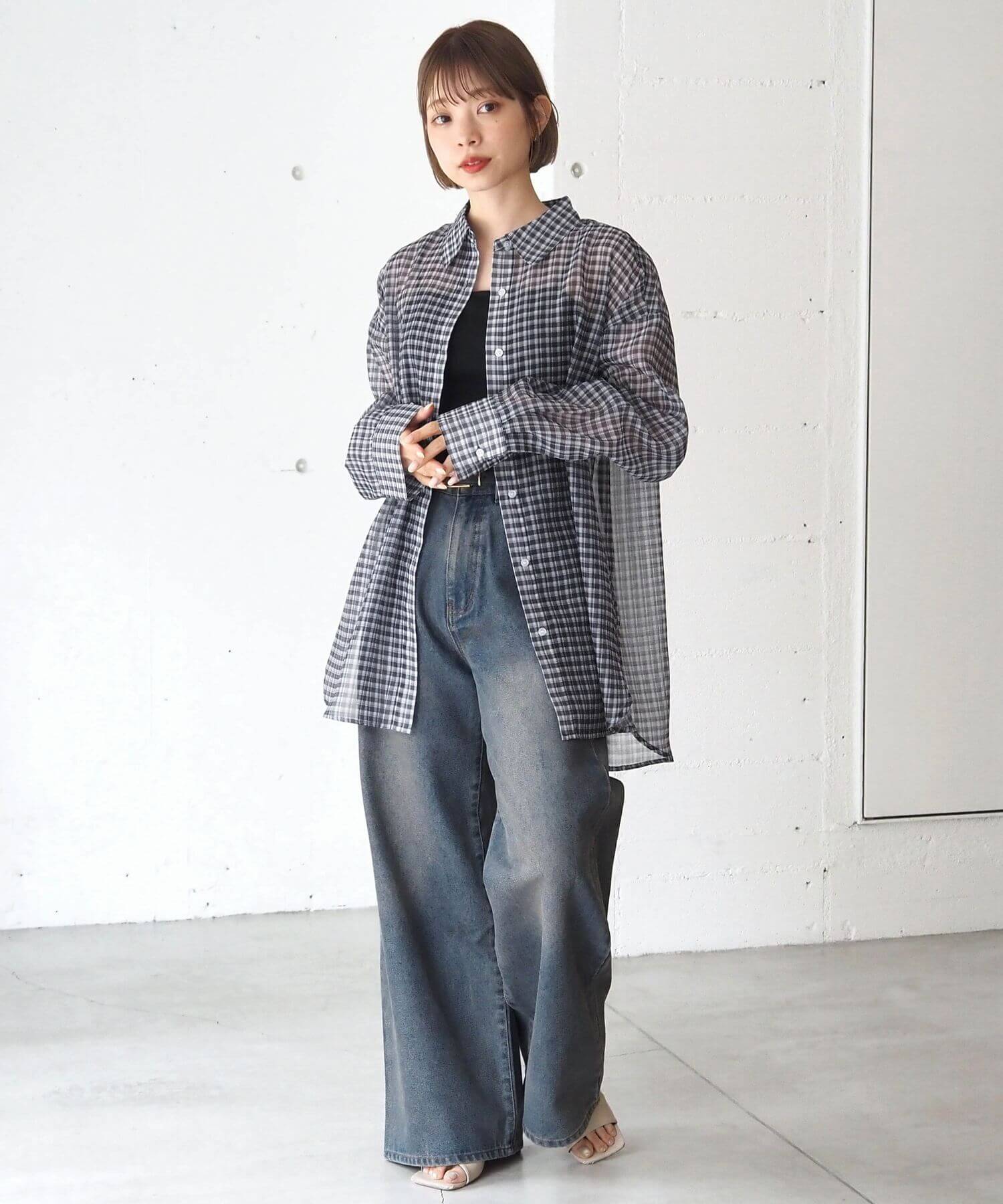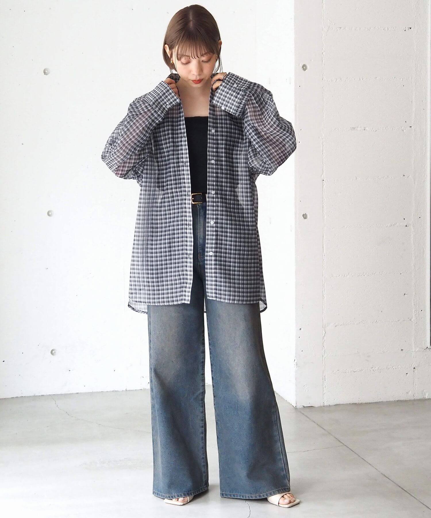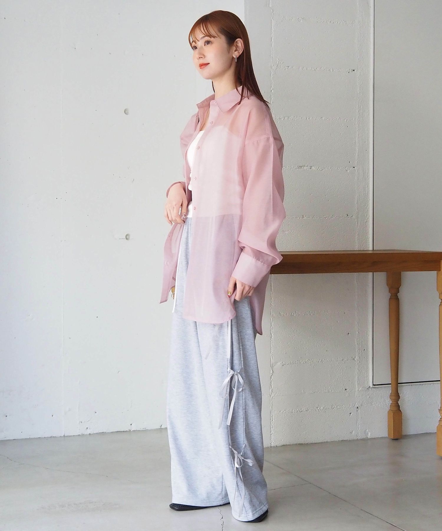 ・程よいシアー生地なので、重心が下がりがちなロングスカートやワイドパンツも好バランスに着こなせます。