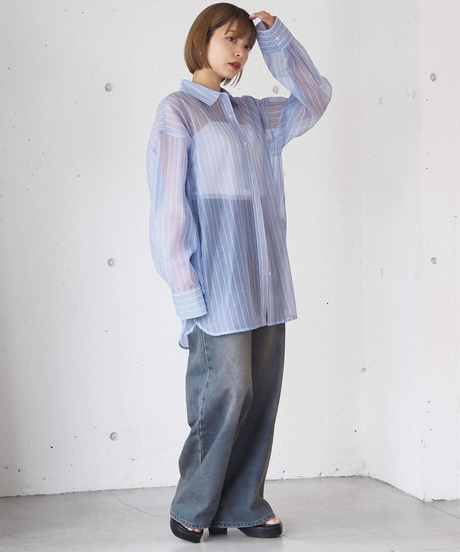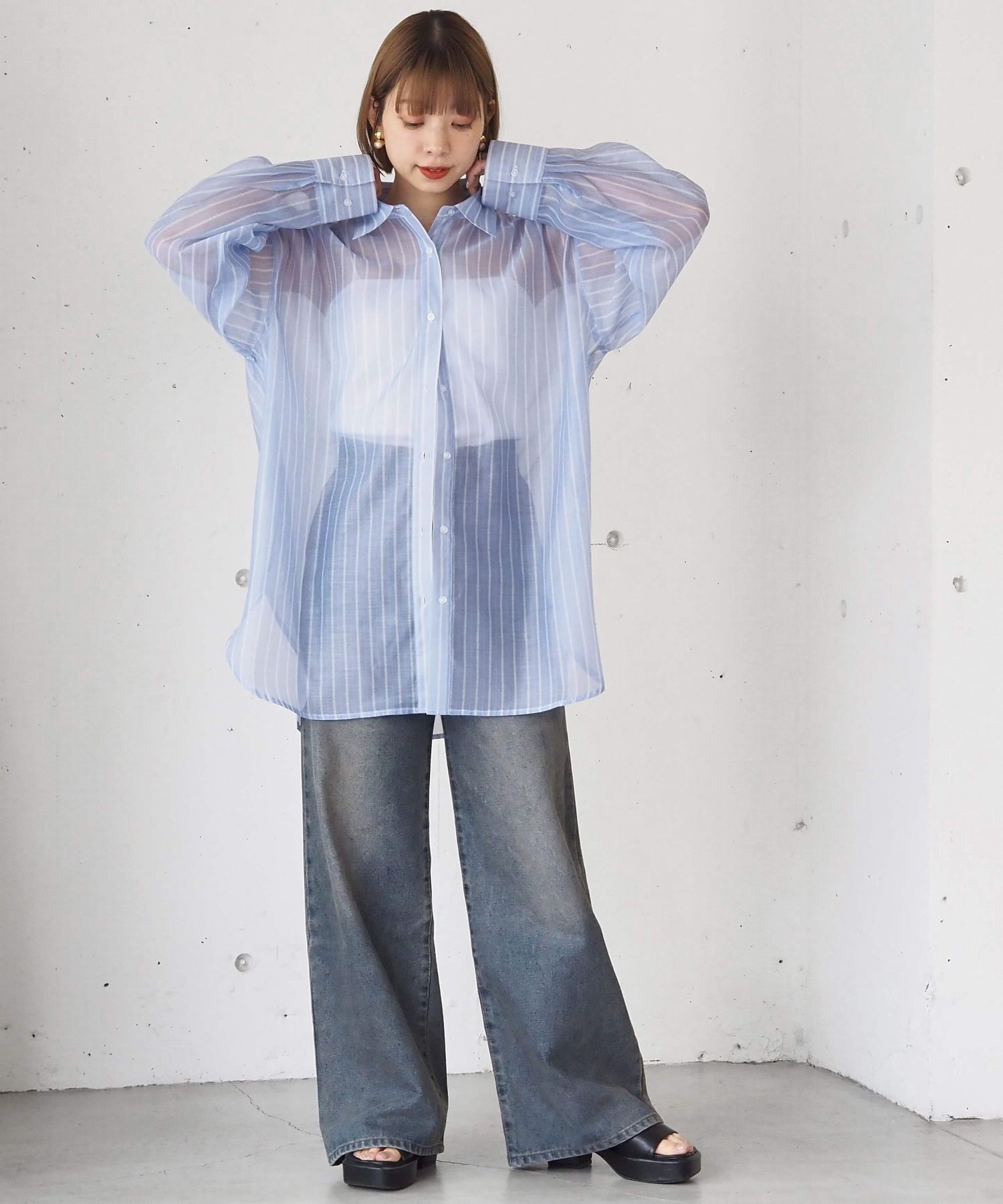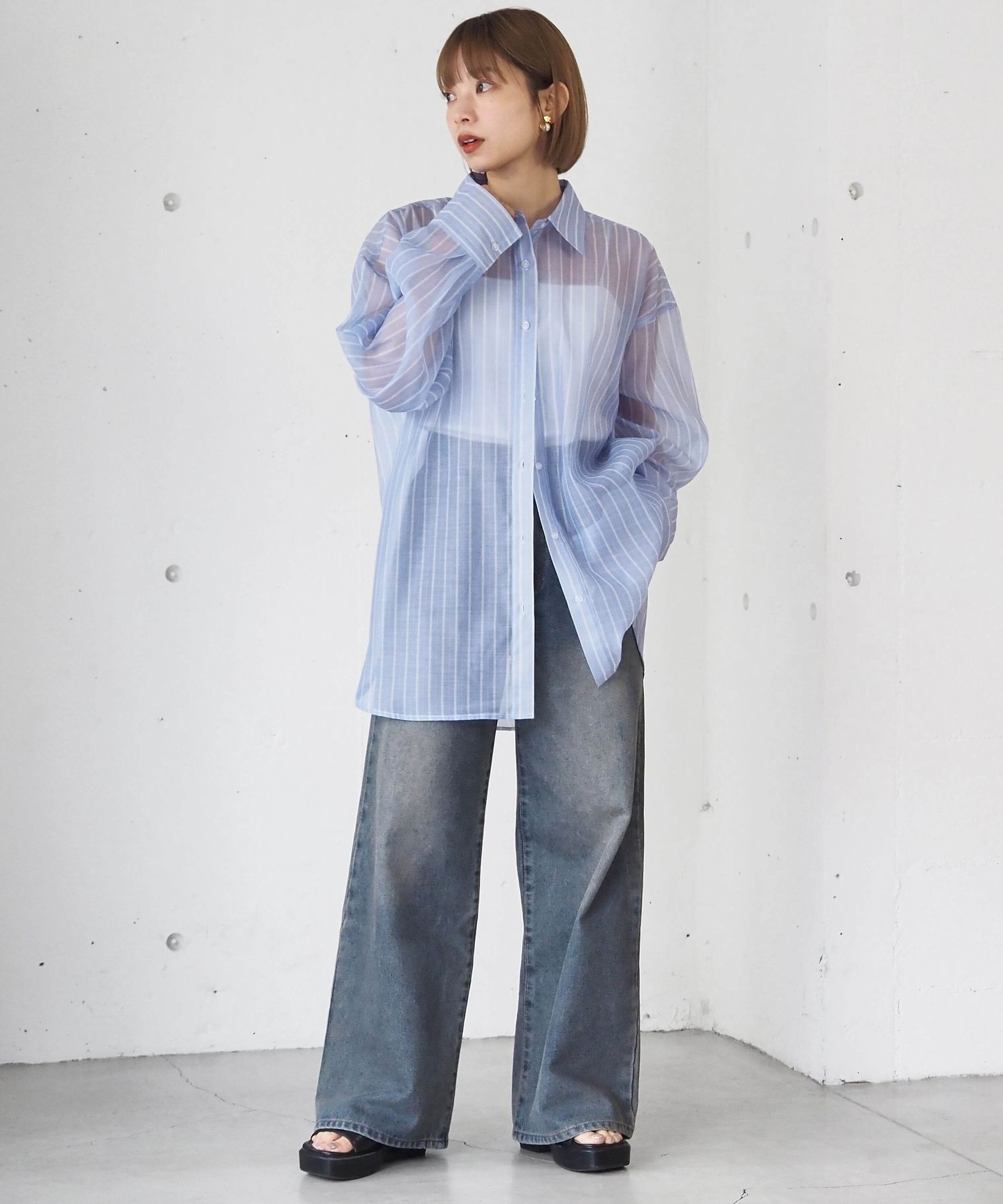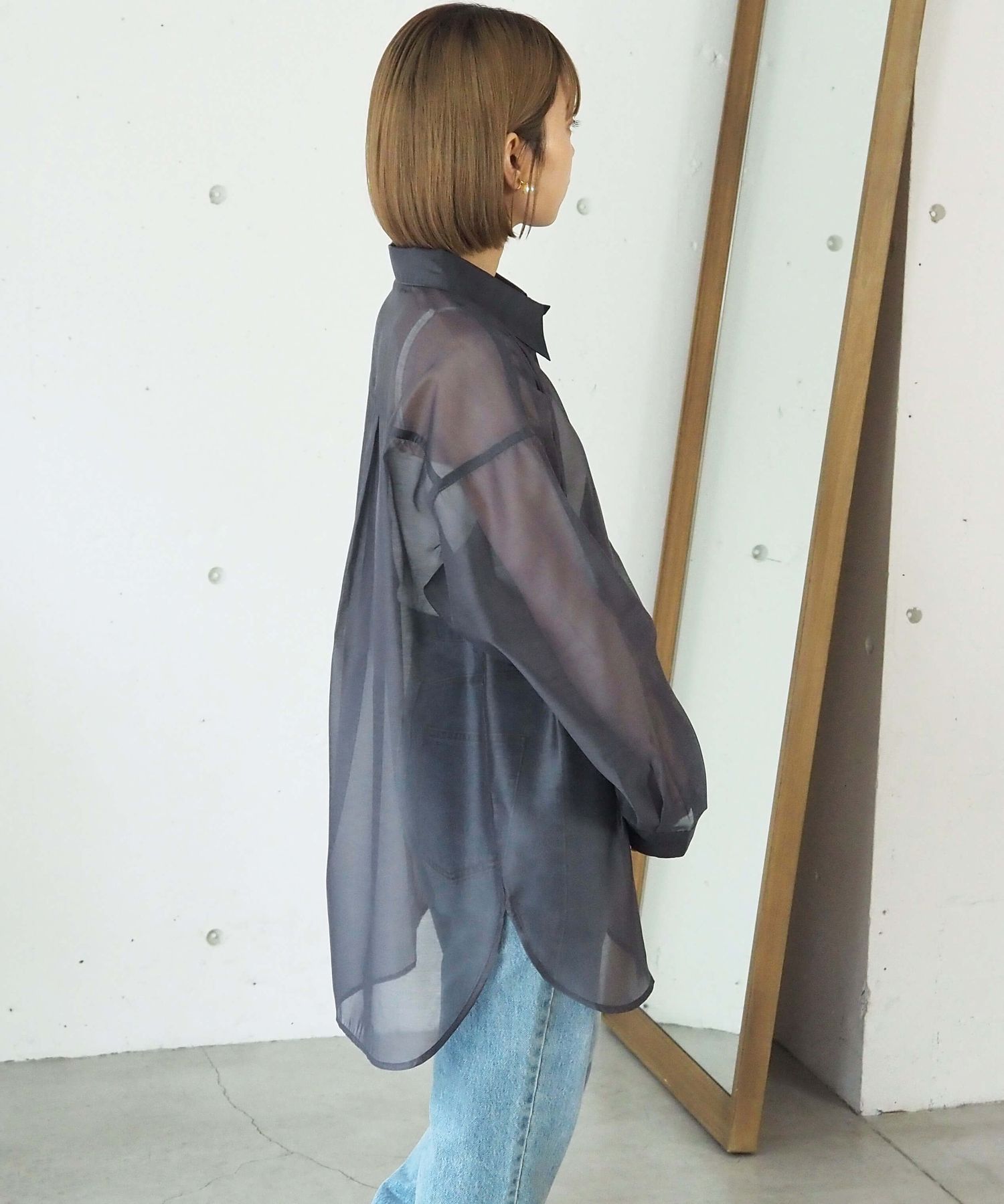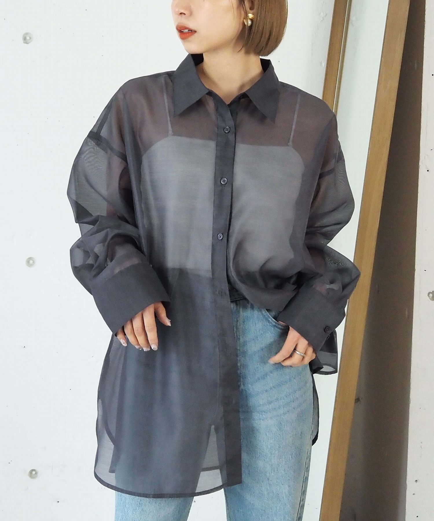 ・程よいシアー生地なので、重心が下がりがちなロングスカートやワイドパンツも好バランスに着こなせます。