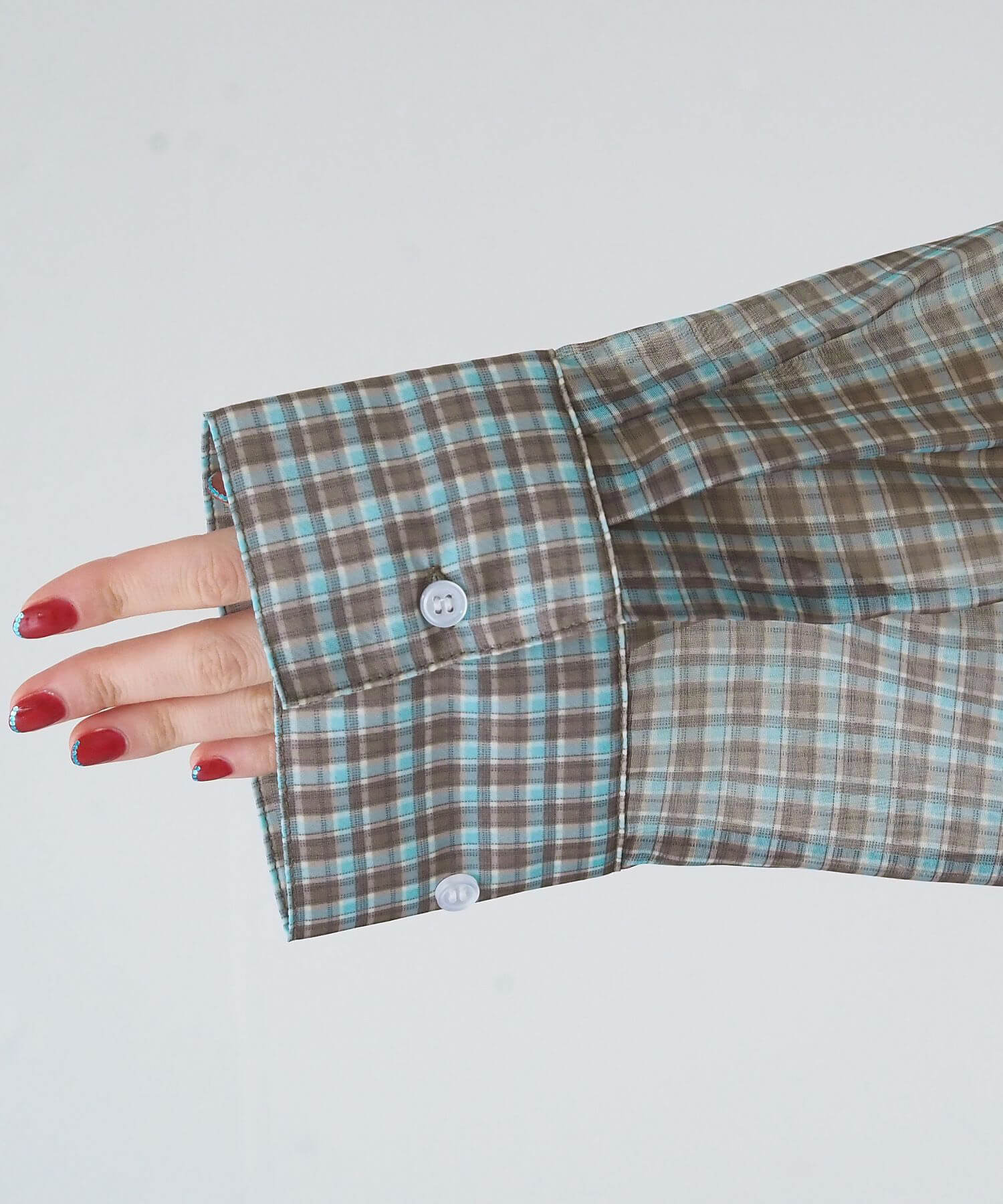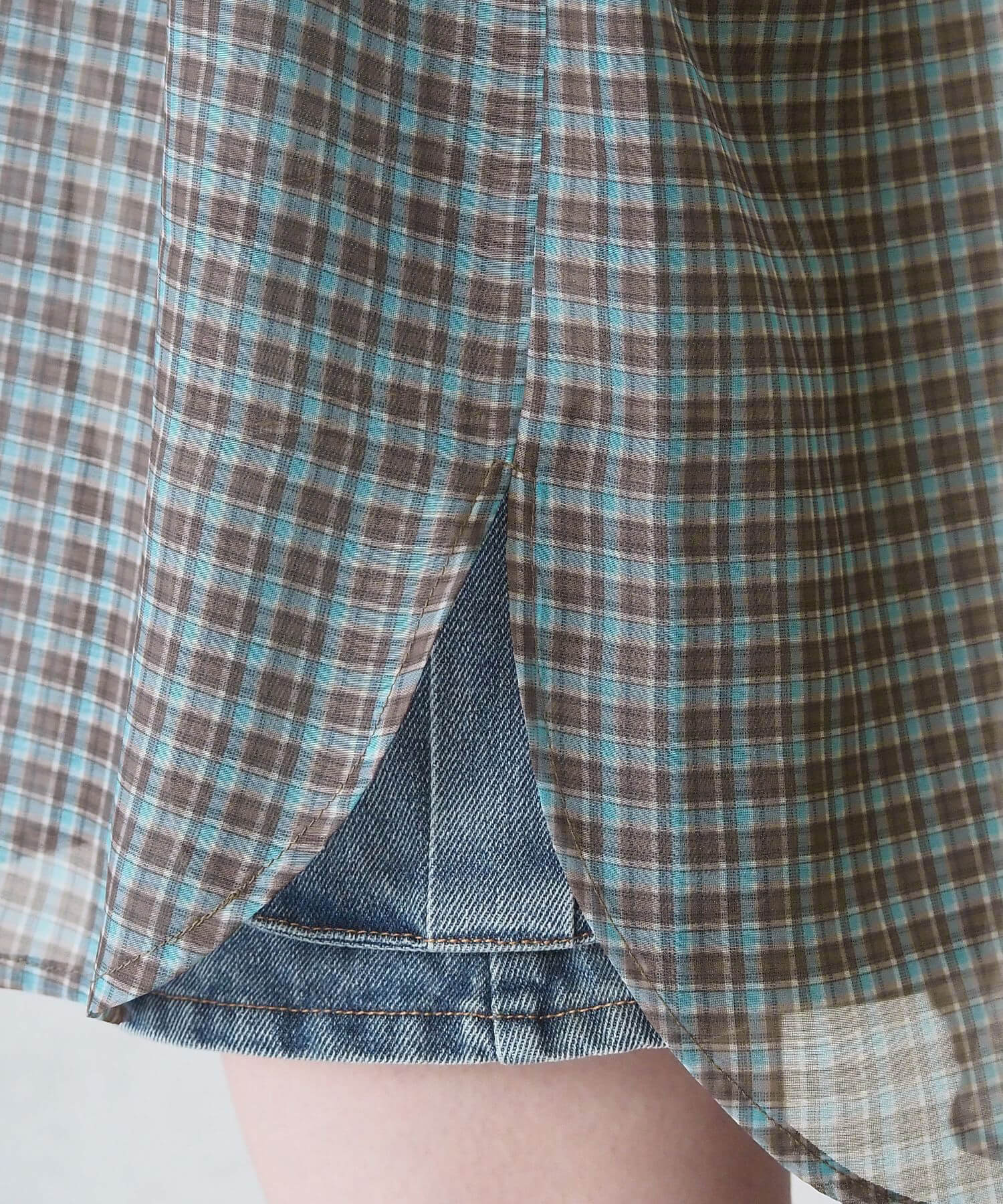 • ブルー系その他2(チェック柄) model:H150 着用サイズ:FREE
