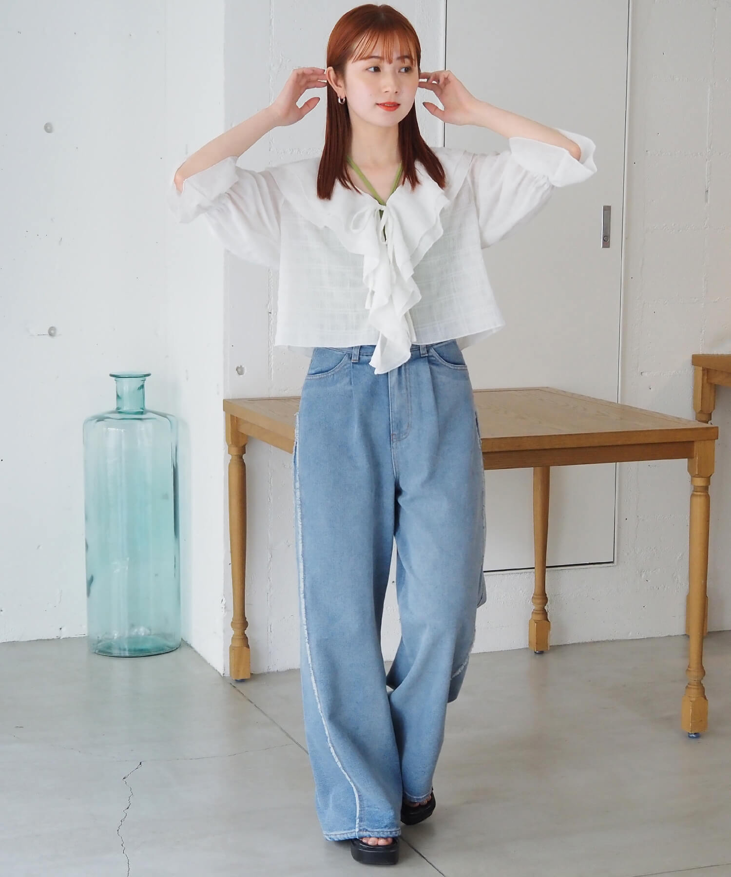 ・コンパクトな丈感とキャンディスリーブのバランスがよく、着るだけでサマになるシルエットです。
