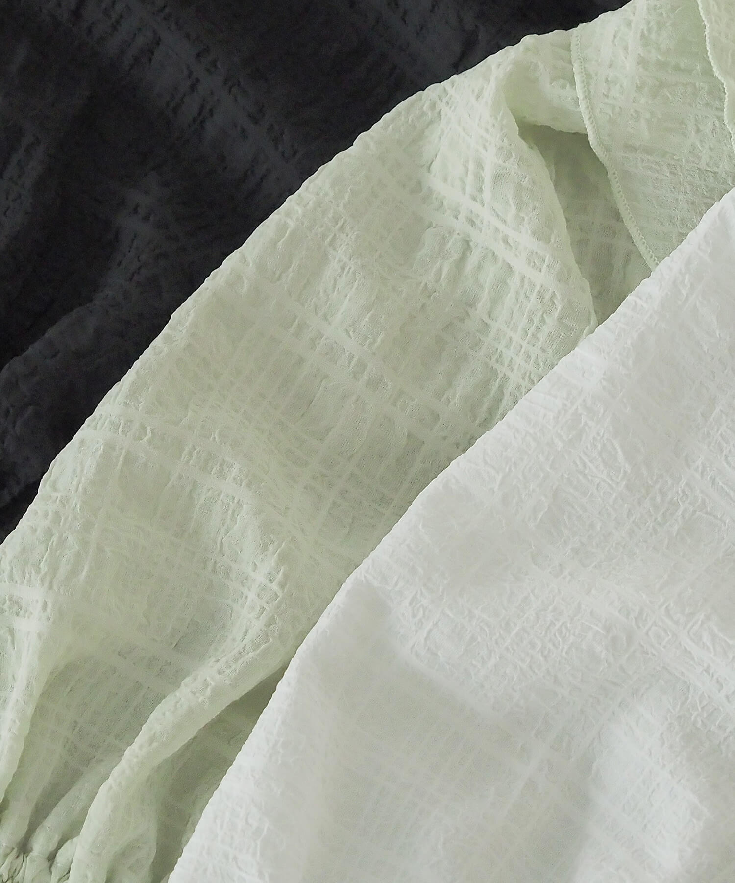 ・凸凹とした表情と、さりげない透け感が魅力の生地を使い、春夏らしい軽やかさも意識しました。