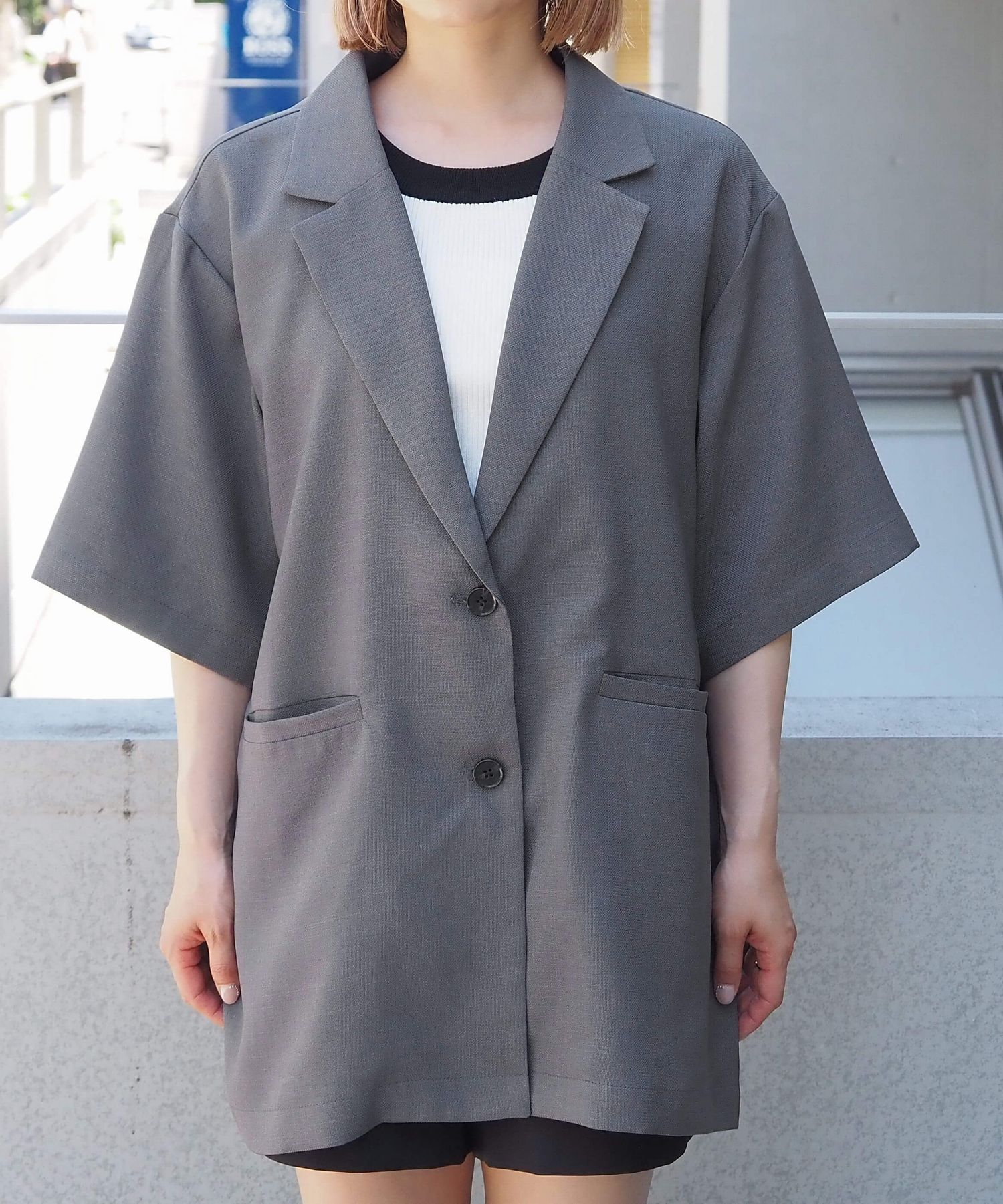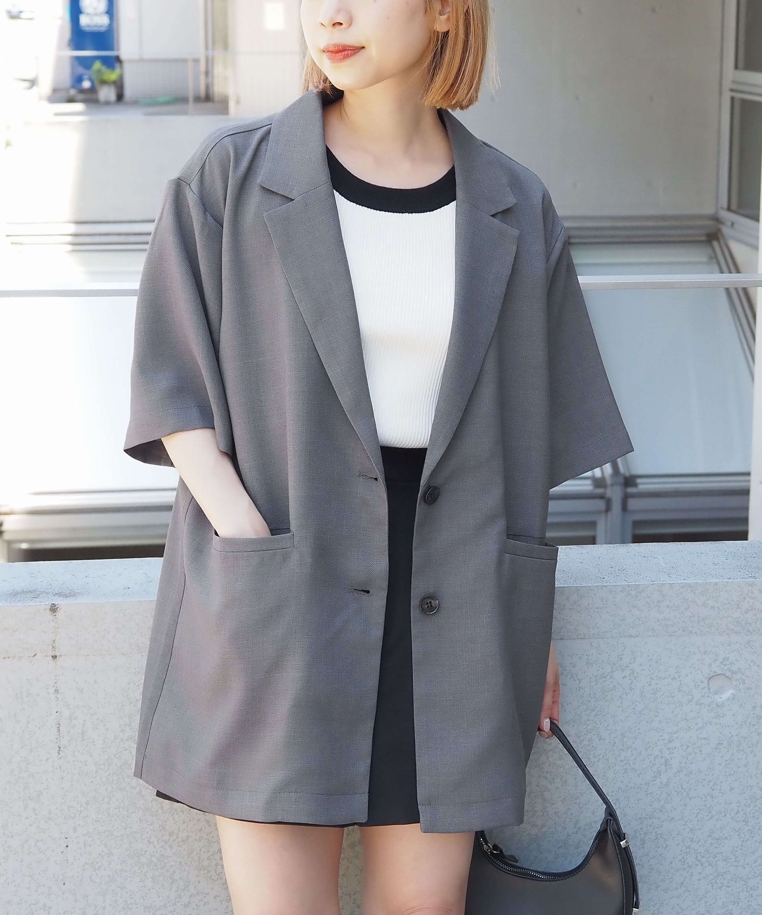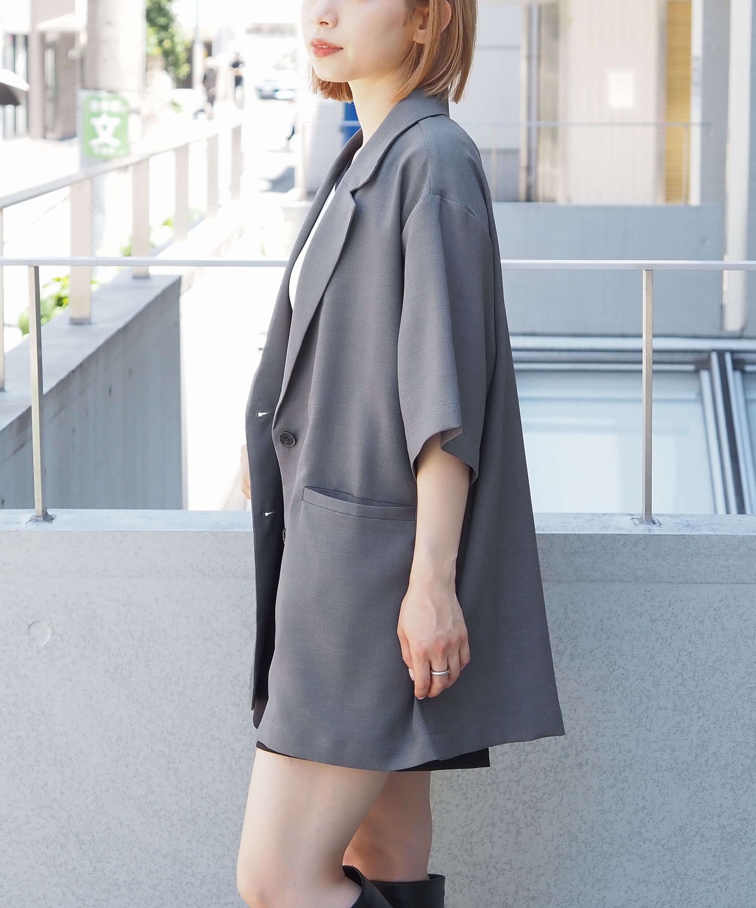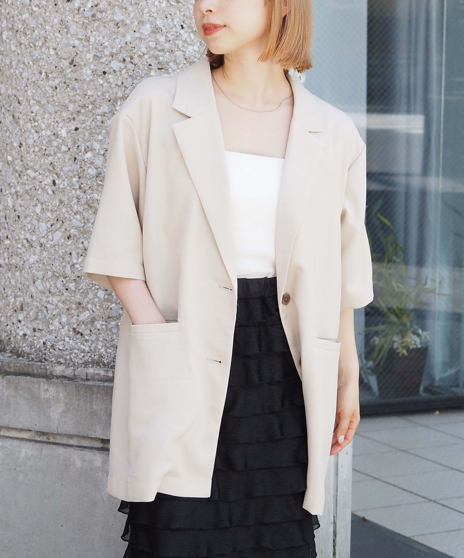 ・シャツ感覚でさらっと羽織れる半袖ジャケットは、オンオフ問わず着回しが可能◎